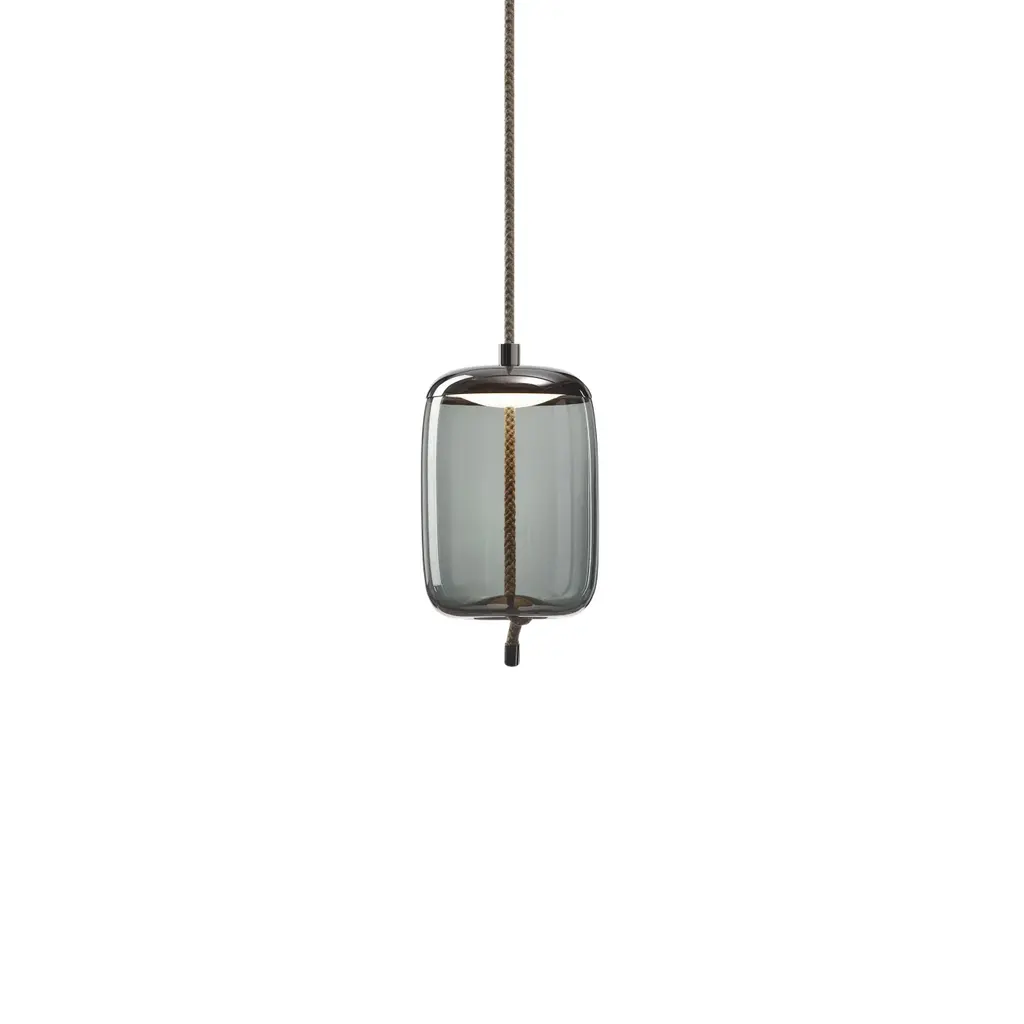 Boldly elemental, the Knot Cilindro LED Pendant Light from Brokis fuses delicate glasswork with industrial strength in a strikingly modern silhouette. Designed by Chiaramonte Marin, this pendant features a sleek, cylindrical handblown glass shade cinched by a robust, natural-fiber rope—an arresting detail that appears to tension the form from within. The warm, integrated LED source glows softly through the transparent or tinted glass, casting ambient light with sculptural presence. Suspended alone or in a series, Knot Cilindro brings tactile contrast and refined drama to contemporary interiors. Highlights