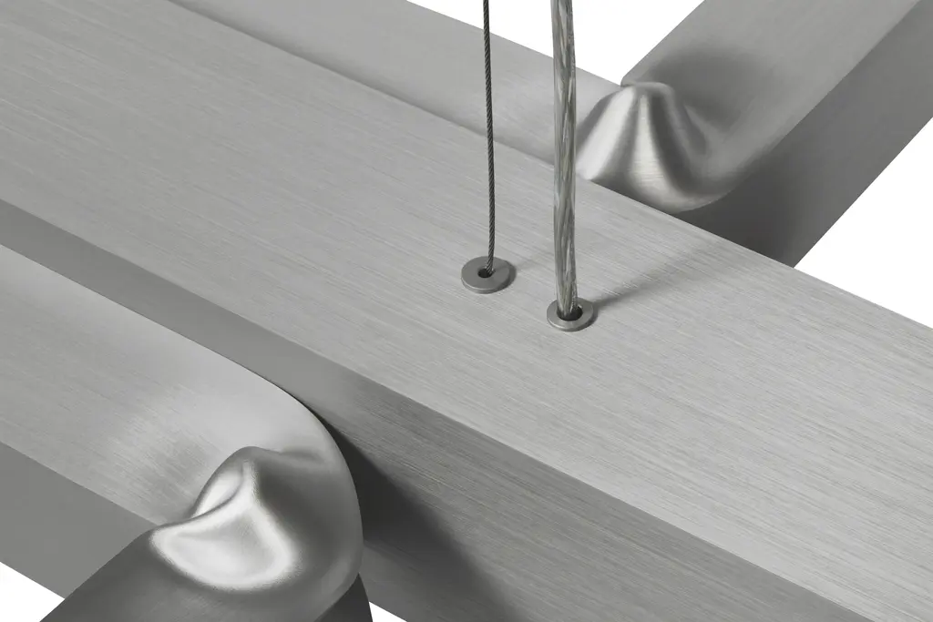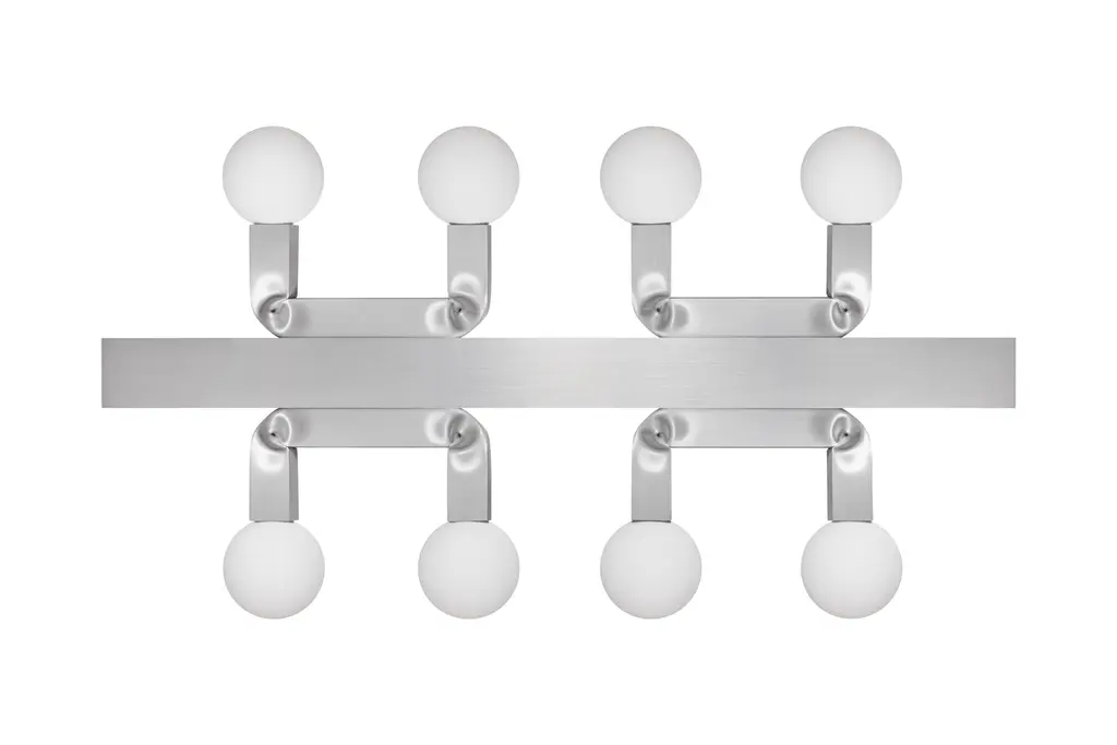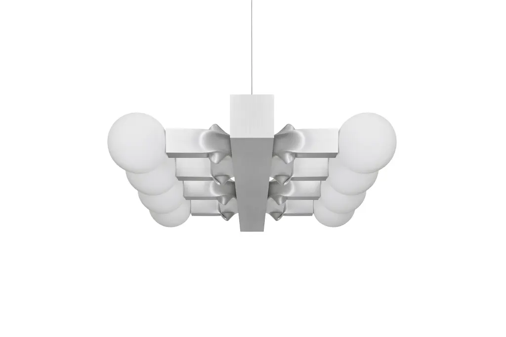 The Knuckle Lights by David Taylor are an exercise in visual balance, a kind of joyful play between the organic and the geometric. Knuckle is inspired by Taylor’s signature bent extruded aluminum art pieces, which are created by forcing this most stringent of materials into new shapes and forms. This method of working, translated into Knuckle, creates a sense of softness and fluidity uncommon in an industrial product. Knuckle comes in the form of a modest table light with one bulb, and as a chandelier version, resplendent with eight bulbs. The table light is nicely weighted, with a brushed aluminum finish that reflects the light from the bulb in a soft, muted way. The bend in the lighting arm gives the design a truly fluid sensibility, and a raw yet refined beauty. The horizontally configured chandelier expands Taylor’s idea onto a much grander scale, and works as a design centerpiece; visually fascinating and temptingly tactile all at once. Knuckle is a piece that plays with our perception, sense of materiality, and with the idea of harmony itself.