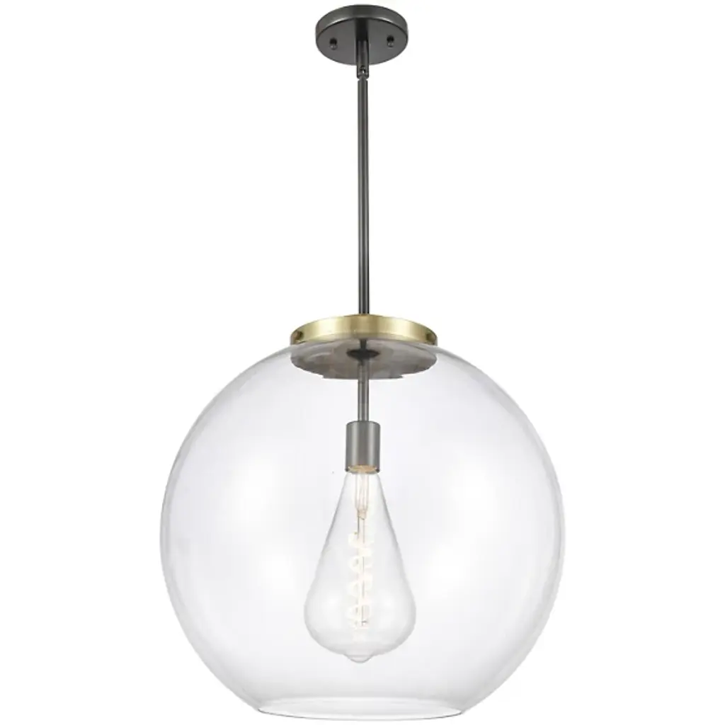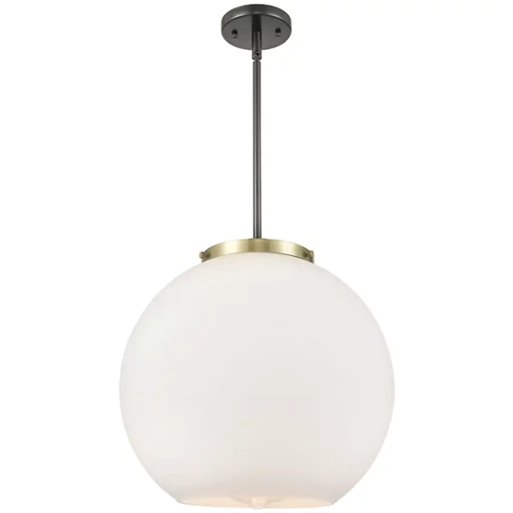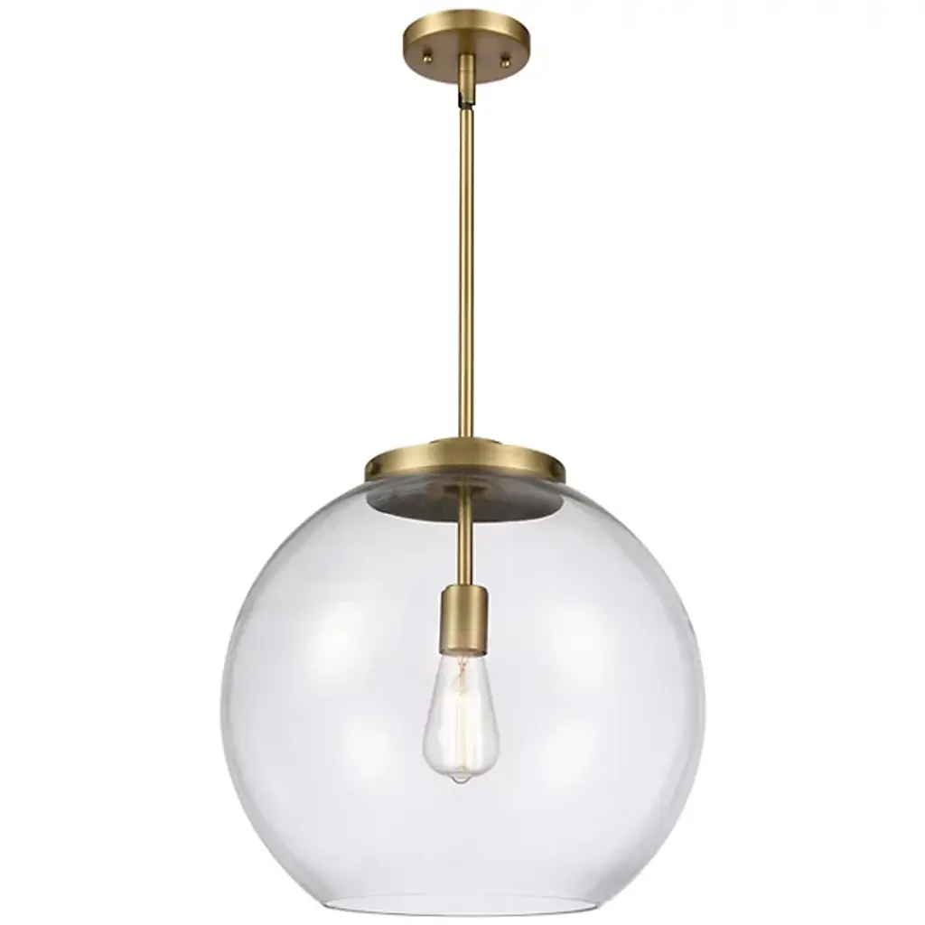 A bright and bubbly modern lighting design. The Kody Large Pendant by Alder & Ore pairs a refined, solid brass frame with a generously sized sphere of glass. This soap bubble-like shade enables plentiful ambient light all around a room, with an open bottom providing direct downlight onto a kitchen island or dining table. The stem-hung suspension includes a swivel at the canopy to keep this pendant hanging perfectly straight, even with sloped ceiling installations.