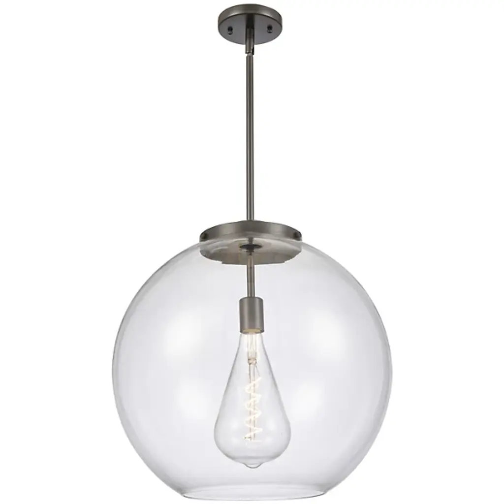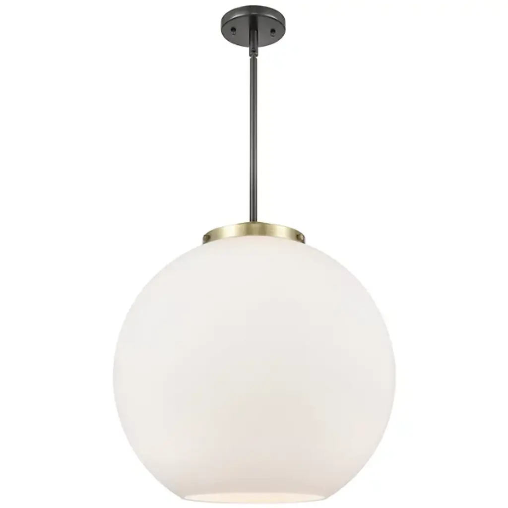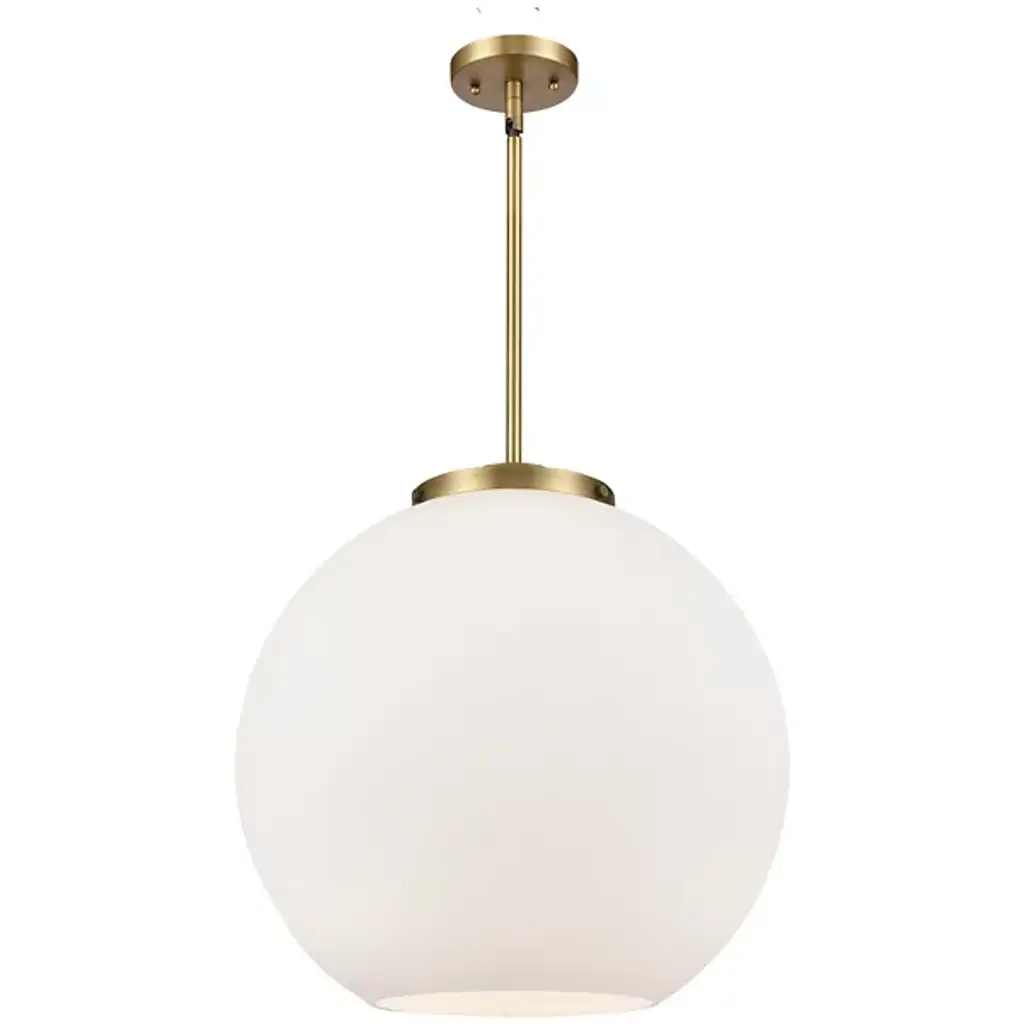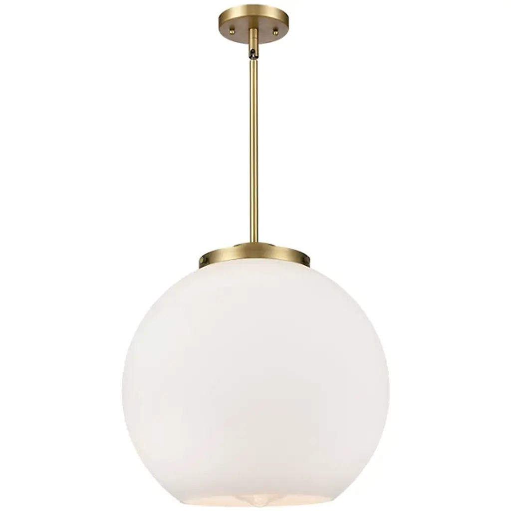A bright and bubbly modern lighting design. The Kody Large Pendant by Alder & Ore pairs a refined, solid brass frame with a generously sized sphere of glass. This soap bubble-like shade enables plentiful ambient light all around a room, with an open bottom providing direct downlight onto a kitchen island or dining table. The stem-hung suspension includes a swivel at the canopy to keep this pendant hanging perfectly straight, even with sloped ceiling installations.