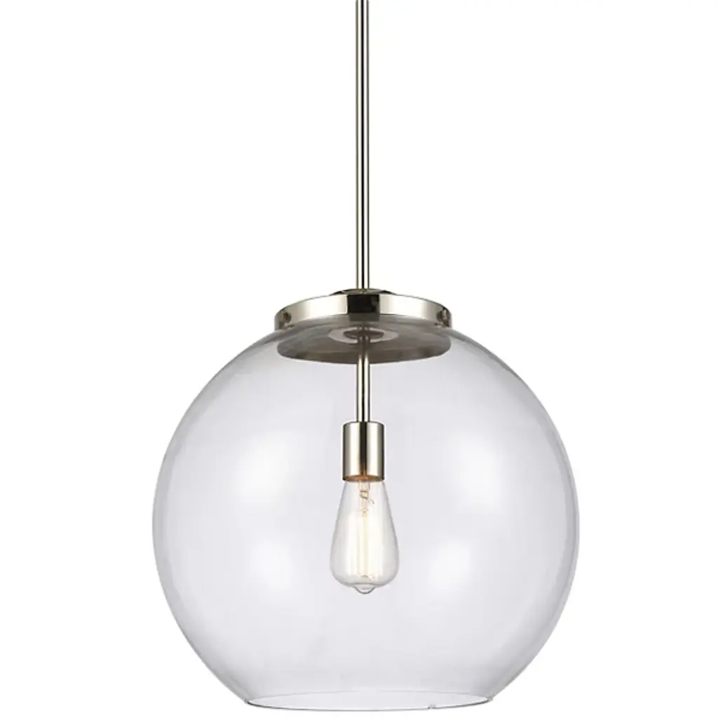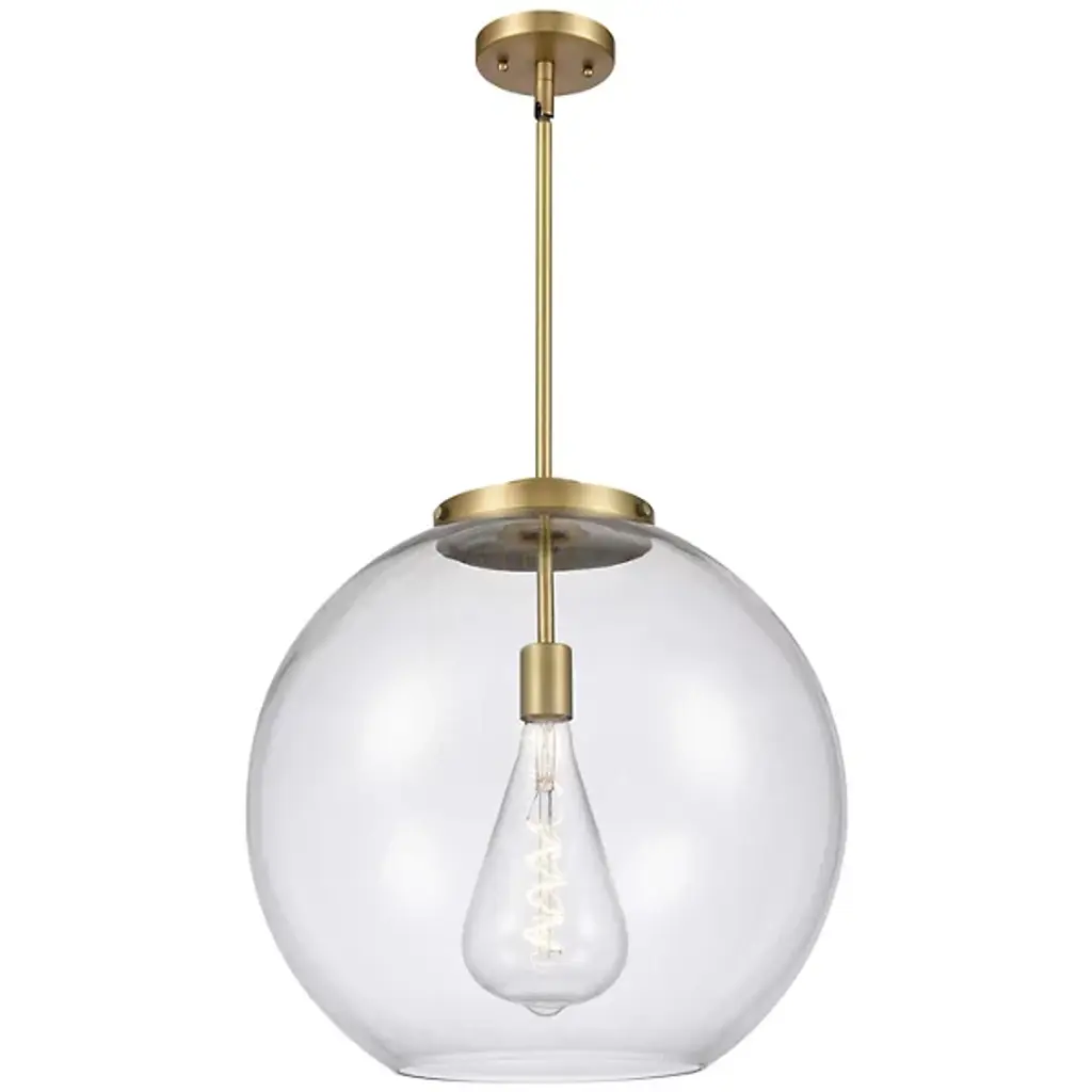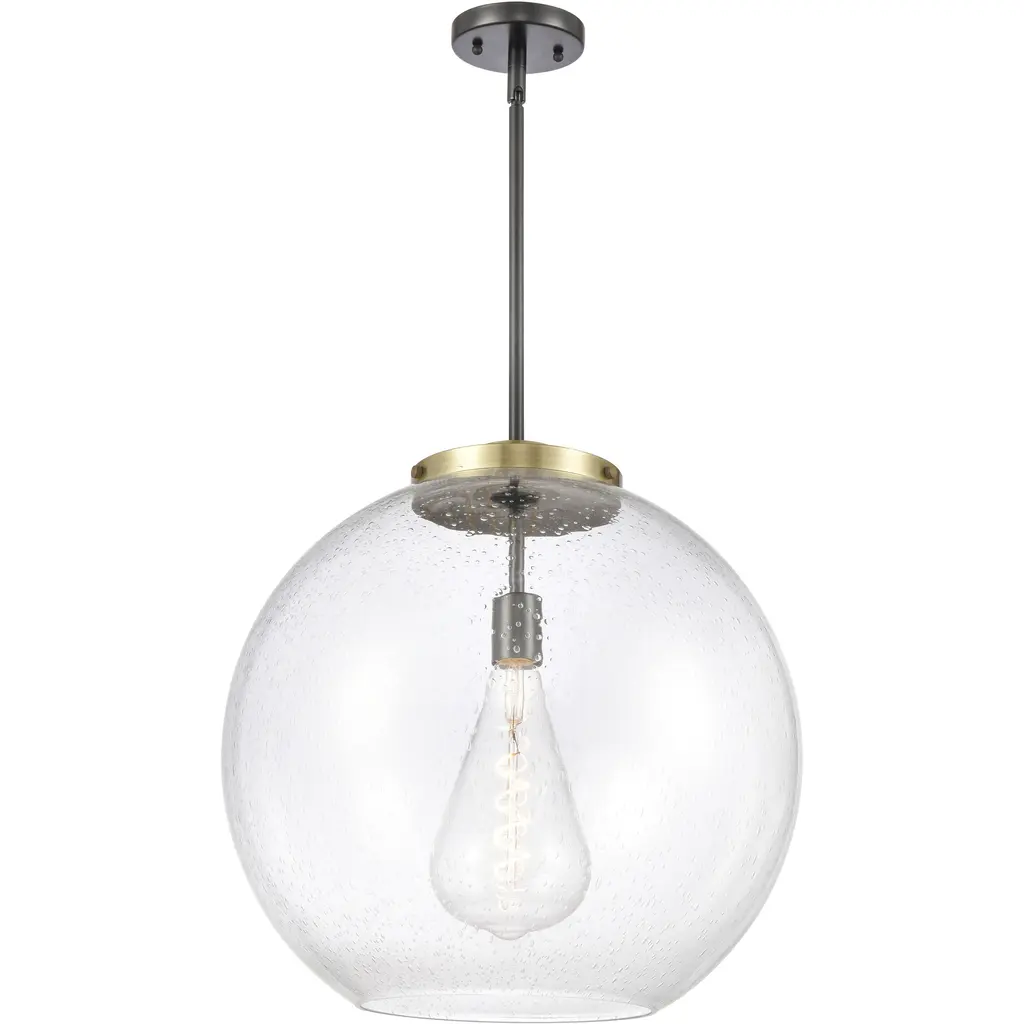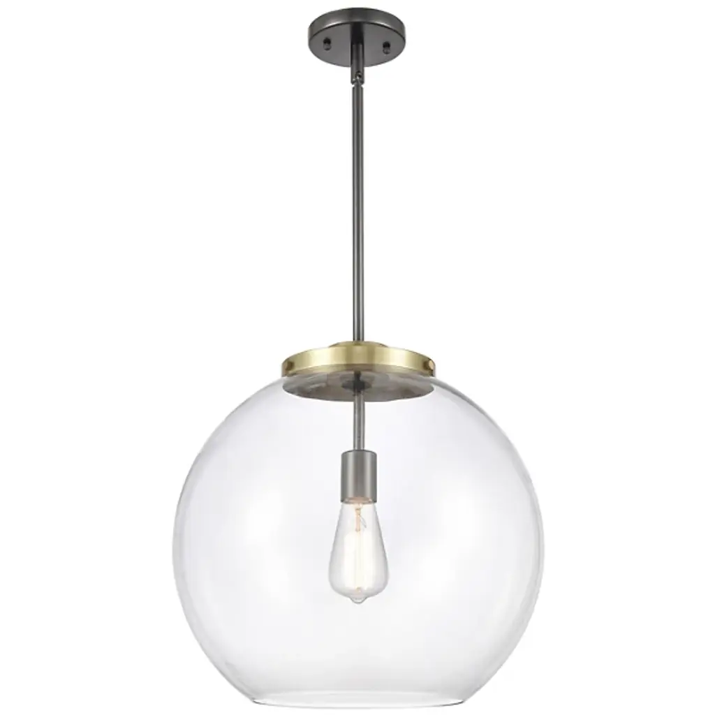 A bright and bubbly modern lighting design. The Kody Large Pendant by Alder & Ore pairs a refined, solid brass frame with a generously sized sphere of glass. This soap bubble-like shade enables plentiful ambient light all around a room, with an open bottom providing direct downlight onto a kitchen island or dining table. The stem-hung suspension includes a swivel at the canopy to keep this pendant hanging perfectly straight, even with sloped ceiling installations.