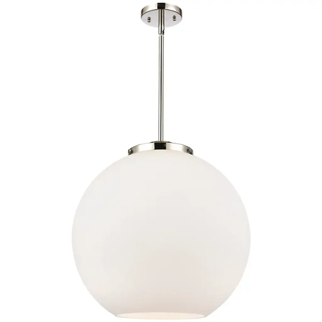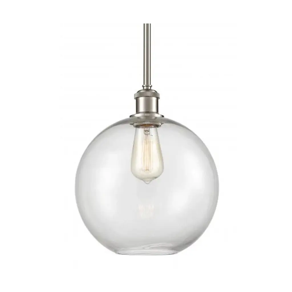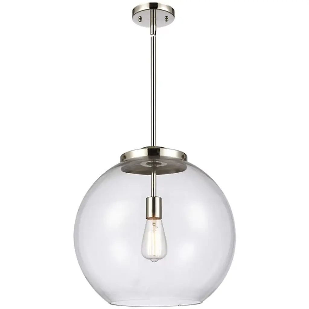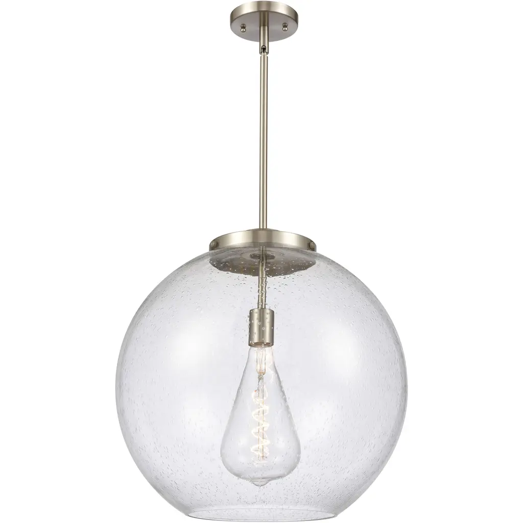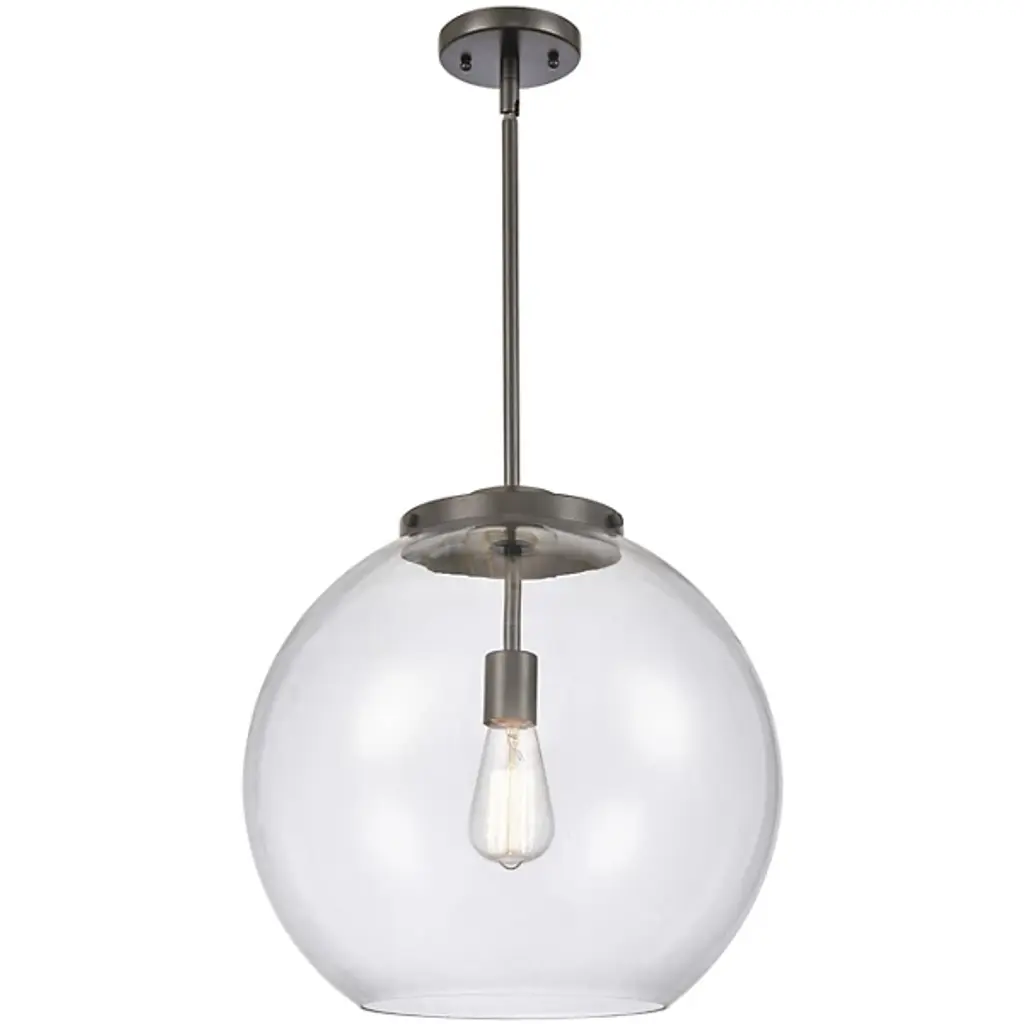 A bright and bubbly modern lighting design. The Kody Large Pendant by Alder & Ore pairs a refined, solid brass frame with a generously sized sphere of glass. This soap bubble-like shade enables plentiful ambient light all around a room, with an open bottom providing direct downlight onto a kitchen island or dining table. The stem-hung suspension includes a swivel at the canopy to keep this pendant hanging perfectly straight, even with sloped ceiling installations.