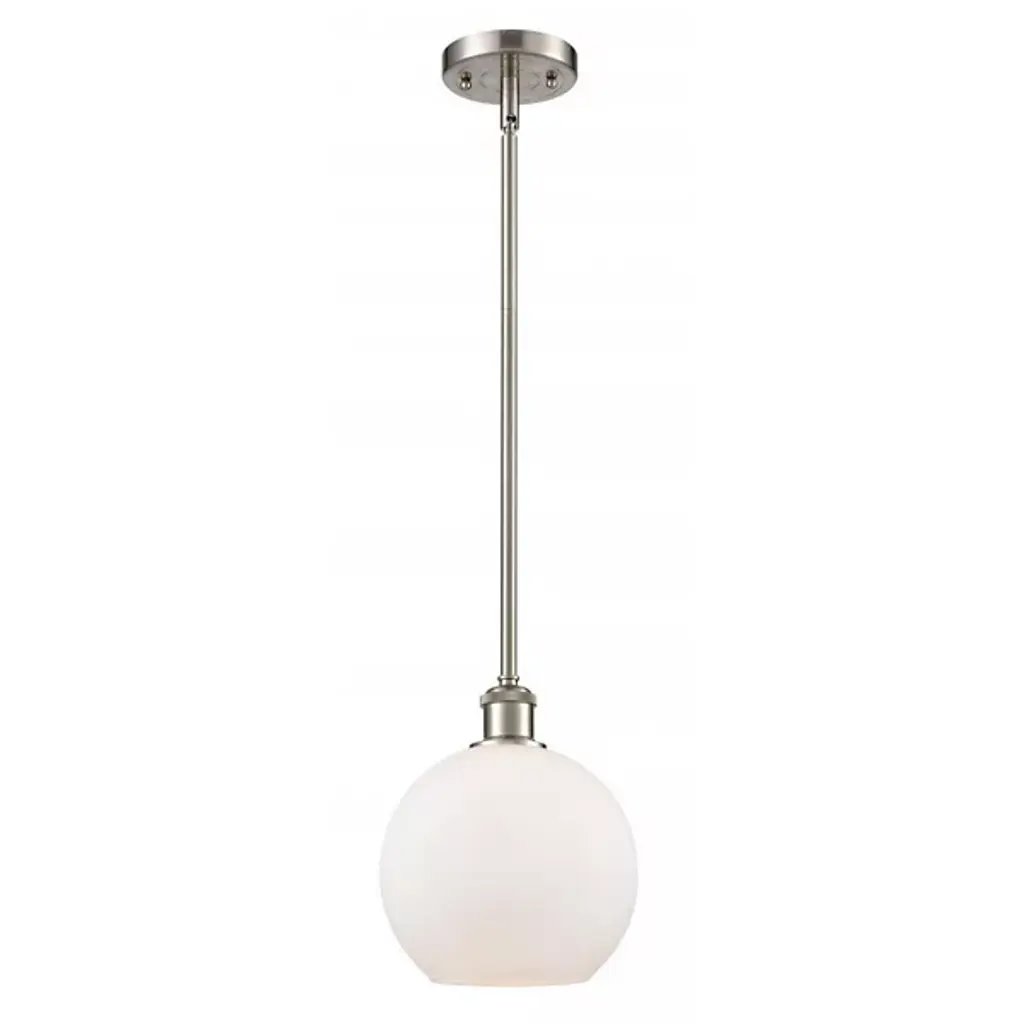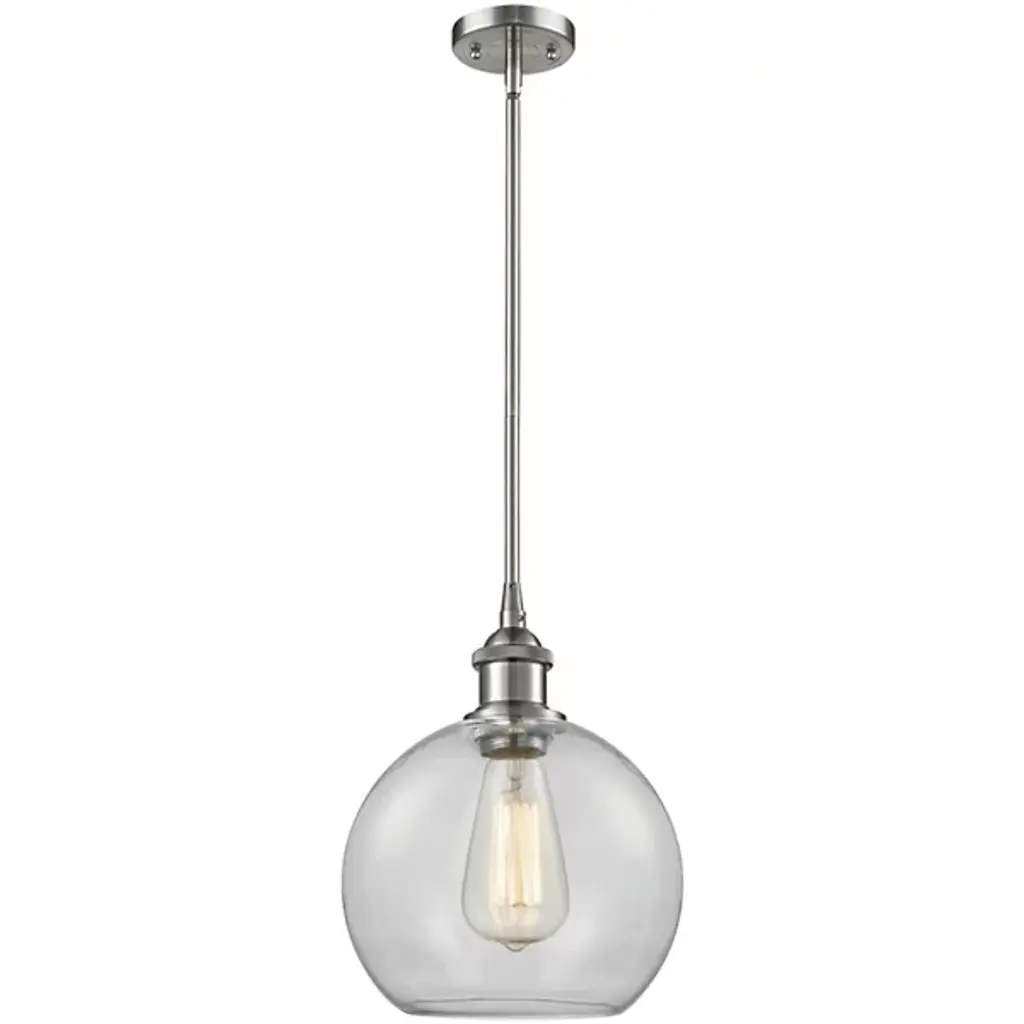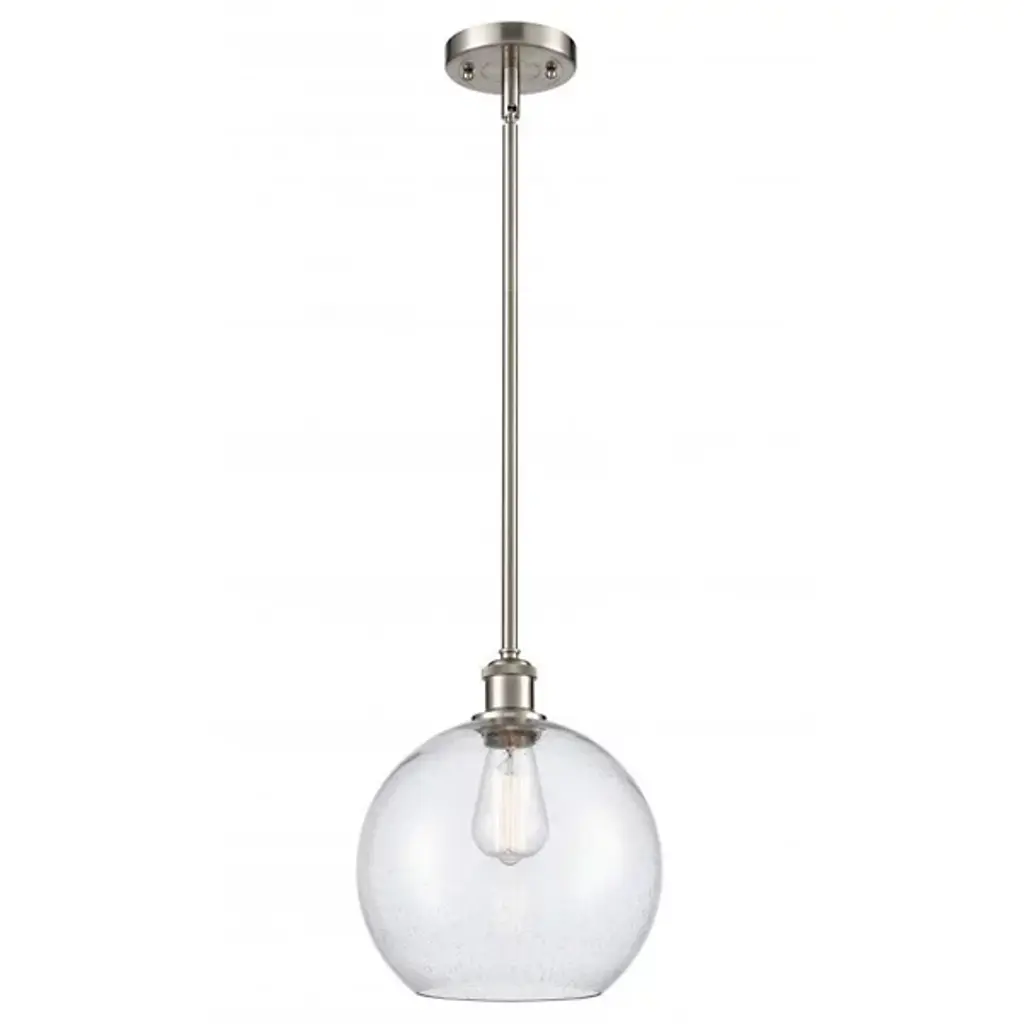 Enhance the intimacy of a cozy space or create a fulfilling atmosphere with the elegant and adaptable Kody Pendant from Alder & Ore. The pendant's slim design looks great on its own or as a series. Suspended via a tidy rod, a metal lamp holder subtly reveals the industrial side of this modern design with a knurled ring accent. The piece pops visually like a bubble as it produces a glass globe shade. Glazed with a warm hue, the shade produces an ambient glow and a pool of task lighting.