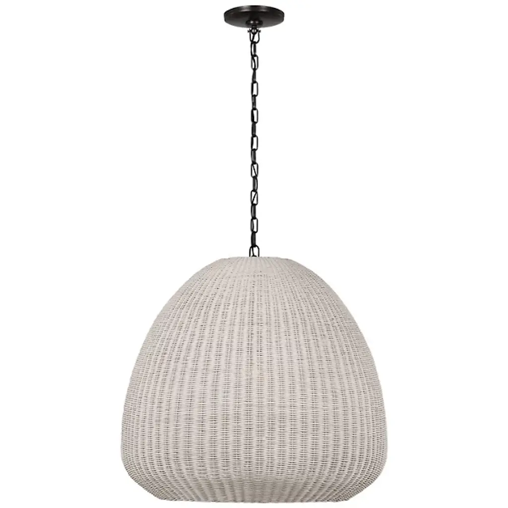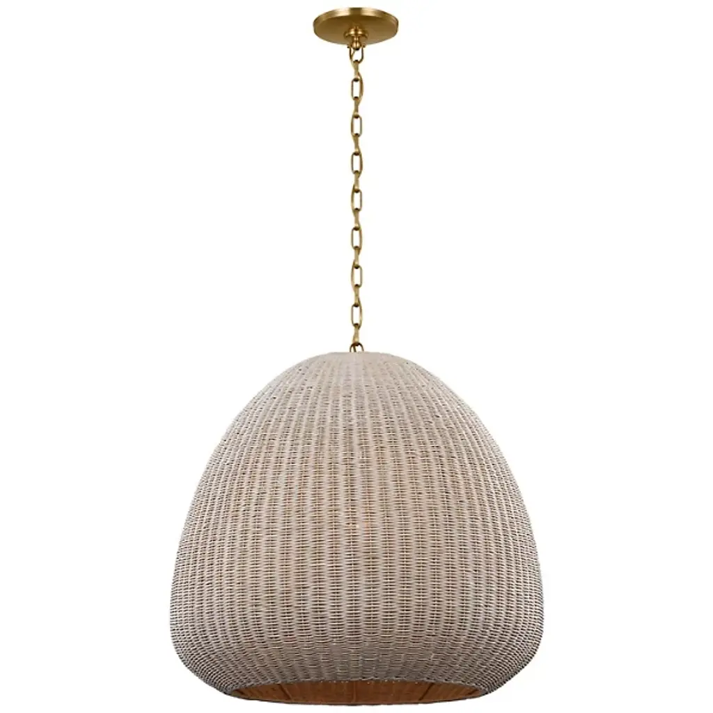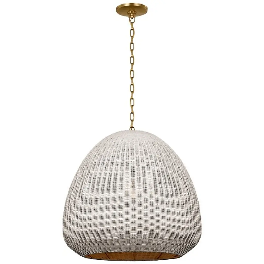 The Kokomo Domed Pendant from Visual Comfort Signature expands on Chapman & Myers' original design with a broader silhouette. The wicker construction creates a more expansive dome shape while maintaining the detailed weaving pattern of its companion piece. Brass mounting hardware provides subtle metallic accents throughout the design. This pendant excels above round dining tables or in covered outdoor living spaces where its generous scale and natural materials create an inviting atmosphere.
