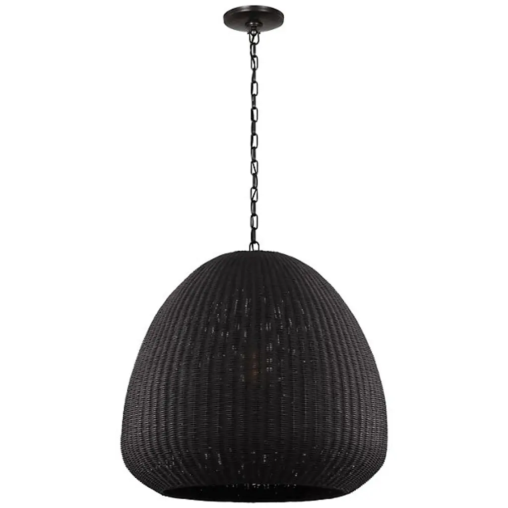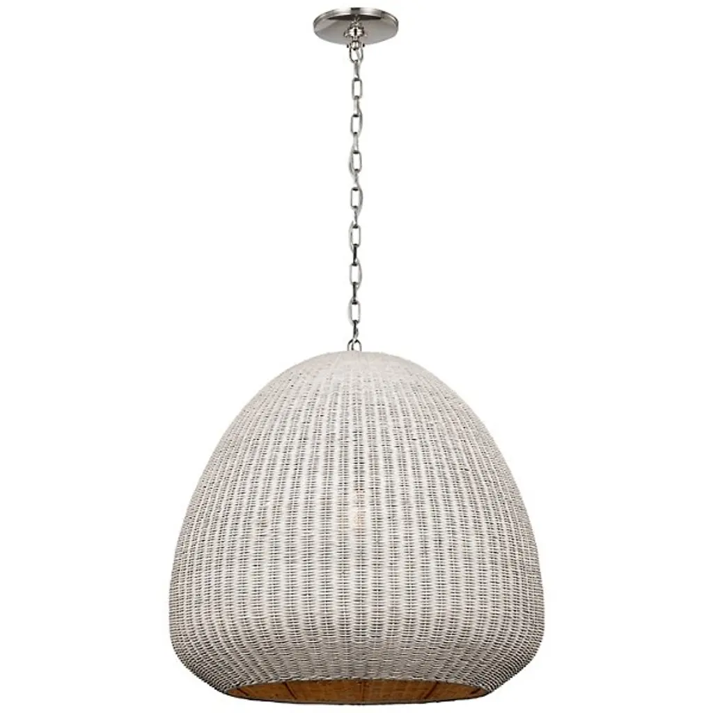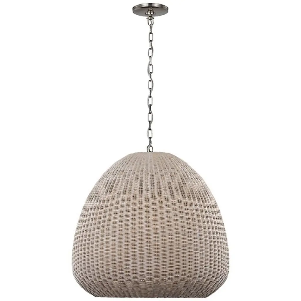 The Kokomo Domed Pendant from Visual Comfort Signature expands on Chapman & Myers' original design with a broader silhouette. The wicker construction creates a more expansive dome shape while maintaining the detailed weaving pattern of its companion piece. Brass mounting hardware provides subtle metallic accents throughout the design. This pendant excels above round dining tables or in covered outdoor living spaces where its generous scale and natural materials create an inviting atmosphere.