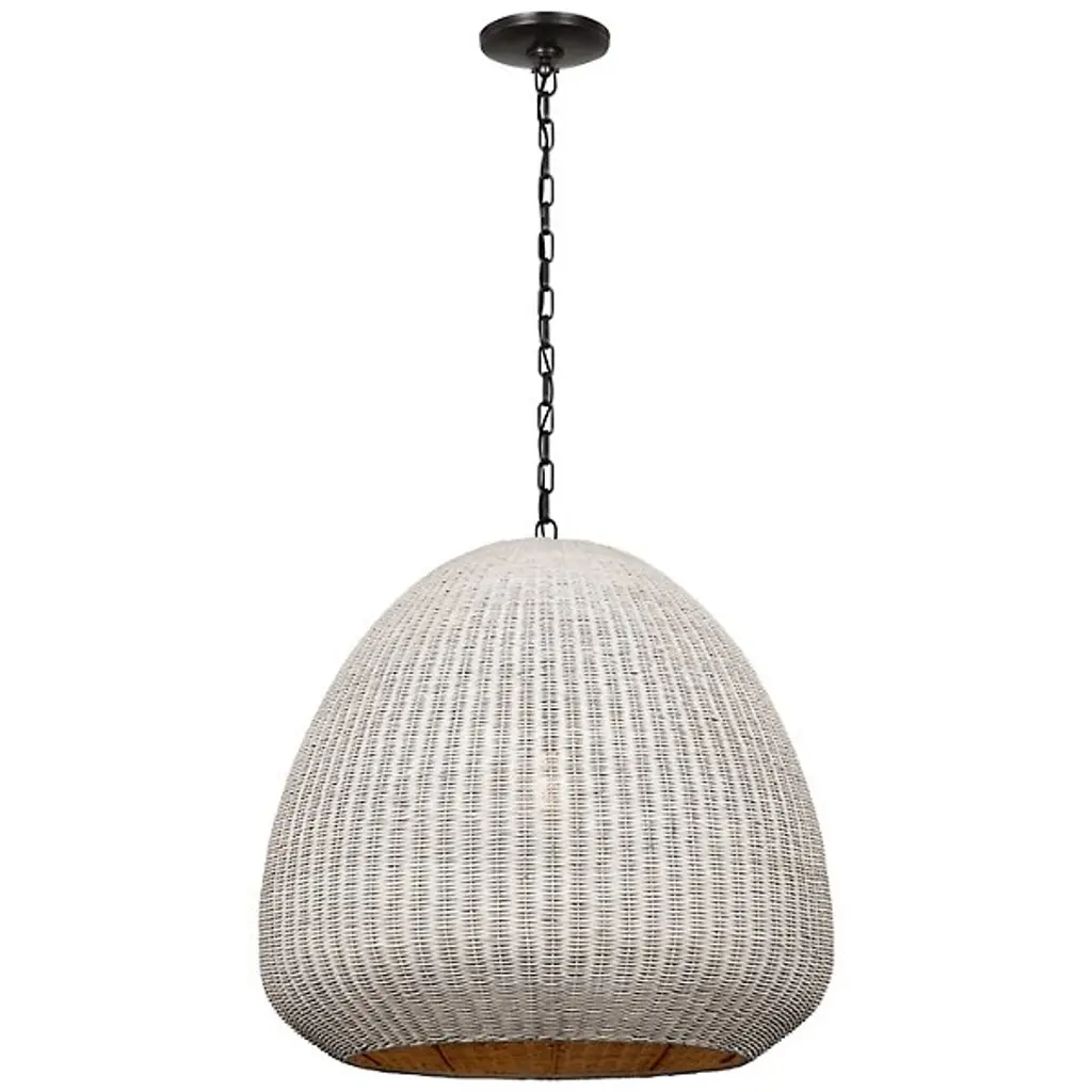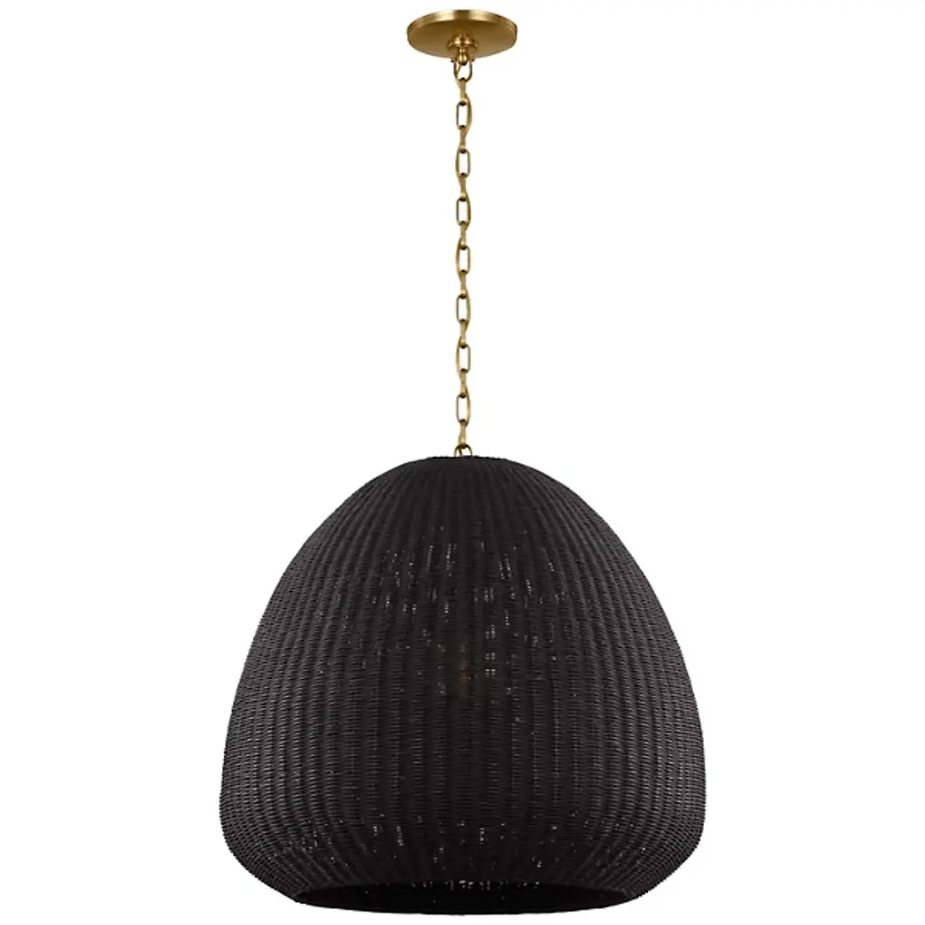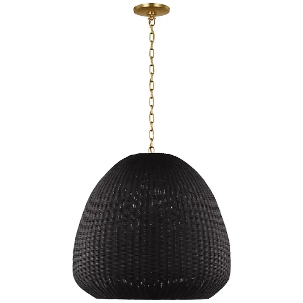 The Kokomo Domed Pendant from Visual Comfort Signature expands on Chapman & Myers' original design with a broader silhouette. The wicker construction creates a more expansive dome shape while maintaining the detailed weaving pattern of its companion piece. Brass mounting hardware provides subtle metallic accents throughout the design. This pendant excels above round dining tables or in covered outdoor living spaces where its generous scale and natural materials create an inviting atmosphere.