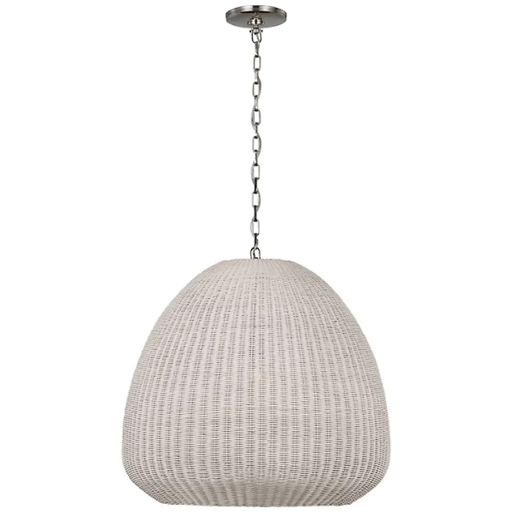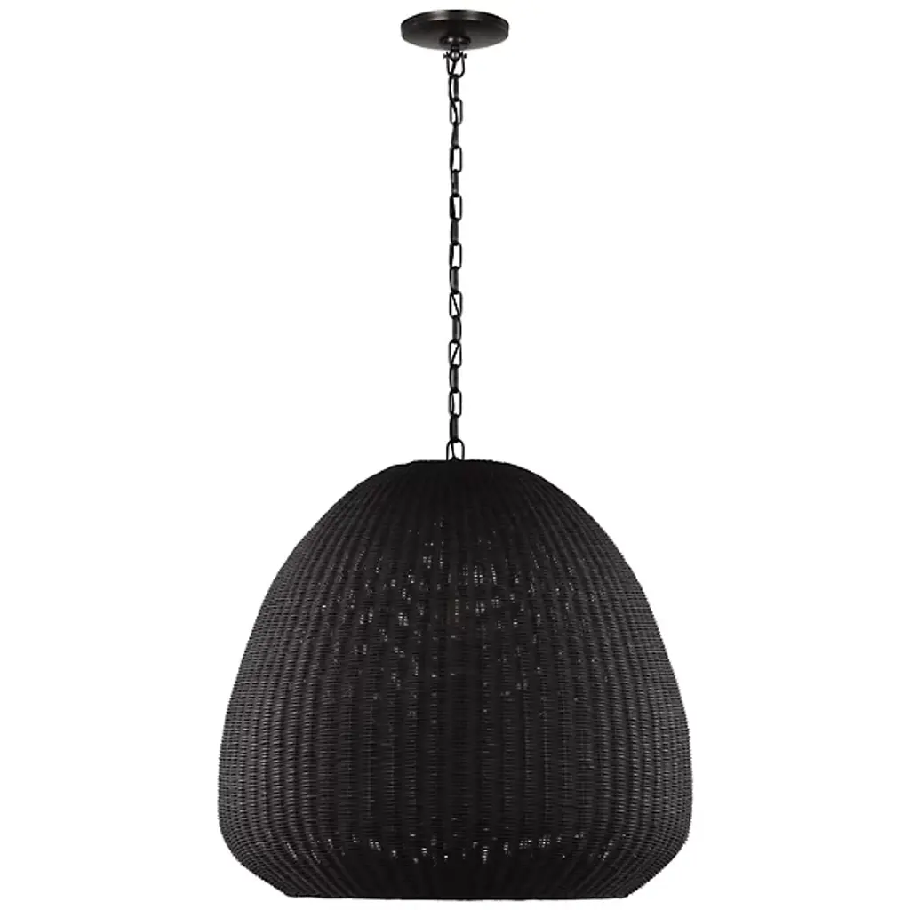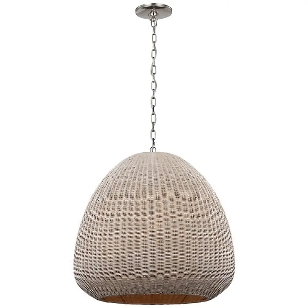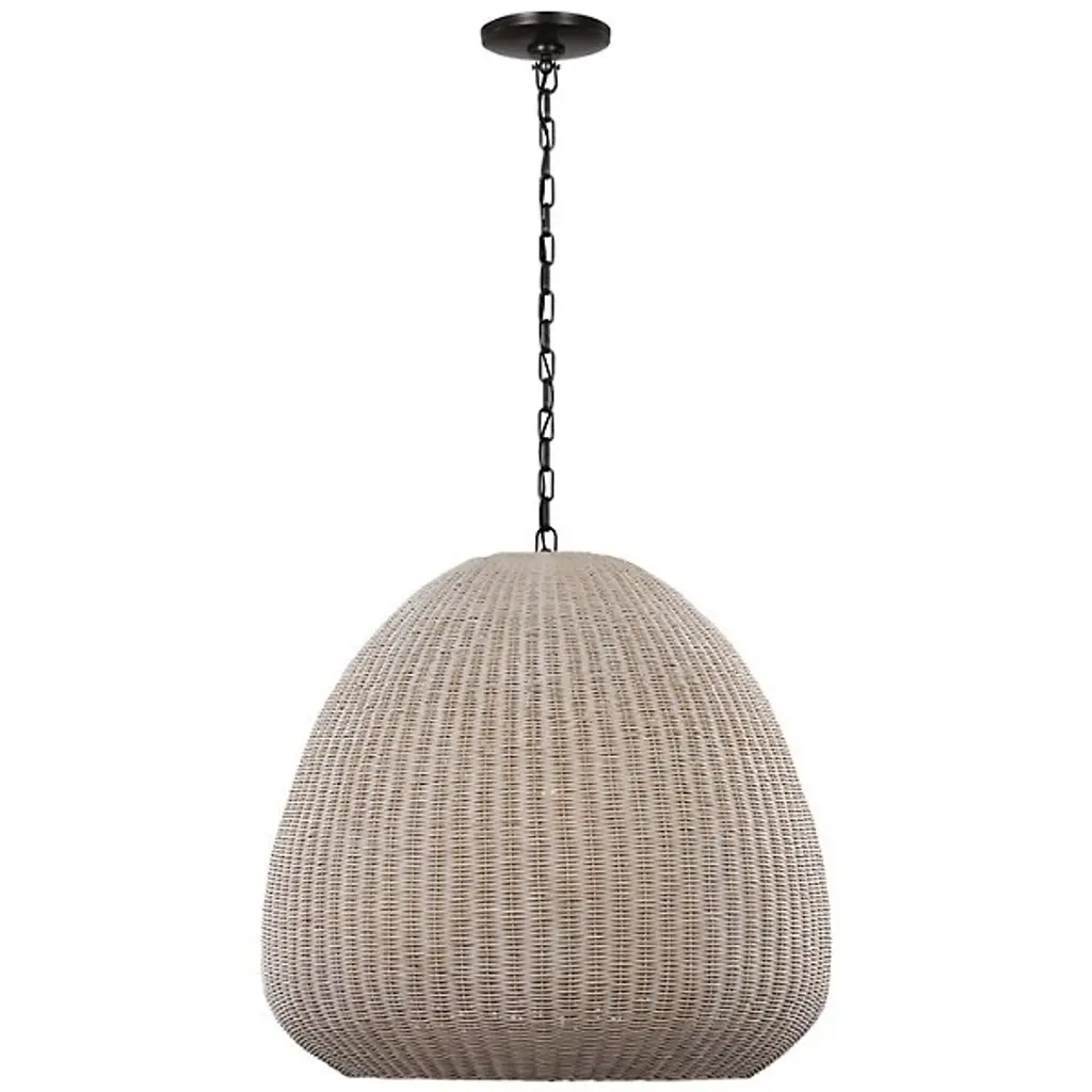 The Kokomo Domed Pendant from Visual Comfort Signature expands on Chapman & Myers' original design with a broader silhouette. The wicker construction creates a more expansive dome shape while maintaining the detailed weaving pattern of its companion piece. Brass mounting hardware provides subtle metallic accents throughout the design. This pendant excels above round dining tables or in covered outdoor living spaces where its generous scale and natural materials create an inviting atmosphere.