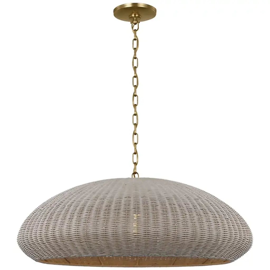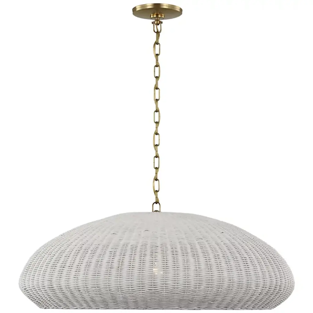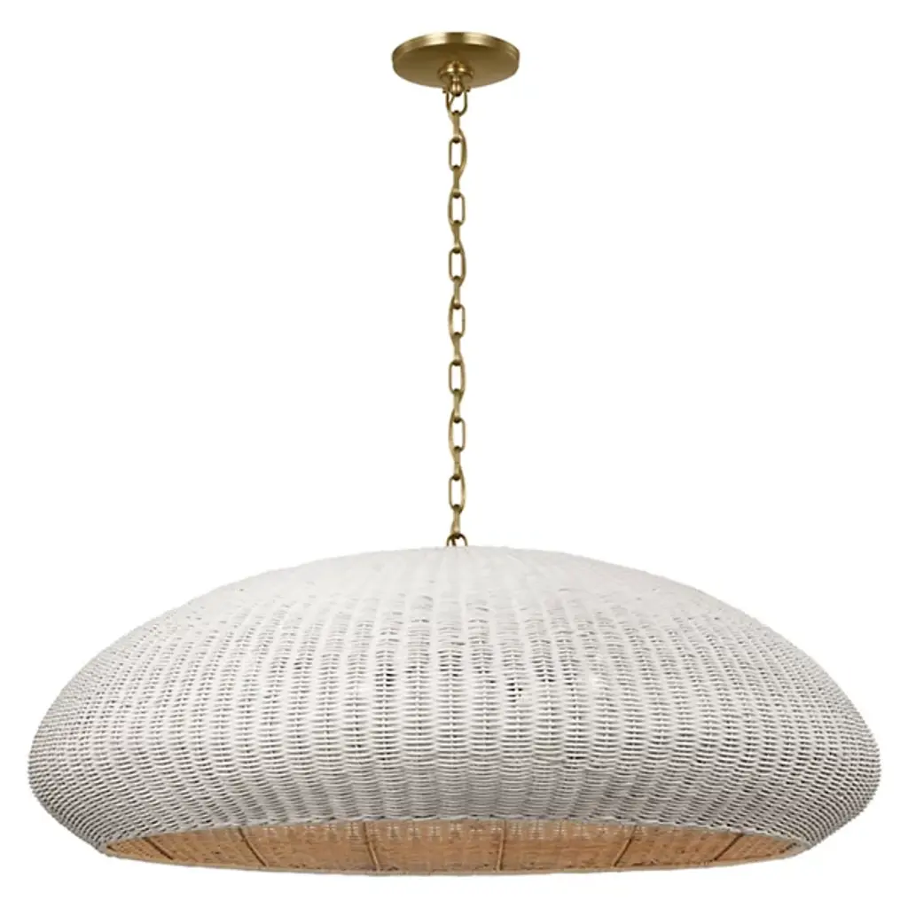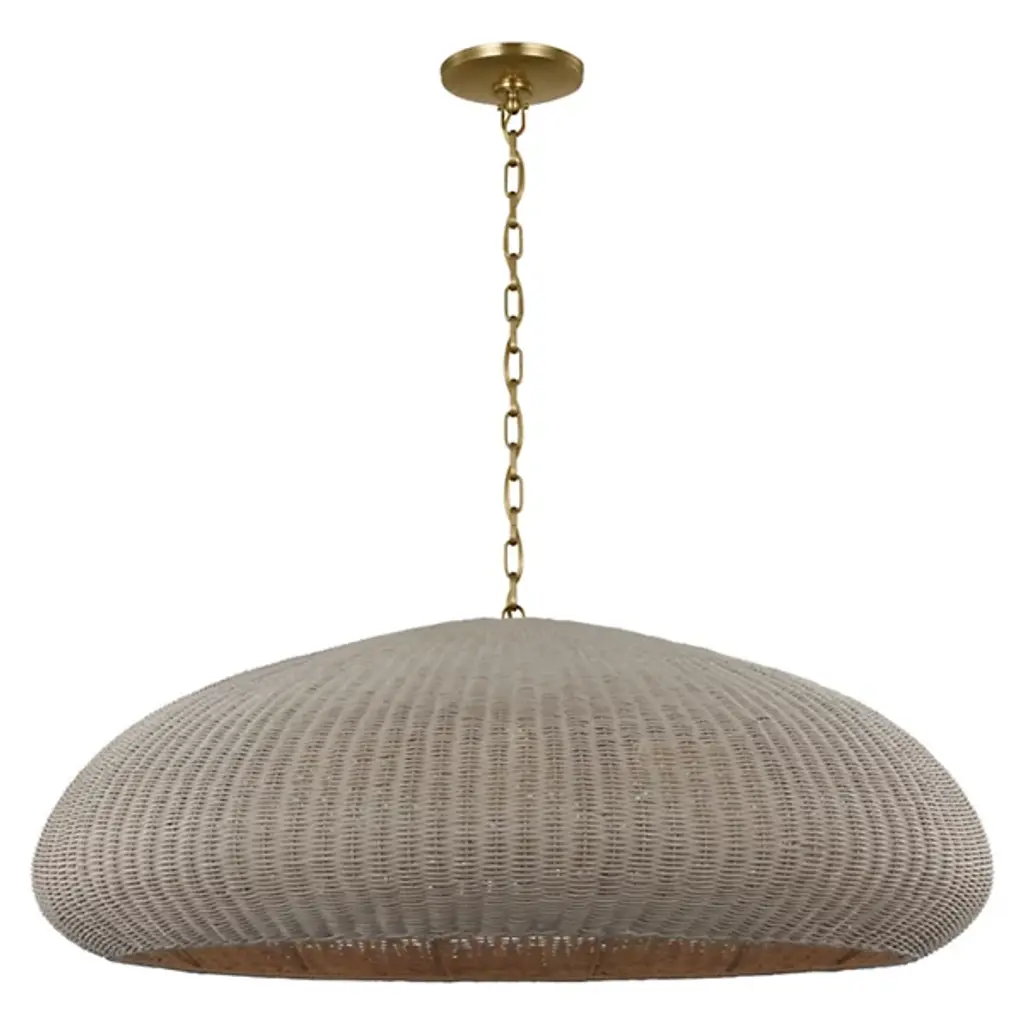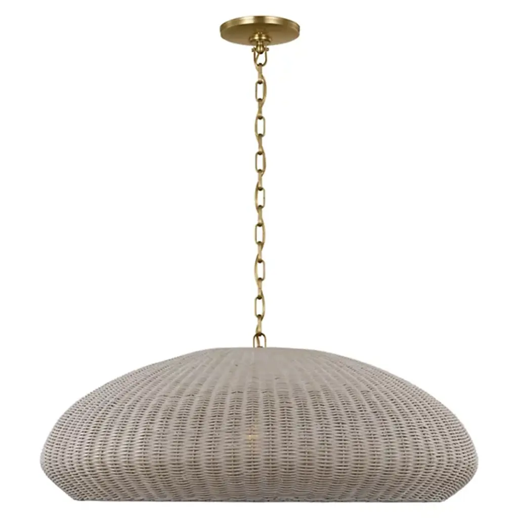 The Kokomo Wide Pendant from Visual Comfort Signature exemplifies Chapman & Myers' interest in natural materials. The woven wicker dome creates organic patterns as light filters through its intricate weave. The pendant's low-profile design maximizes overhead space while maintaining a substantial visual presence. The brass chain suspension adds structural contrast to the natural wicker shade, demonstrating thoughtful material selection. This fixture brings an understated coastal influence to interior spaces through its honest use of materials.