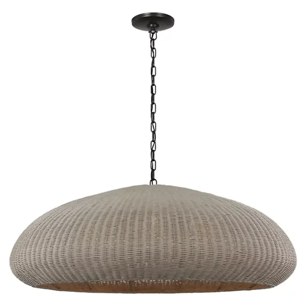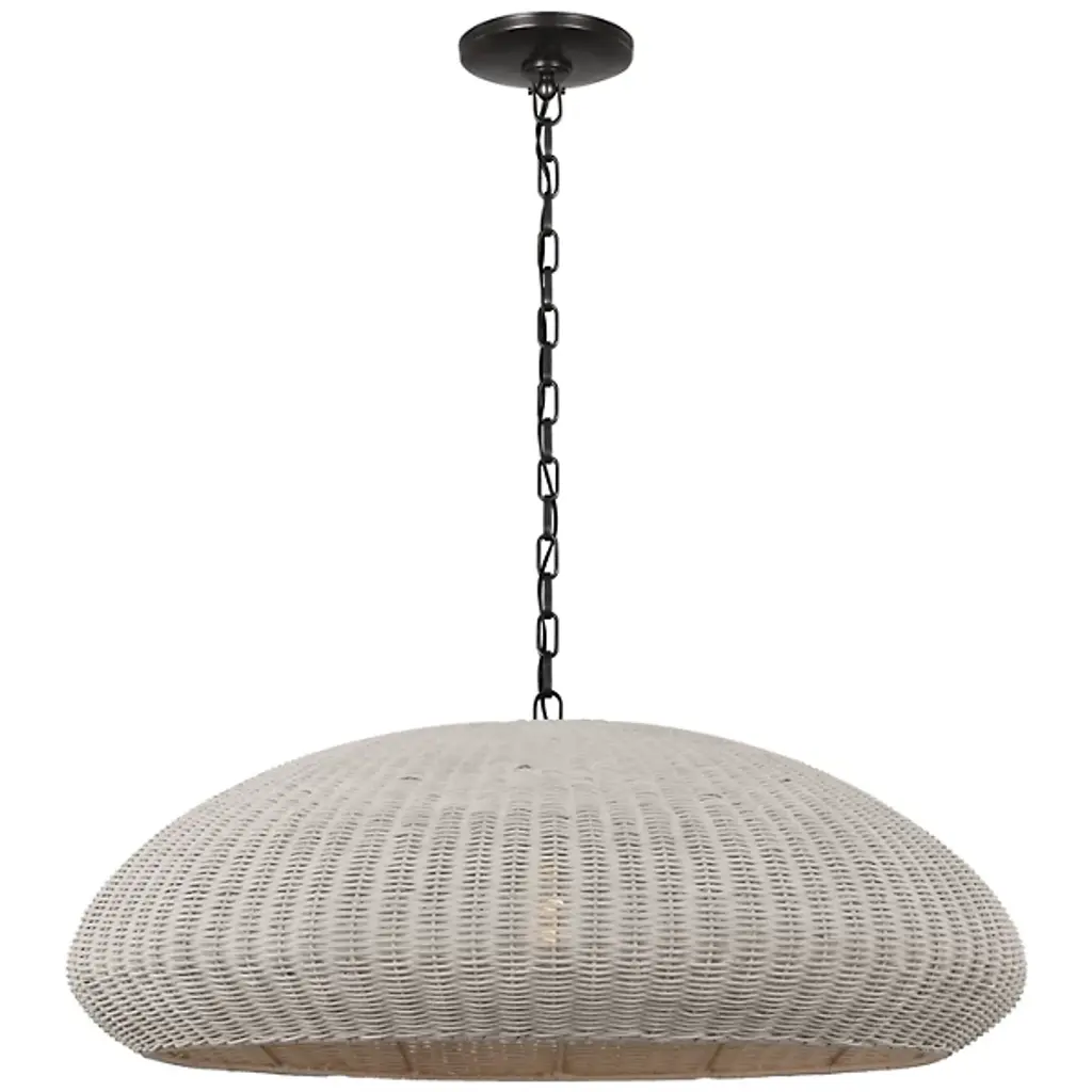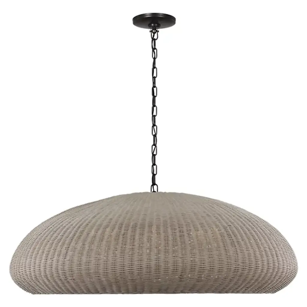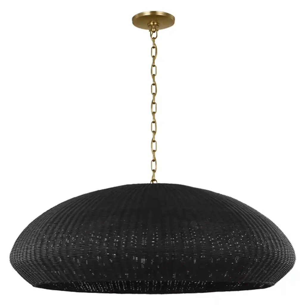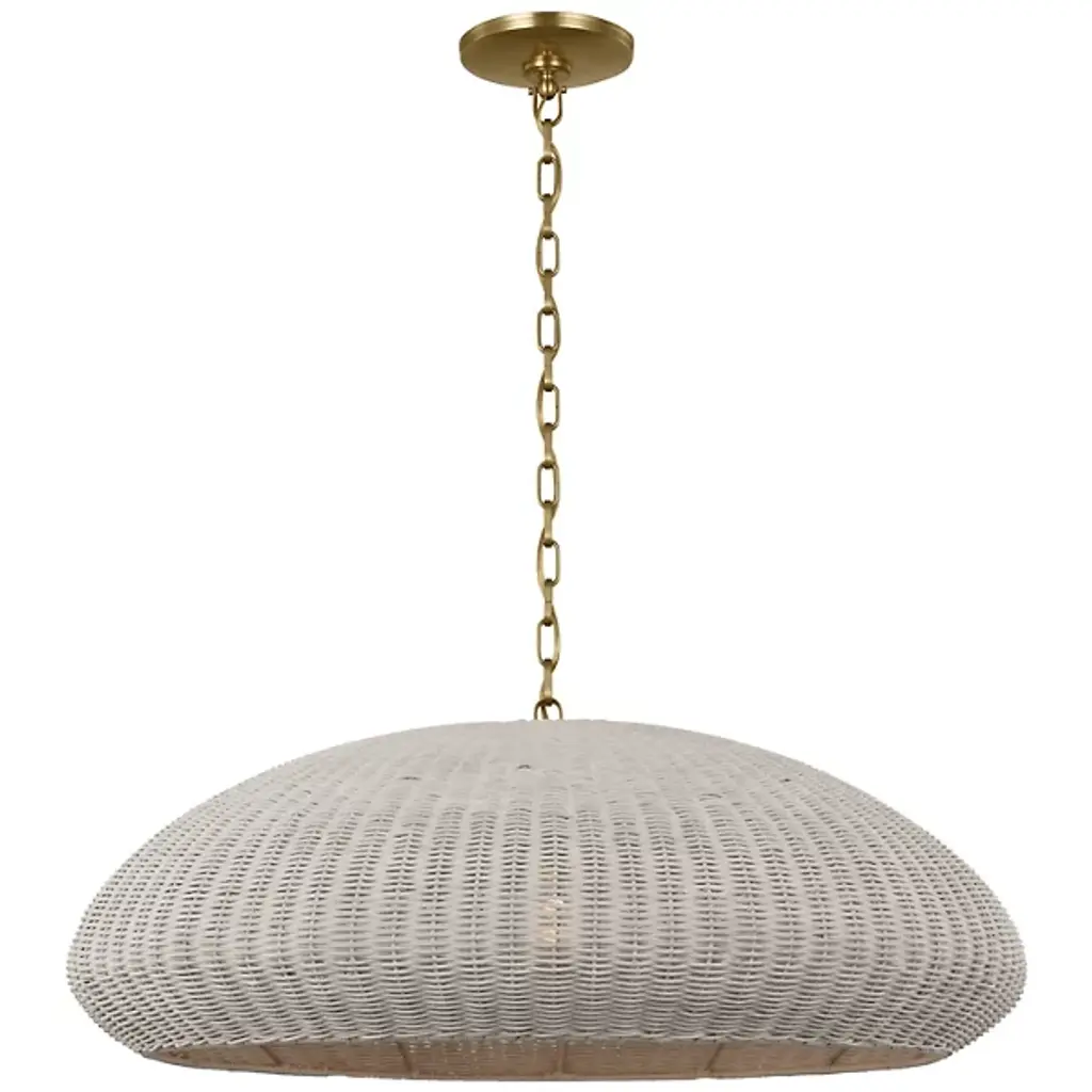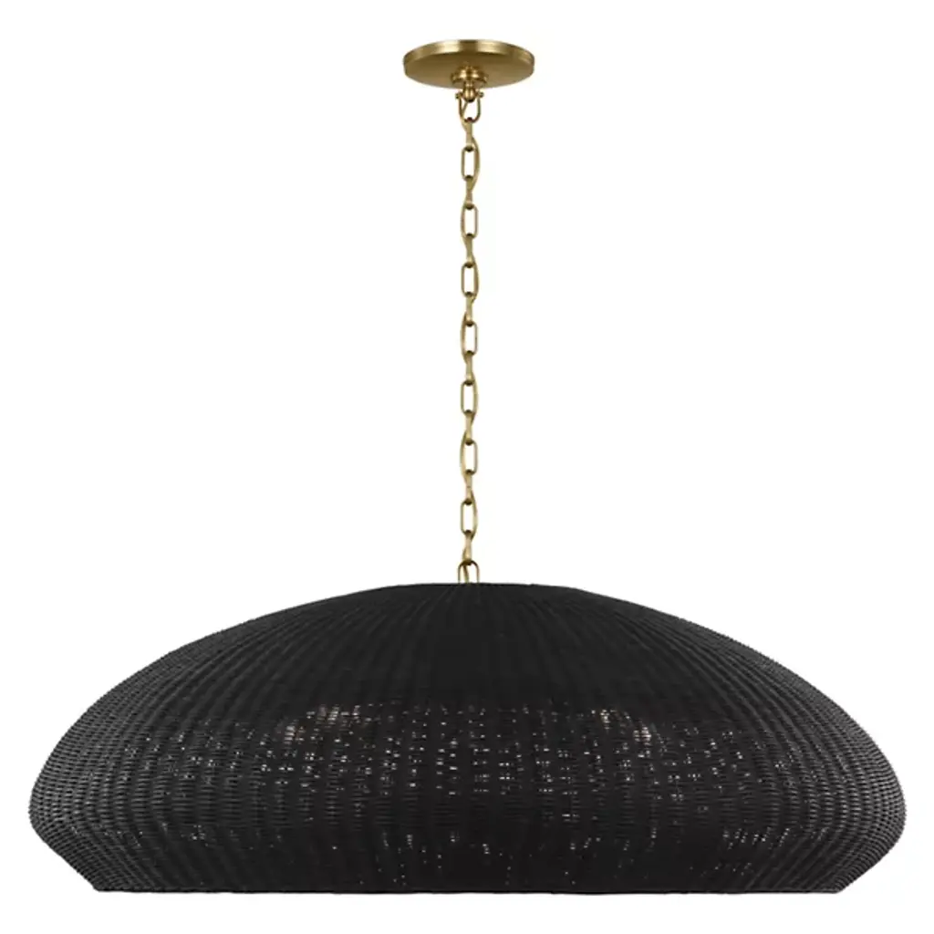 The Kokomo Wide Pendant from Visual Comfort Signature exemplifies Chapman & Myers' interest in natural materials. The woven wicker dome creates organic patterns as light filters through its intricate weave. The pendant's low-profile design maximizes overhead space while maintaining a substantial visual presence. The brass chain suspension adds structural contrast to the natural wicker shade, demonstrating thoughtful material selection. This fixture brings an understated coastal influence to interior spaces through its honest use of materials.