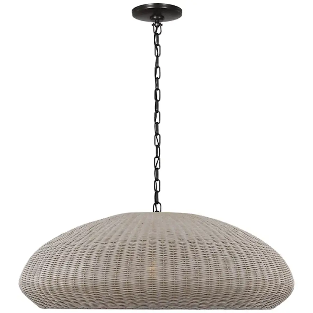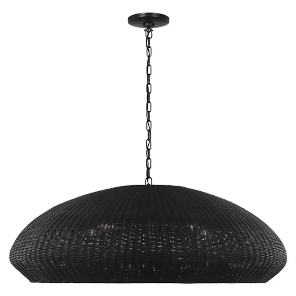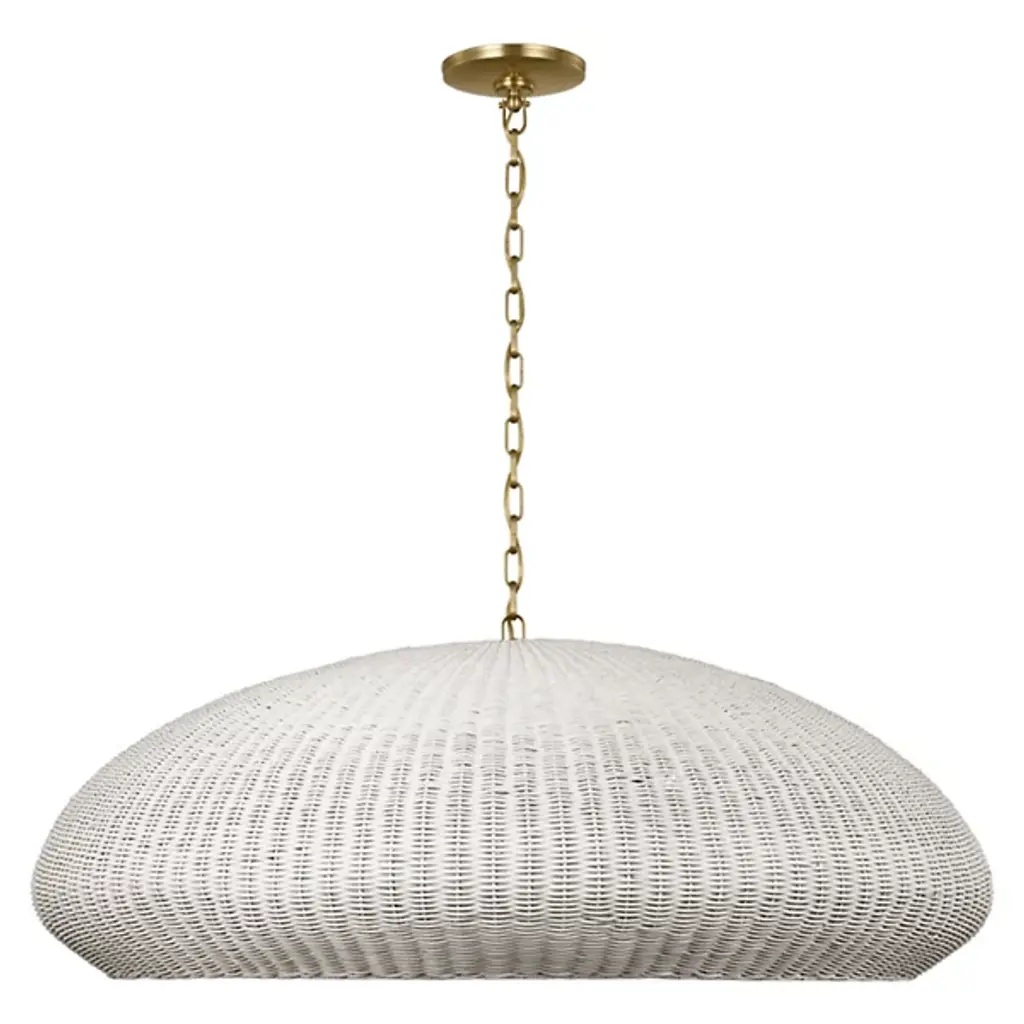 The Kokomo Wide Pendant from Visual Comfort Signature exemplifies Chapman & Myers' interest in natural materials. The woven wicker dome creates organic patterns as light filters through its intricate weave. The pendant's low-profile design maximizes overhead space while maintaining a substantial visual presence. The brass chain suspension adds structural contrast to the natural wicker shade, demonstrating thoughtful material selection. This fixture brings an understated coastal influence to interior spaces through its honest use of materials.