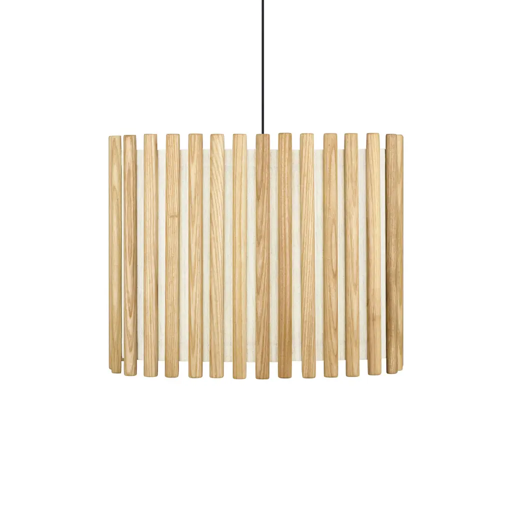 The Komorebi Rectangular Pendant Light from UMAGE is an understated centerpiece that creates a charming atmosphere. Its delicate construction of wooden lamellas and airy textile offers a comforting sense of calm in any interior. Ideal for commercial and residential projects alike, Komorebi provides an endless array of possibilities to transform a space into a haven of peace and serenity. Highlights