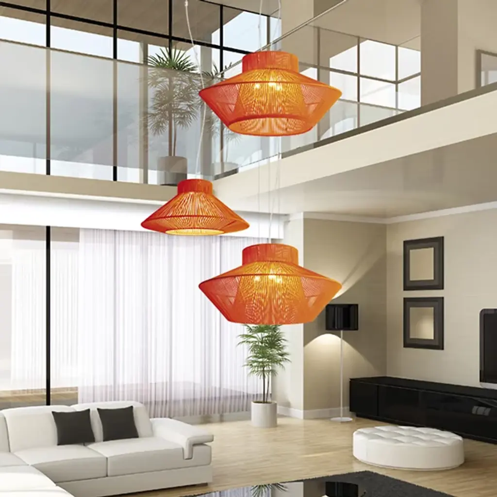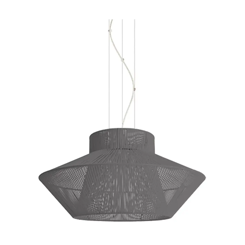 The El Torrent Koord Large Pendant is both angular and soft in form, featuring a metal framework precisely hand-wrapped with acrylic cord that serves ambient and general lighting purposes. Closely observing the pendant reveals the inner design of the light, with a wide central column that allows pure down light to shine through. The cord itself is also hand-braided, making the execution of the design an entirely handmade and customized process.