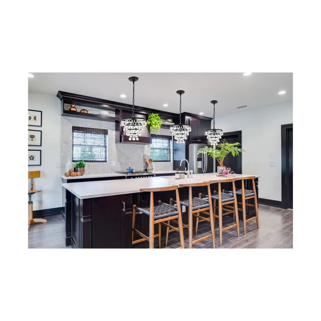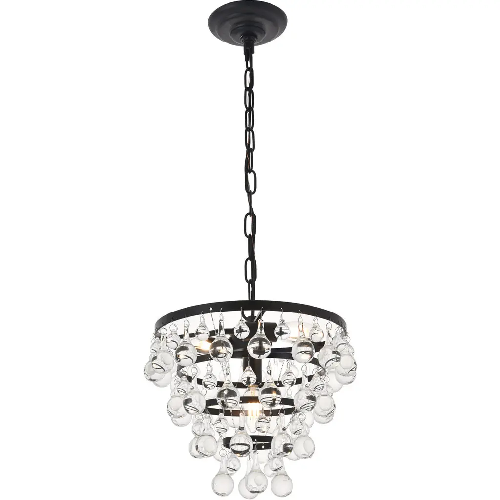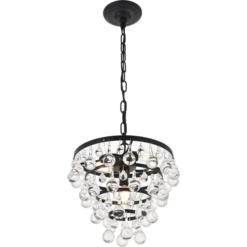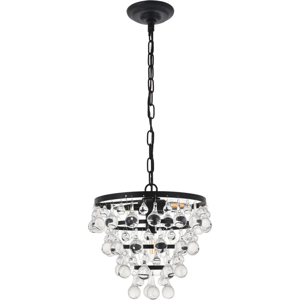 A combination of refined and playful brings us the Kora collection pendant lamp in a black finish. The tiered frame say sophistication, but the multitude of clear crystal droplets indicate a whimsical personality. The ritzy style is perfect for any home--whether it lights up your home bar or your living room, you can't go wrong.
