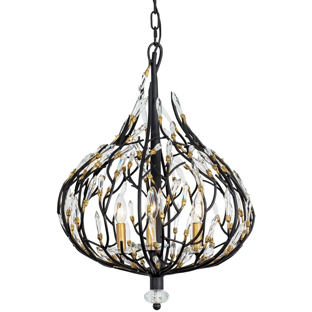 This twelve-light pendant chandelier in antique silver leaf features a halo of gorgeous cut crystals.