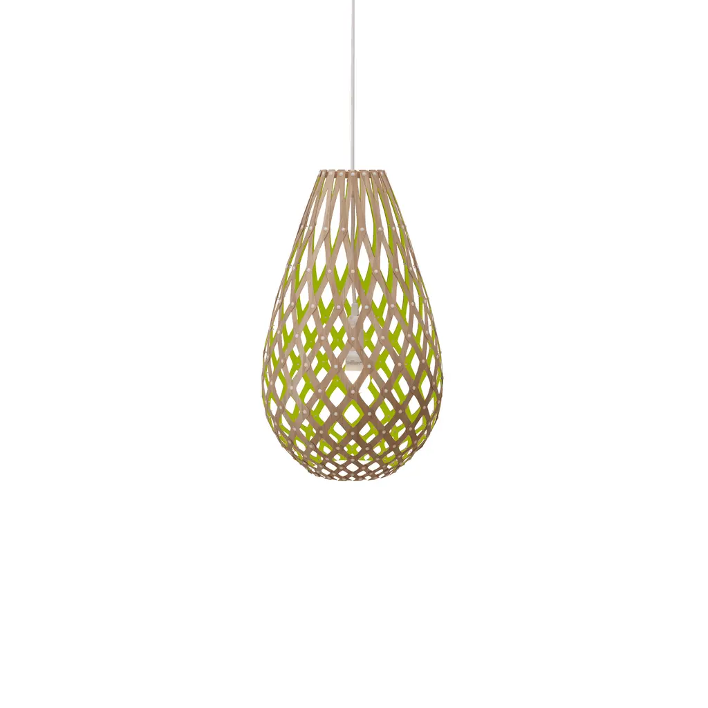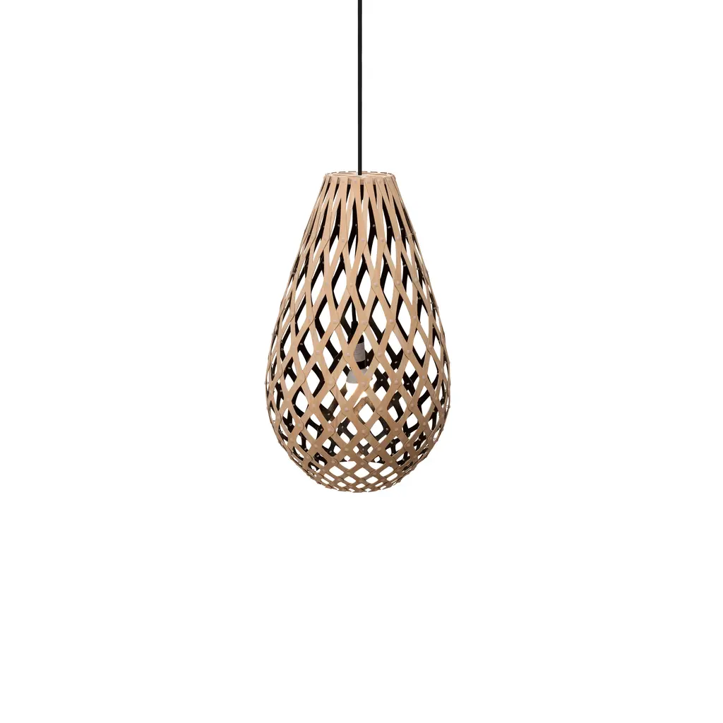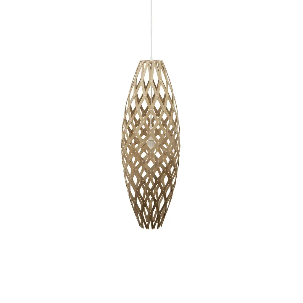 Koura pendant light was inspired by woven baskets and also from the curled form of the New Zealand native fresh water shrimp, kōura, which is its Maori name. Wherever possible, all timber is from sustainably managed plantations in Australia, New Zealand, or the United States. Wood is left natural where appropriate, with natural non-toxic oils being used in place of harmful solvents. From a design point of view, the products use only the minimal amount of materials and are generated with a focus on longevity, rather than mimicking quick-moving trends. The David Trubridge lighting line is designed as Seed Systems that are flat packed and assembled at the installation location. Given that the product is shipped from New Zealand, this method of shipping reduces shipping costs, minimizes risk of damage, and reduces the impact on the environment with significantly (40-50) less volume in each shipment. Features Fixtures are supplied with cUL/UL Listed electrics. Note: David Trubridge Design does not manufacture electrical components utilized in the fixtures. These are sourced from UL/cUL certified manufacturers. As such, our shades are hung on UL/cUL certified electrical cordsets.