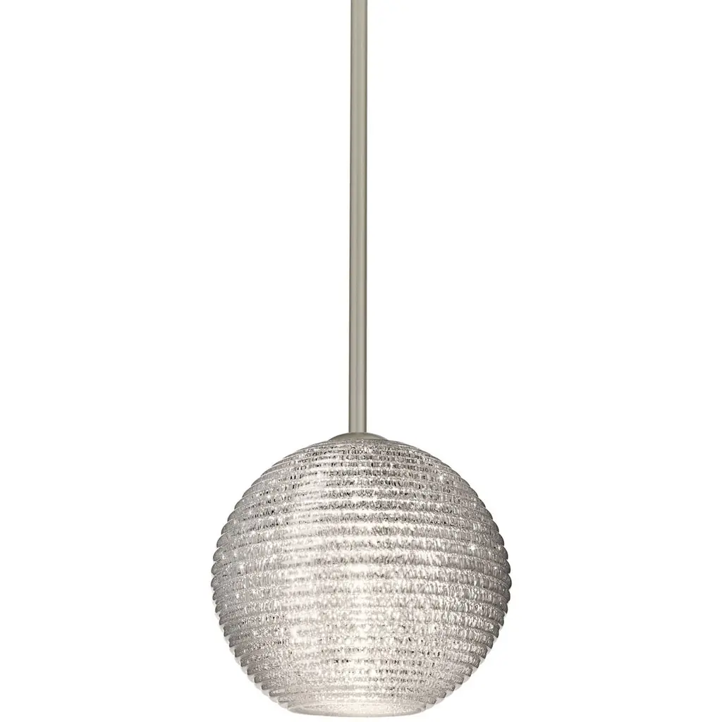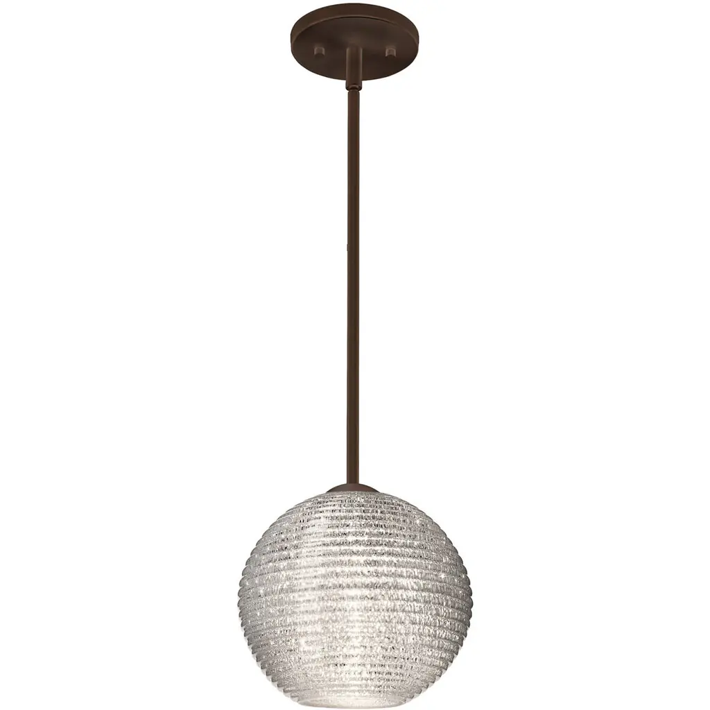 The Kristall is a transparent globe shape, with distinctive ridges, that fits gracefully into contemporary spaces. Our Glitter glass is a clear blown and a technologically advanced crystal coating applied to the inside. The coating contains multiple micro-layers of glass particles that create unique prismatic optical properties, which effectively alter both the reflected and transmitted light. So unlit, it appears like a frosted glass; when lit, it becomes alive with dazzling light effects. The stem pendant fixture is equipped with an adjustable telescoping section, 4 connectable stem sections (3", 6", 12", and 18") and low Profile flat monopoint canopy. These stylish and functional luminaries are offered in a beautiful brushed Bronze finish.