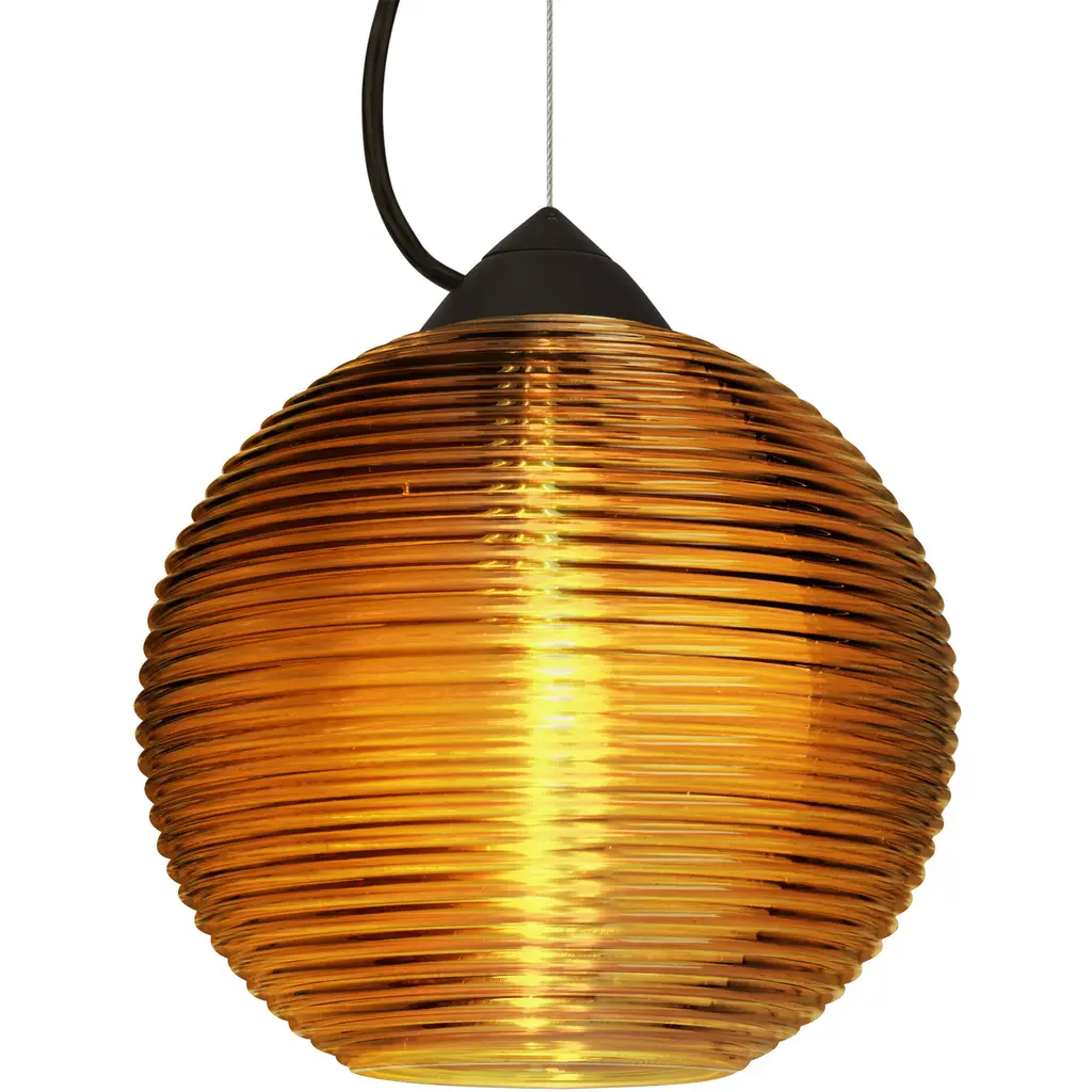 The Kristall is a transparent globe shape, with distinctive ridges, that fits gracefully into contemporary spaces. Our Trans-Amber glass is a colored transparent blown glass. The amber glow has a low key harmonious display that exudes a warm mood. When lit the glass is vitalizing as well as stylish. This blown glass is handcrafted by a skilled artisan, utilizing century-old techniques passed down from generation to generation. The cord pendant fixture is equipped with a 10' SVT cordset and a low profile flat monopoint canopy. These stylish and functional luminaries are offered in a beautiful Black finish.
