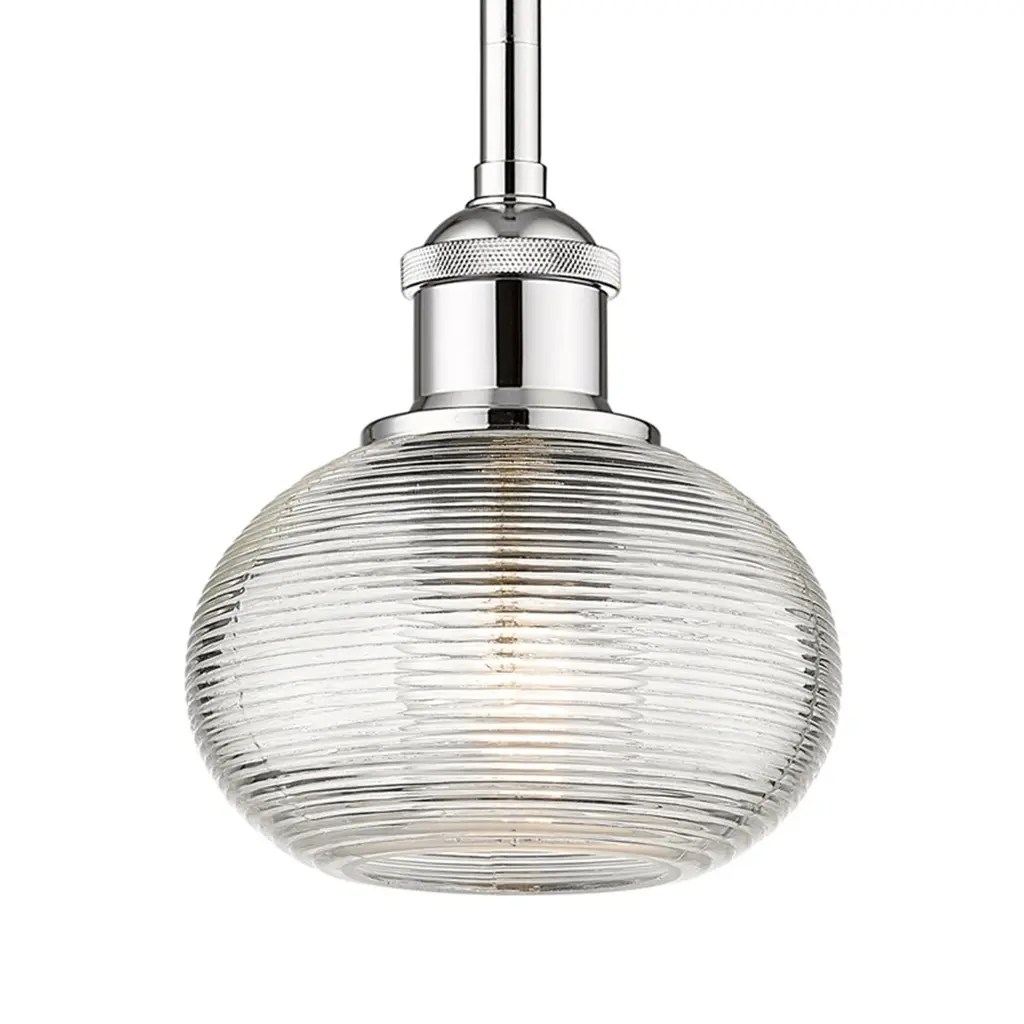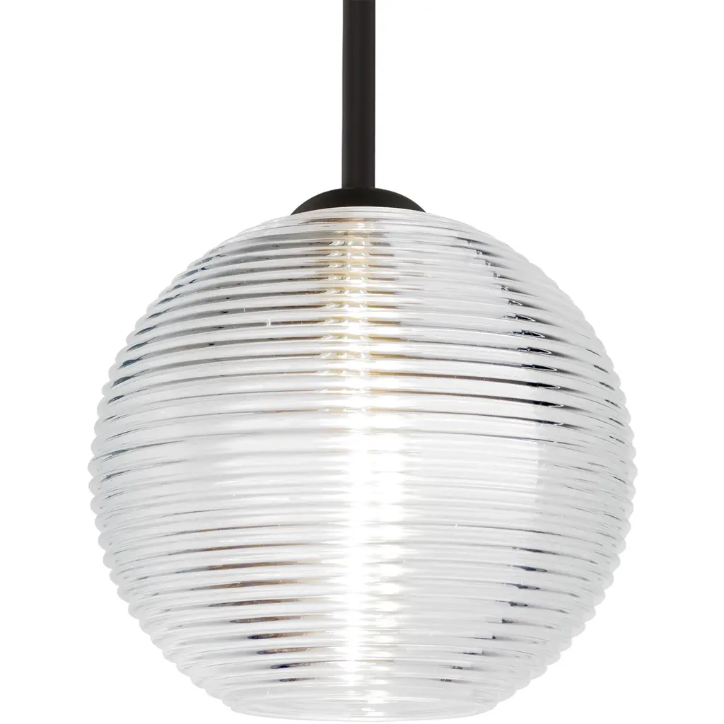 The Kristall is a transparent globe shape, with distinctive ridges, that fits gracefully into contemporary spaces. Our Trans-Smoke glass is a colored transparent blown glass. The seductive glow has a low key harmonious display that exudes a warm mood. When lit the glass is vitalizing as well as stylish. This blown glass is handcrafted by a skilled artisan, utilizing century-old techniques passed down from generation to generation. The stem pendant fixture is equipped with an adjustable telescoping section, 4 connectable stem sections (3", 6", 12", and 18") and low Profile flat monopoint canopy. These stylish and functional luminaries are offered in a beautiful Black finish.