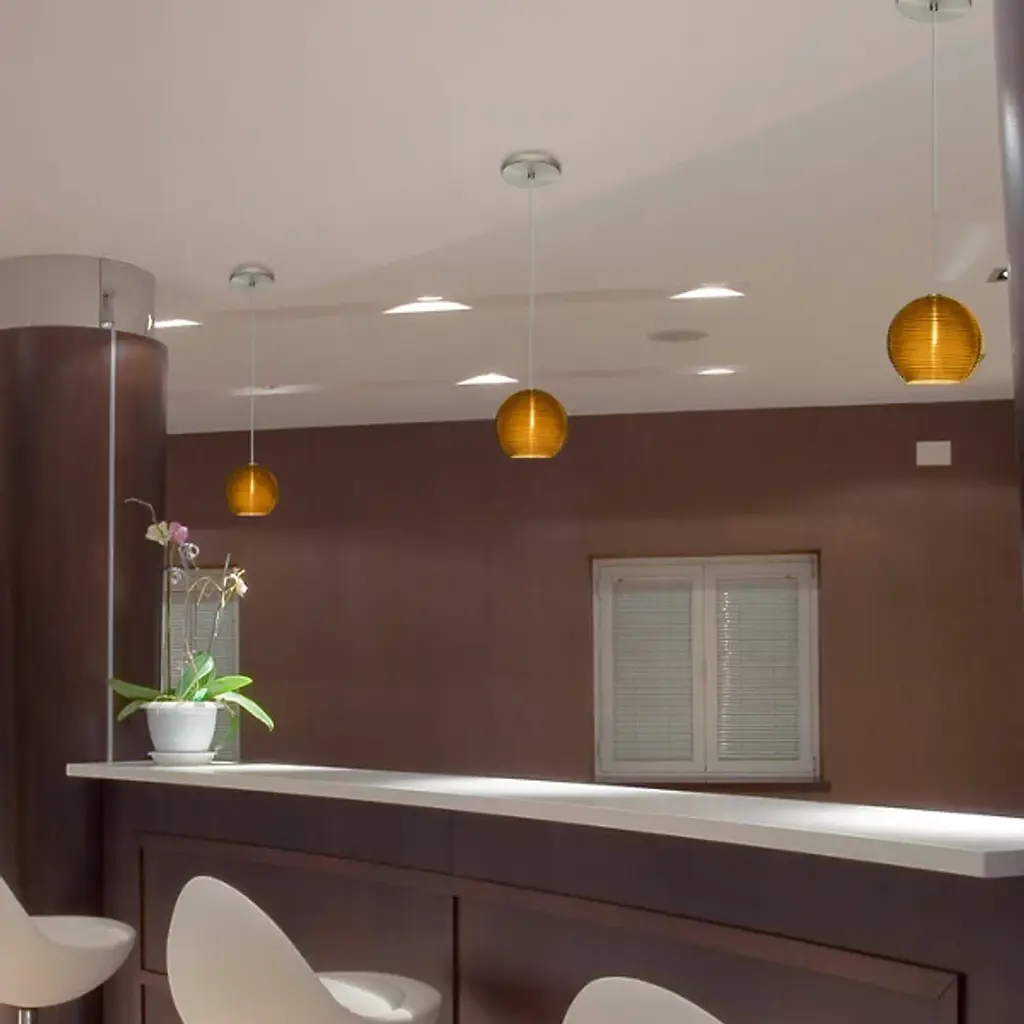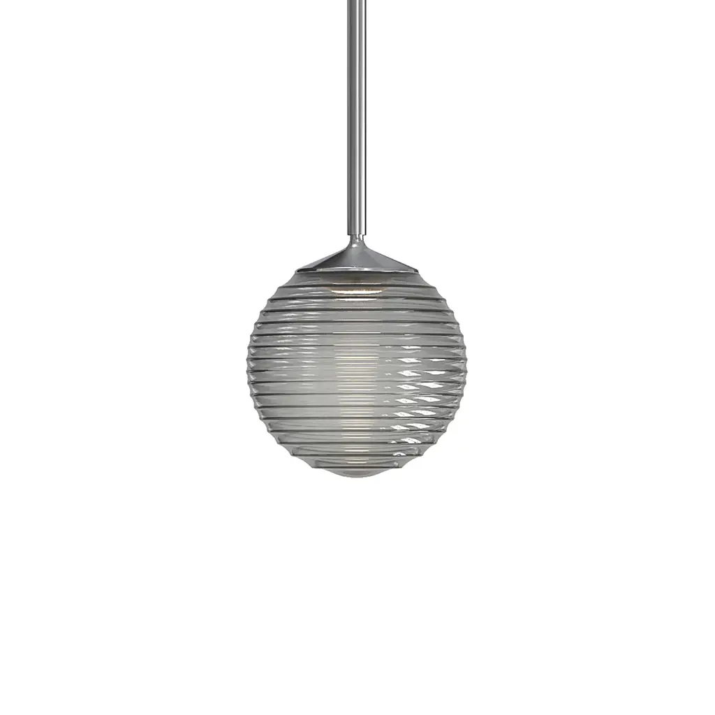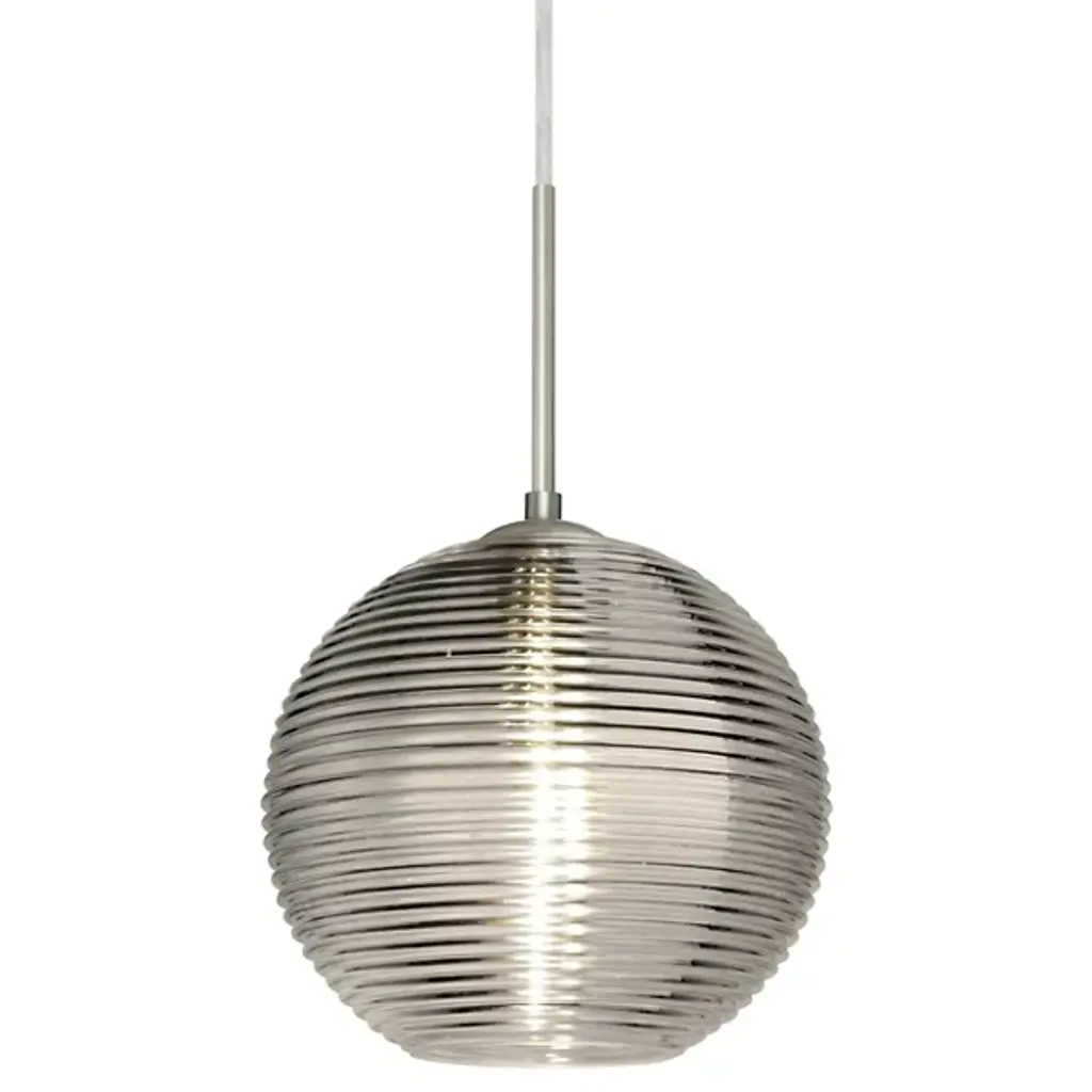 Distinctive ridges impart a graceful sophistication to the Besa Lighting Kristall 8 Pendant. A hand-blown transparent glass globe is horizontally corrugated, providing texture when unlit and allowing light and shadow to dance over the ribs when illuminated. A stylish yet subtle option for modern entertaining spaces.