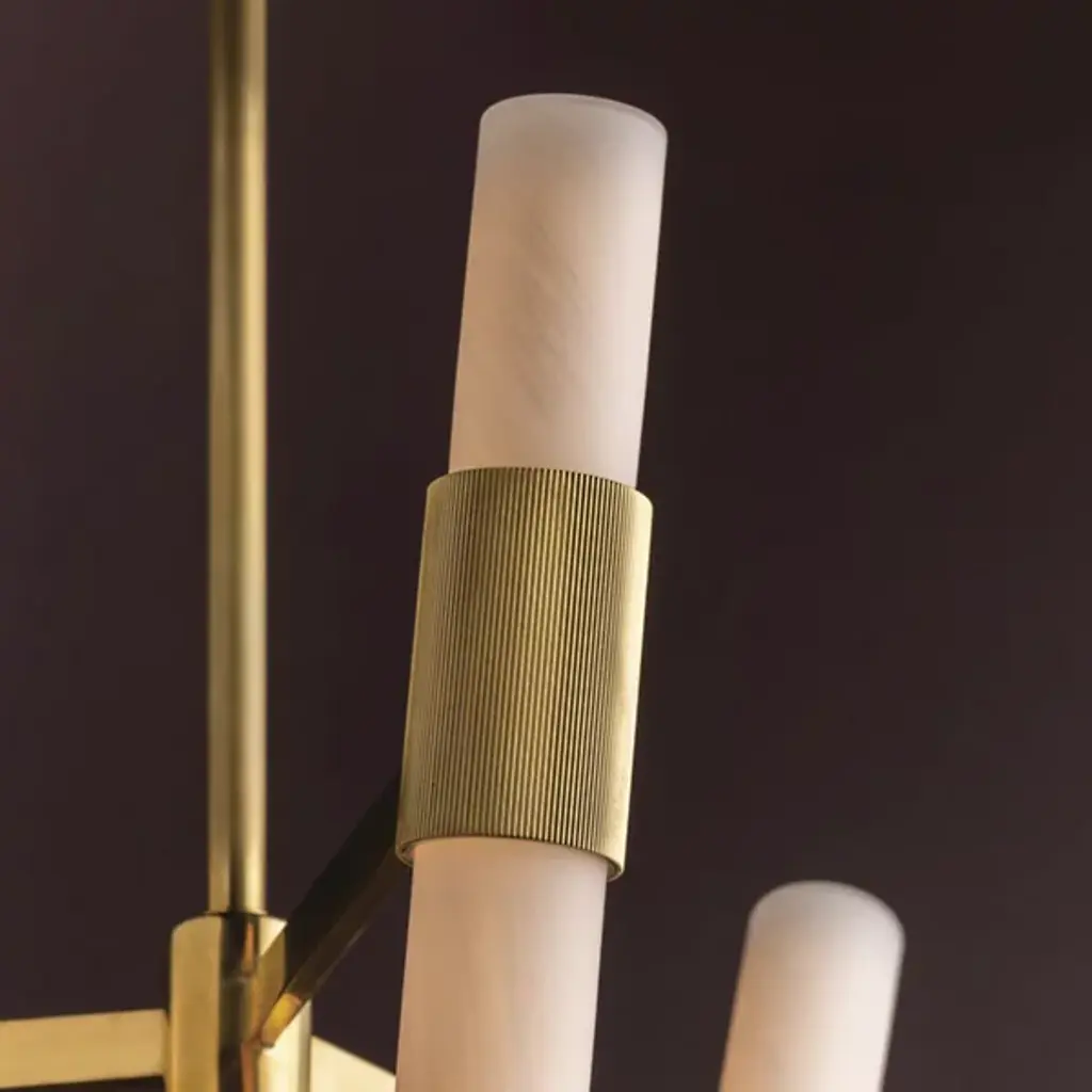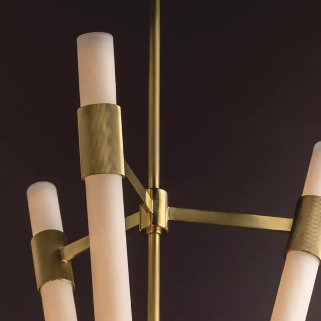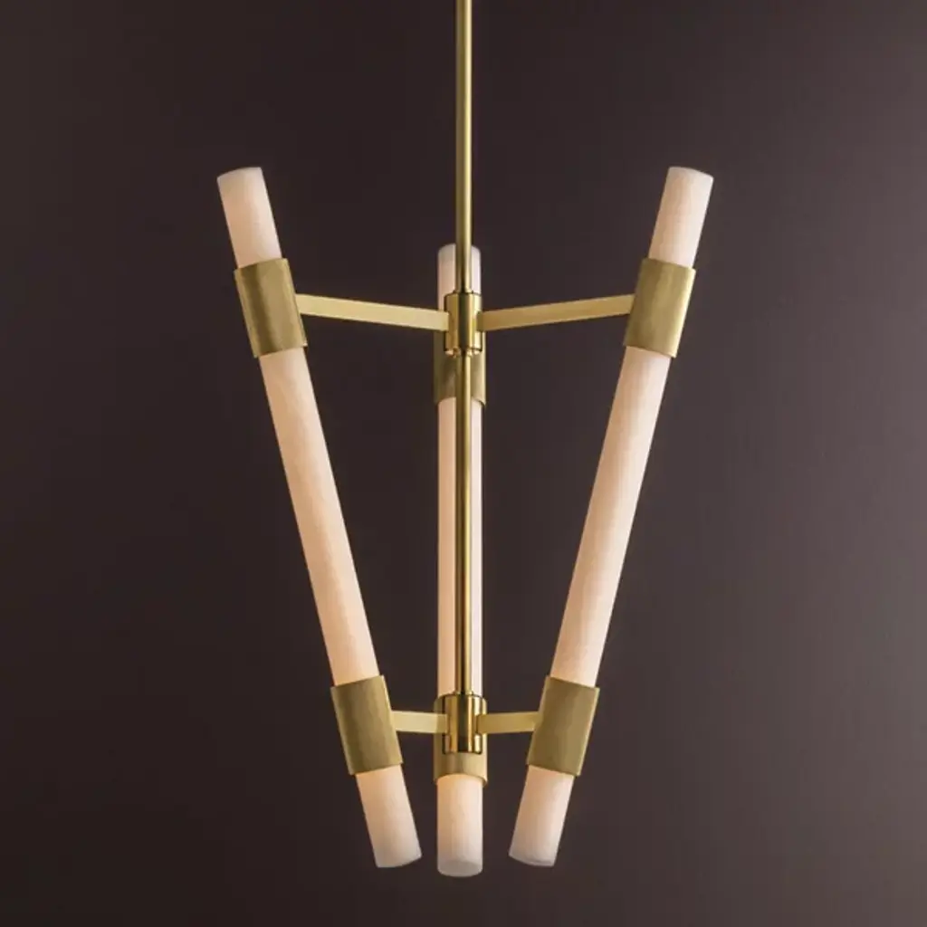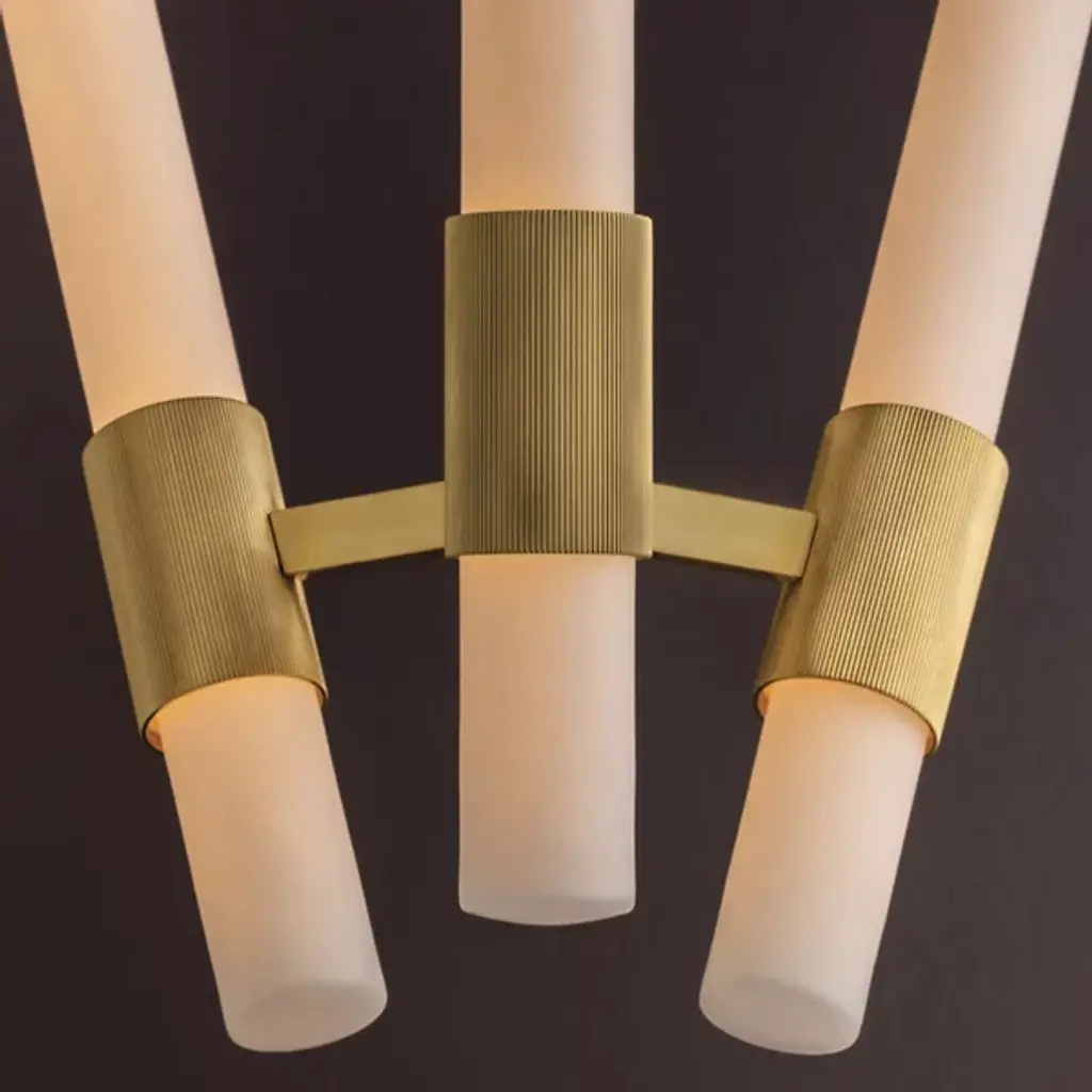 The Krakow LED Pendant from Corbett Lighting incorporates glass tubes that extend outward from the center at precise angles, creating an unexpected arrangement that plays with perception. Brass cuffs grip each tube firmly while adding textural interest through their ribbed detailing. Inside the suspension, LED technology provides ample illumination that travels through the glass tubes and into your space. As light radiates in multiple directions, rooms feel brighter without any harsh glare. This pendant works especially well in open areas where its unconventional form can be viewed and appreciated from different perspectives.