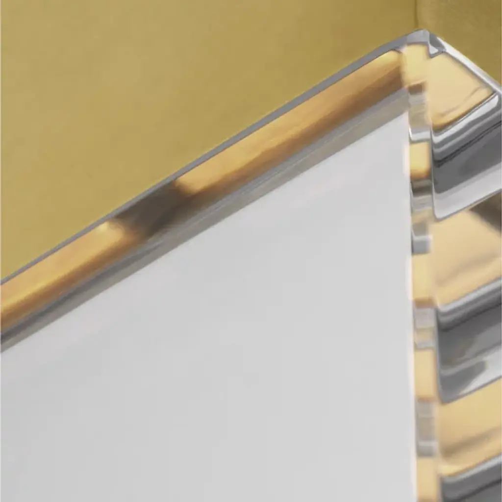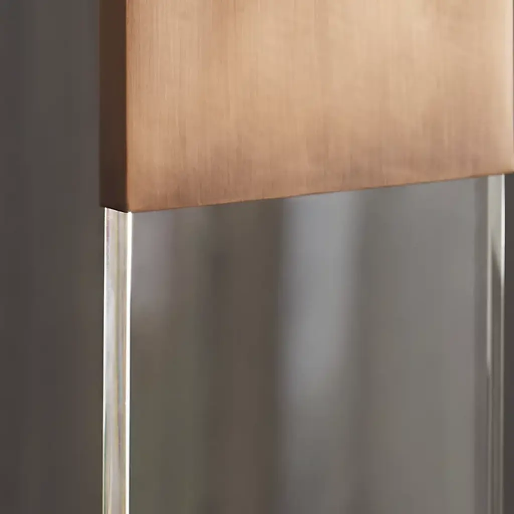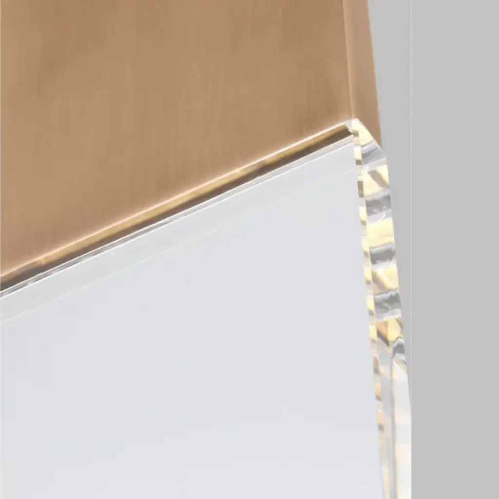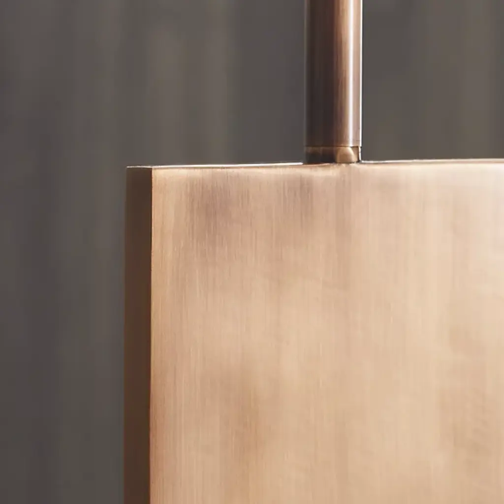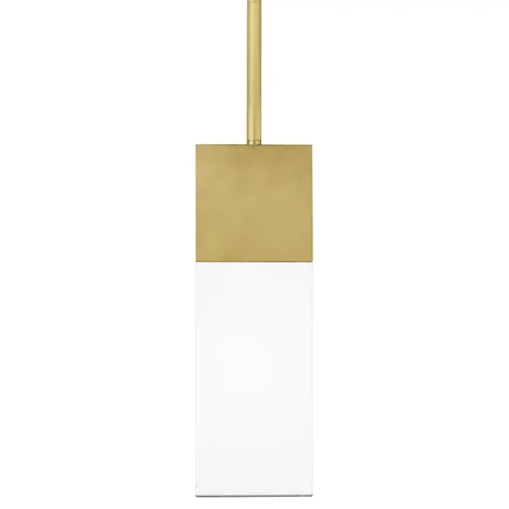 Add a graphic accent overhead with the ultra-refined shapes of the Kulma LED Pendant from Kelly Wearstler for Visual Comfort Modern, formerly known as Tech Lighting, It’s an arresting, abstract design, featuring a natural brass construction robust enough to serve indoors or outdoors. The piece starts with a sleek, square canopy that extends a slender downward to a sleek housing of the same punchy material. The rectilinear housing pleases in its architectural precision. A clear glass geometric diffuser descends from the housing with a beautiful reflective quality, transforming bright downlight into a wide-reaching warmth below.