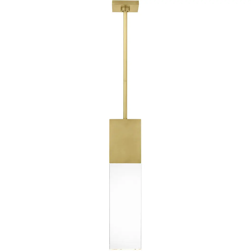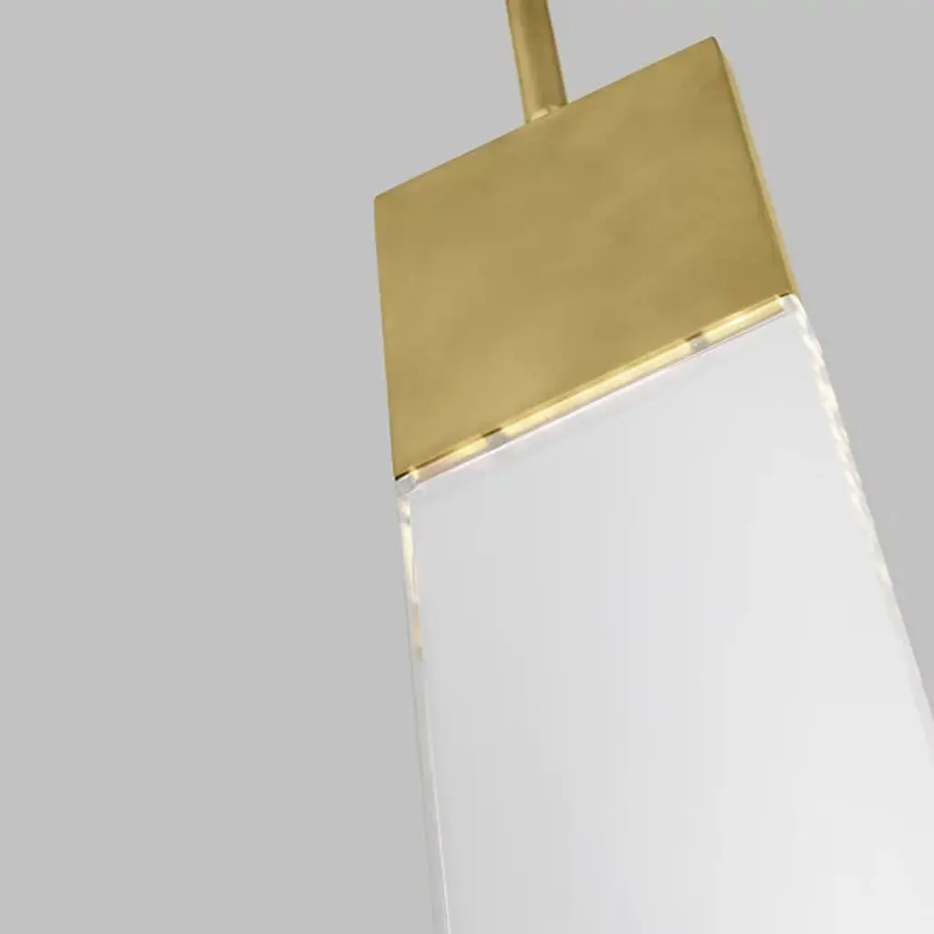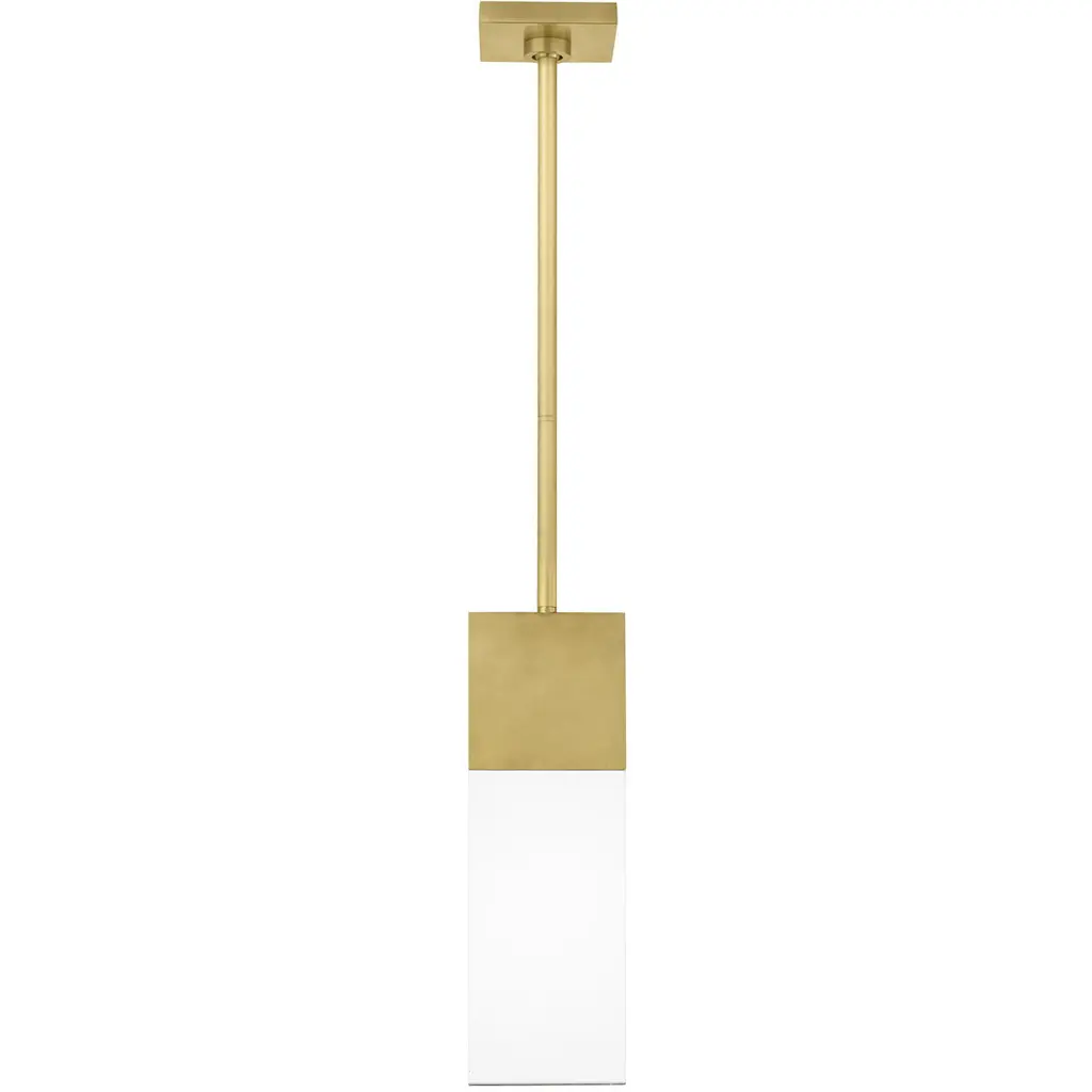 Add a graphic accent overhead with the ultra-refined shapes of the Kulma LED Pendant from Kelly Wearstler for Visual Comfort Modern, formerly known as Tech Lighting, It’s an arresting, abstract design, featuring a natural brass construction robust enough to serve indoors or outdoors. The piece starts with a sleek, square canopy that extends a slender downward to a sleek housing of the same punchy material. The rectilinear housing pleases in its architectural precision. A clear glass geometric diffuser descends from the housing with a beautiful reflective quality, transforming bright downlight into a wide-reaching warmth below.