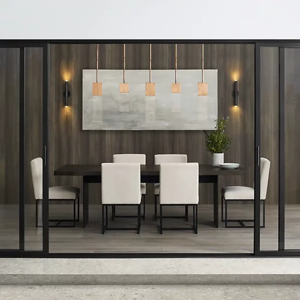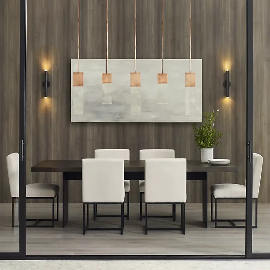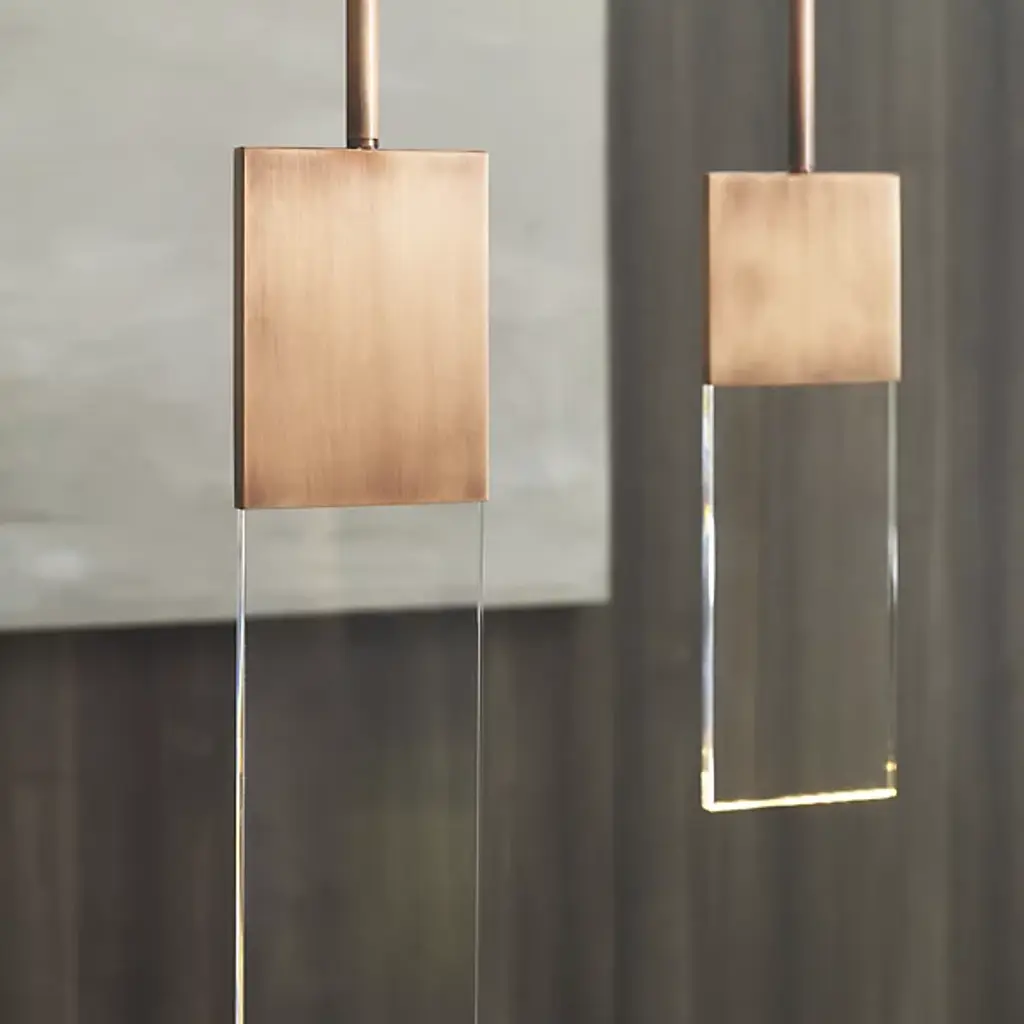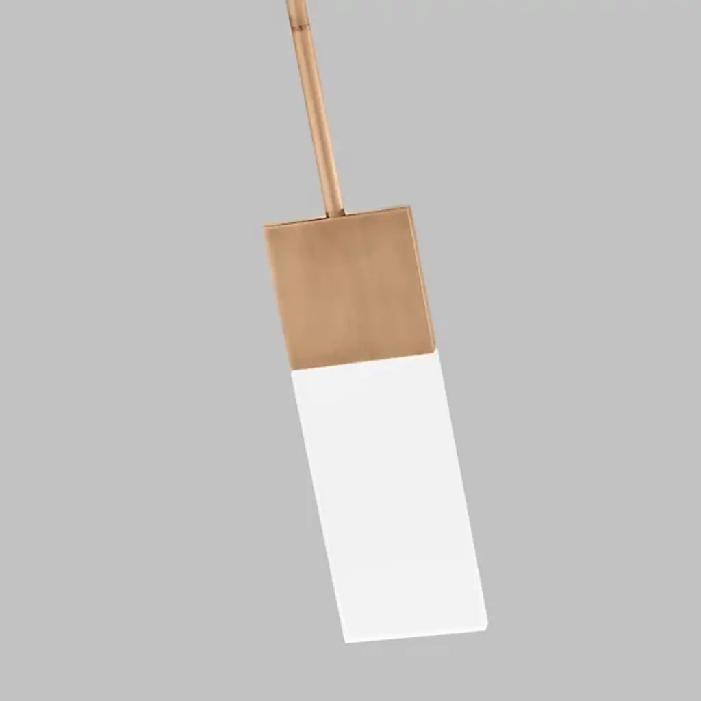 Add a graphic accent overhead with the ultra-refined shapes of the Kulma LED Pendant from Kelly Wearstler for Visual Comfort Modern, formerly known as Tech Lighting, It’s an arresting, abstract design, featuring a natural brass construction robust enough to serve indoors or outdoors. The piece starts with a sleek, square canopy that extends a slender downward to a sleek housing of the same punchy material. The rectilinear housing pleases in its architectural precision. A clear glass geometric diffuser descends from the housing with a beautiful reflective quality, transforming bright downlight into a wide-reaching warmth below.