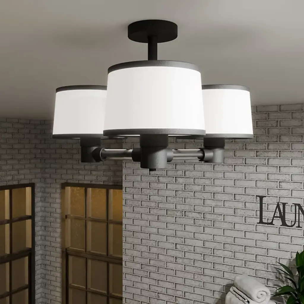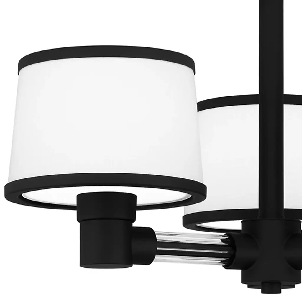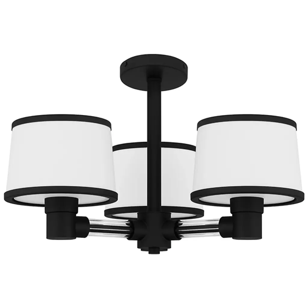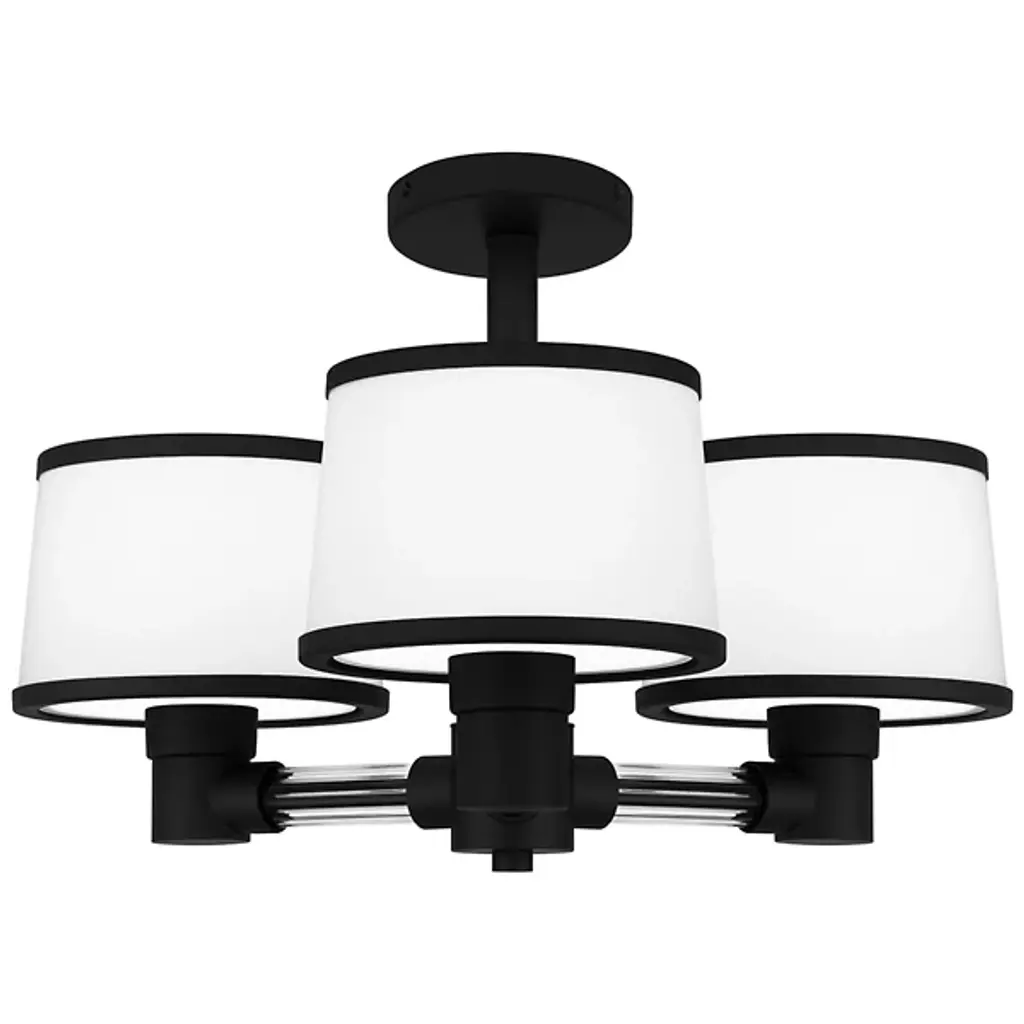 The Kylen Semi-Flush Mount from Quoizel redefines classic lighting with a contemporary twist. Each piece boasts a drum shade crafted from egg-shell fabric, accented with bold black trim for a striking contrast. Complemented by a matte black finish, the overall design exudes sophistication. Kylen's versatile styling seamlessly integrates into any space, making it an ideal choice for those looking to enhance their interior with a touch of modern elegance combined with traditional charm.