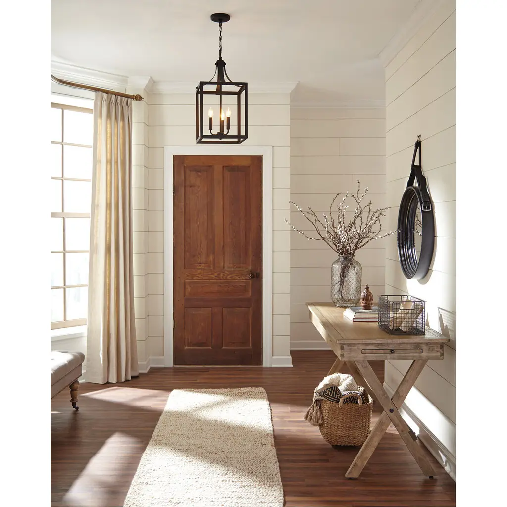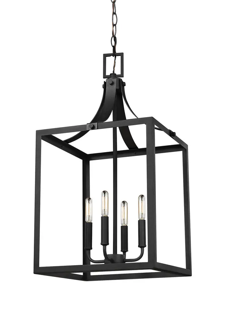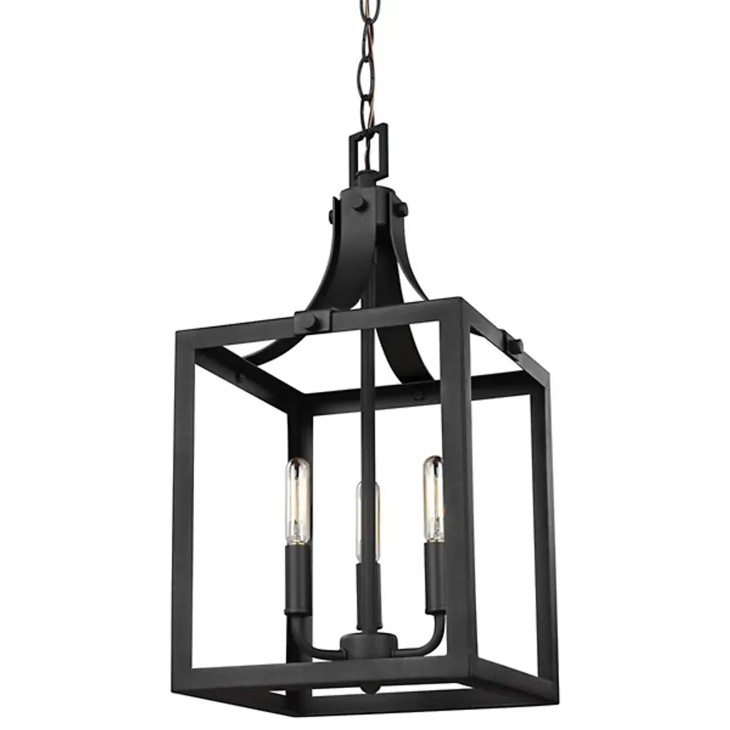 The Labette three light indoor pendant in black is the perfect way to achieve your desired fashion or functional needs in your home. Labette features a beautiful four-sided, lantern silhouette which is accented with rivet details and an updated square link at the crown