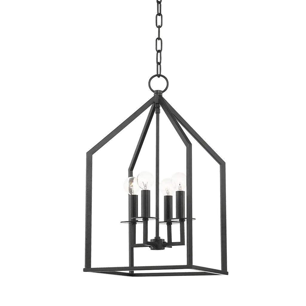 The Labette four light indoor pendant in black supplies ample lighting for your daily needs, while adding a layer of today's style to your home's d?cor. Labette features a beautiful four-sided, lantern silhouette which is accented with rivet details and an updated square link at the crown