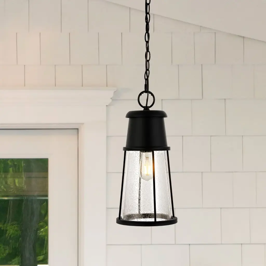 Brighten your outdoor space with the LAELA outdoor pendant. This 8.4 inch lamp in sleek black seamlessly blends form and function. Crafted with durable metal and glass, its extendable design offers flexible hanging options to suit your unique style. With its modern appeal, this pendant effortlessly enhances patios, gardens, or entryways. The black finish adds a touch of sophistication, making it perfect for any decor. Versatile and stylish, the LAELA pendant is a brilliant addition to illuminate and elevate your outdoor ambiance. Transform your space with this elegant lighting solution.