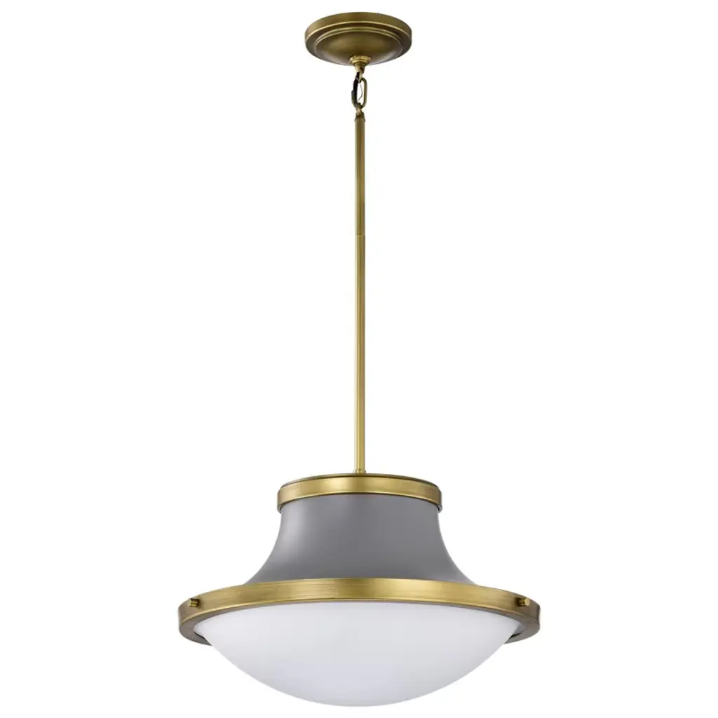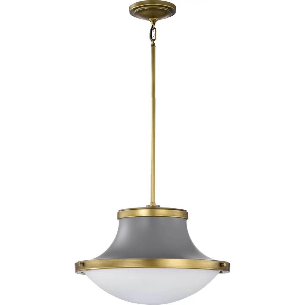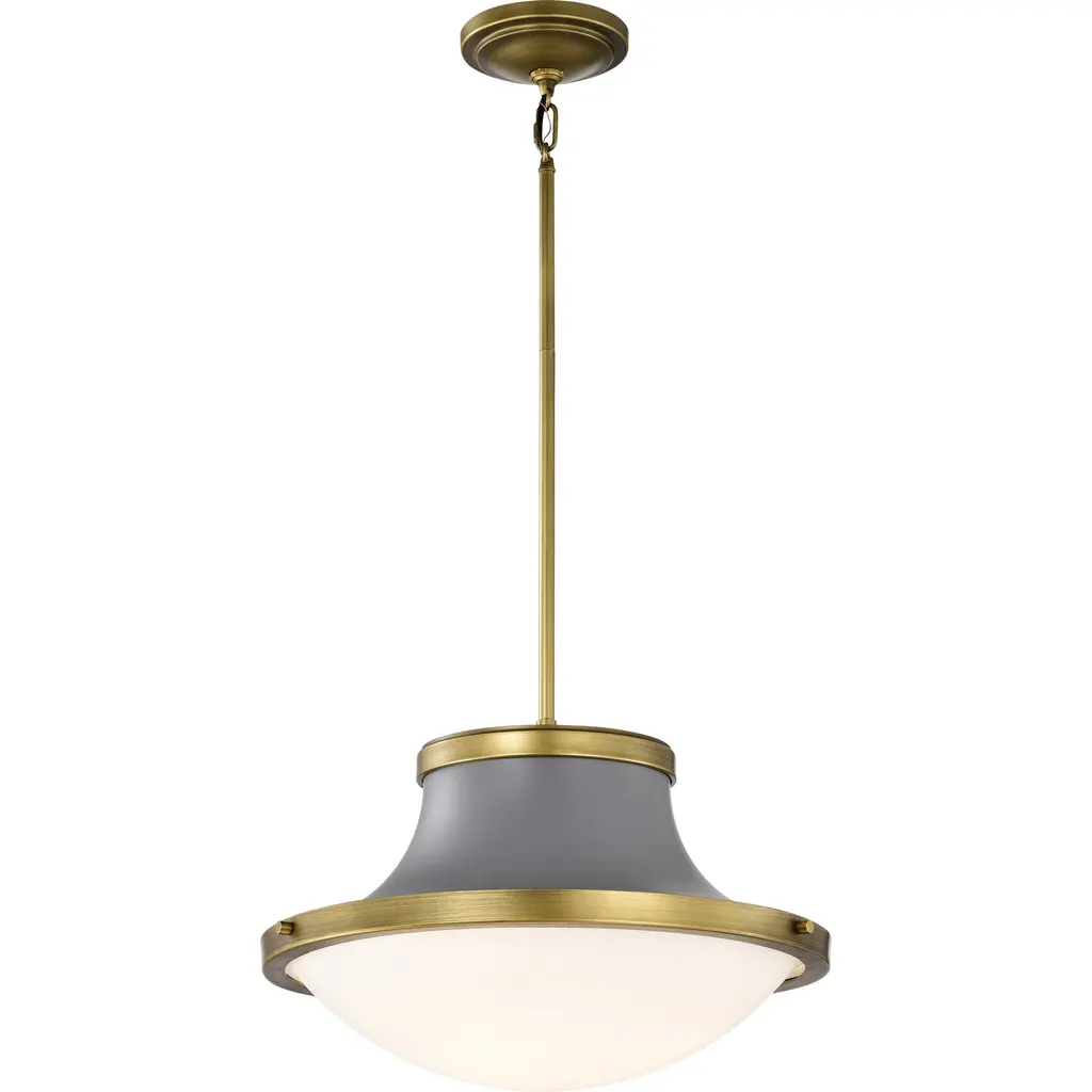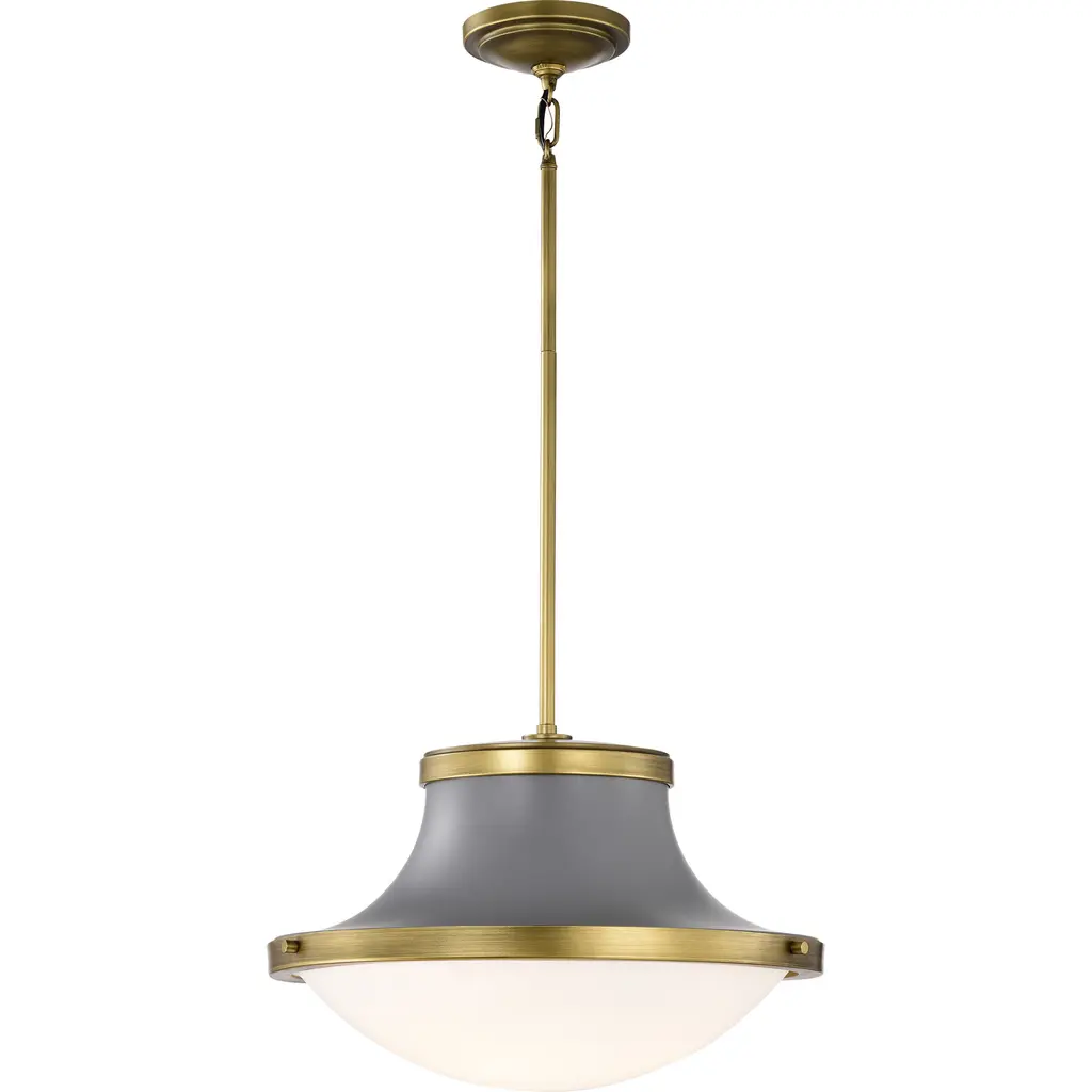 Lafayette 1 Light Pendant; 18 Inches; Gray Finish with Natural Brass Accents and White Opal Glass