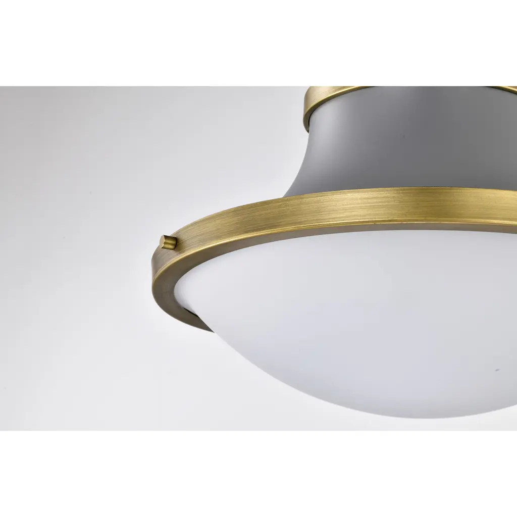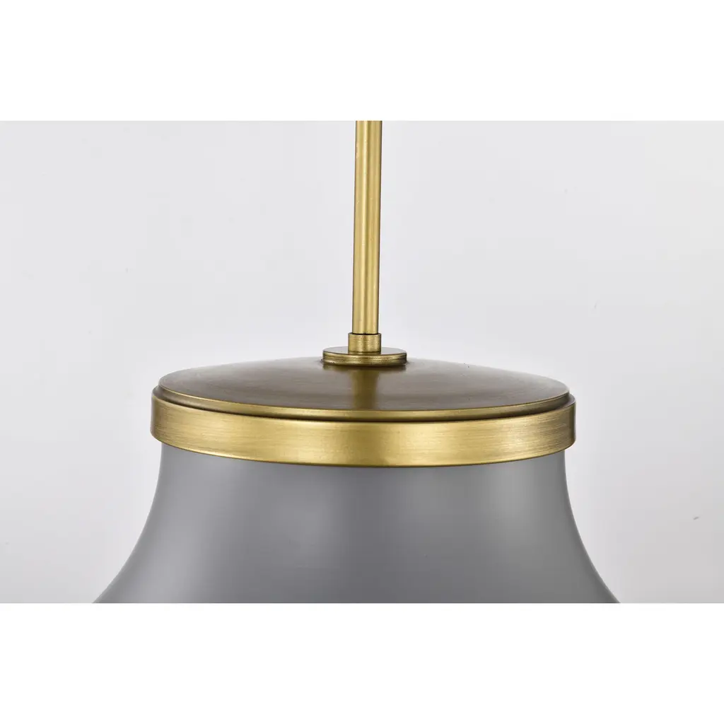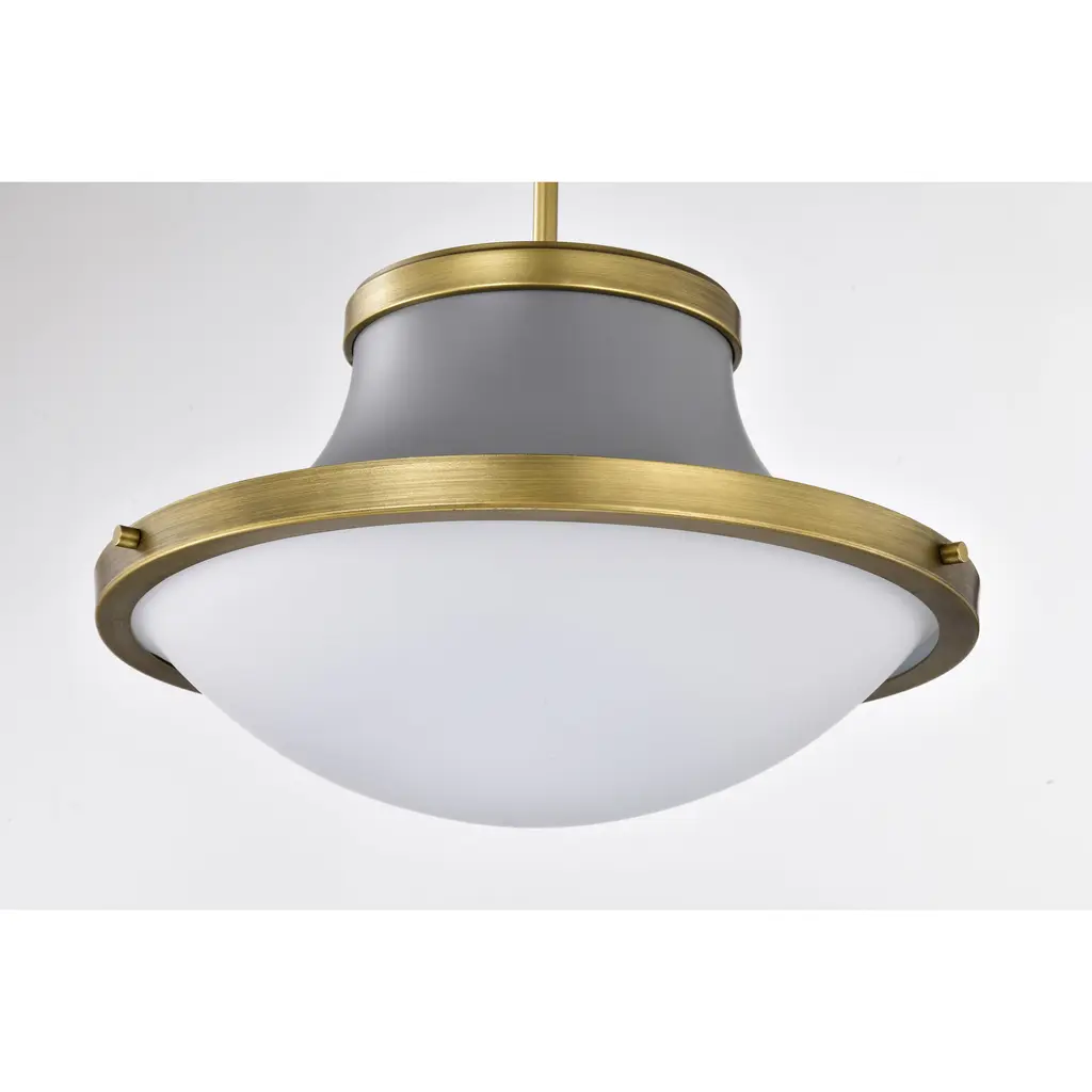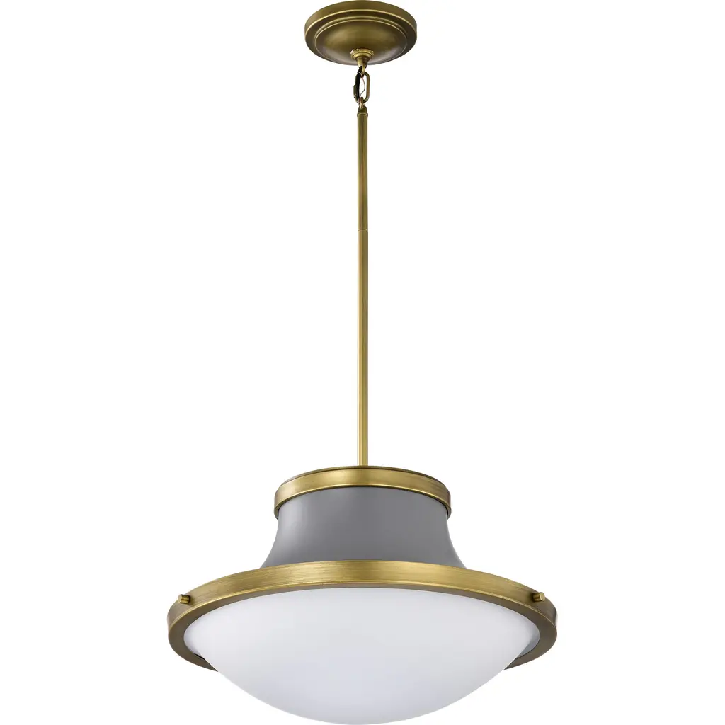 Lafayette 1 Light Pendant; 18 Inches; Gray Finish with Natural Brass Accents and White Opal Glass