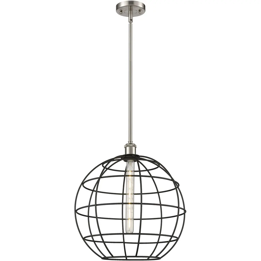 Ballston Lake Placid - 1 Light 16" Stem Hung Pendant - Polished Chrome Finish - Matte Black Shade