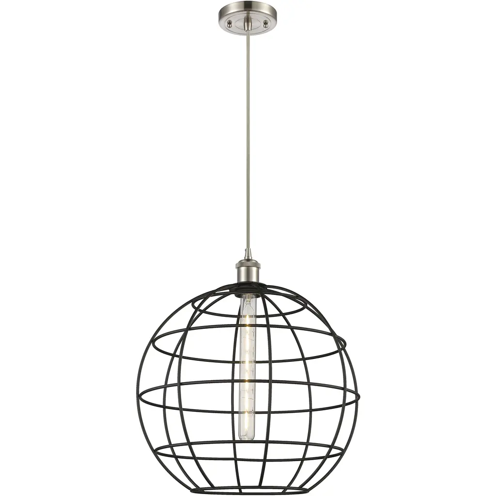 Ballston Lake Placid - 1 Light 16" Cord Hung Pendant - Polished Chrome Finish - Matte Black Shade