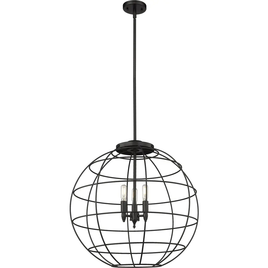 Lake Placid - 3 Light 16" Stem Hung Pendant - Polished Chrome Finish - Matte Black Shade