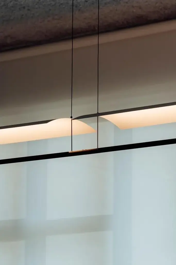 Lámina 85 pendant lamp by antoni arola dimensions: d 98.7 x w 30 x h 12.6 cm materials: metal, plastic. Available in other sizes. A line of light and a thin metal sheet create a soft but effective levity. A marriage of the poetic and the practical, lámina is a system that upholds the benefits of reflected light by using obvious shapes in different formats and with different shades that conceal nothing and show everything. This piece is attributed to the mentioned designer/maker. It has no attribution mark and no official proof of authenticity, however it is well documented in design history. I take full responsibility for any authenticity issues arising from misattribution, up to 250v (europe/uk standard).