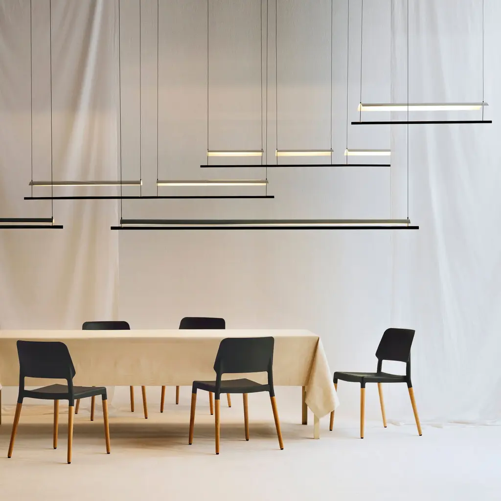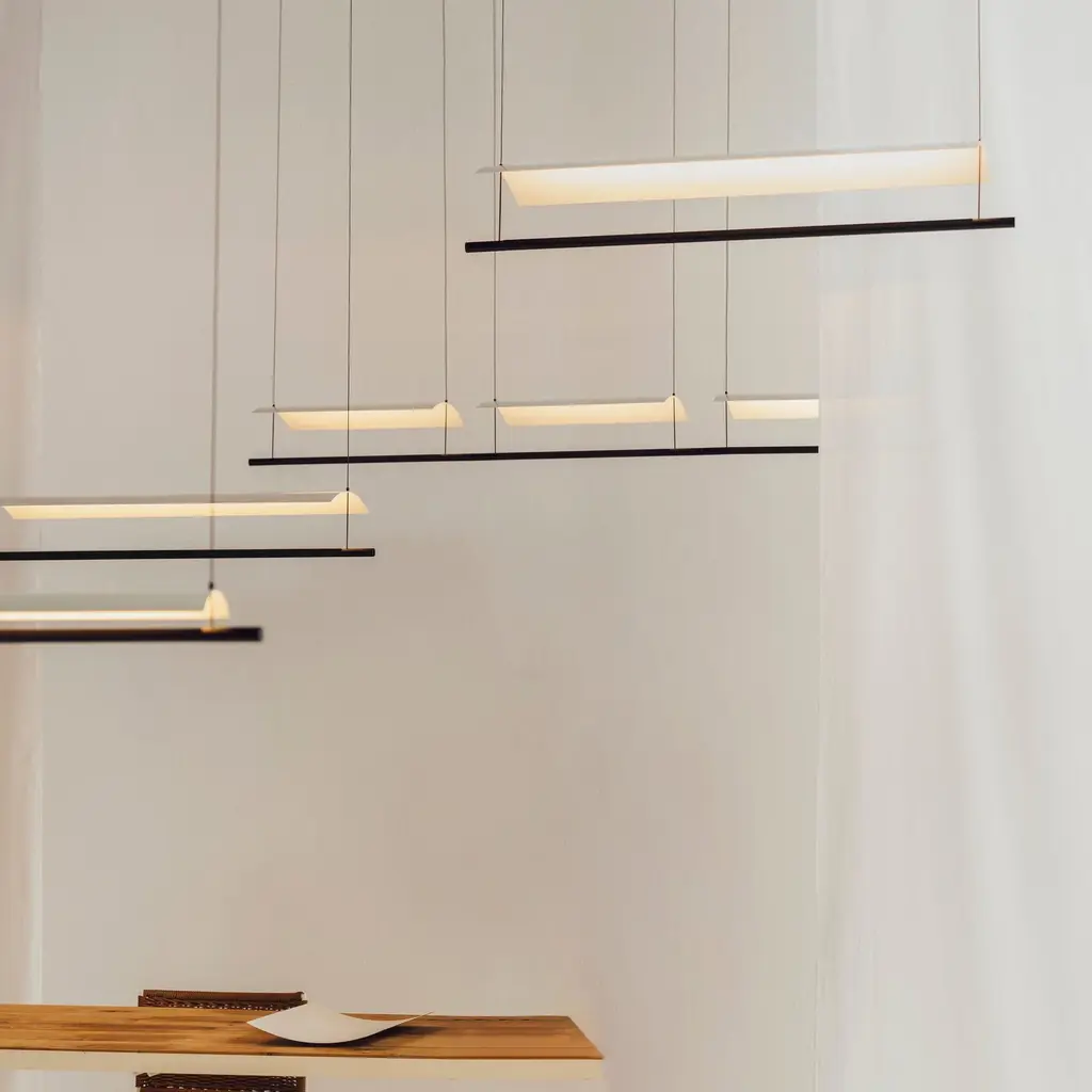 Lámina extolls the subtle nature of reflected ambiance in a suspended bar of light topped by a rounded white shade. Barcelona's Antoni Arola fashions the linear pendant with a built-in dimmable LED that bounces illumination off the thin metal curve in a synthesis of form and function. With a choice of 3 standard lengths or the impressively larger Mayor model to suit varied environs and lighting needs, the matte-black fixture with a glossy white topper also makes a striking statement piece.
