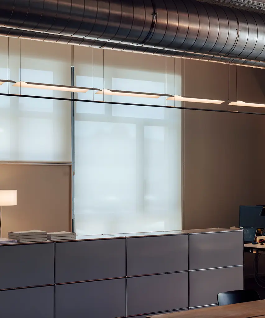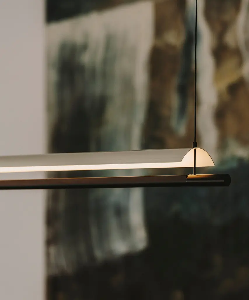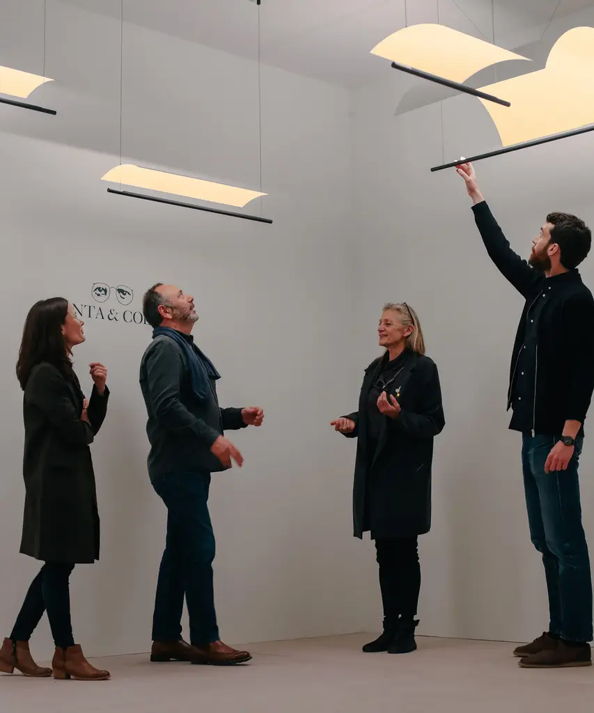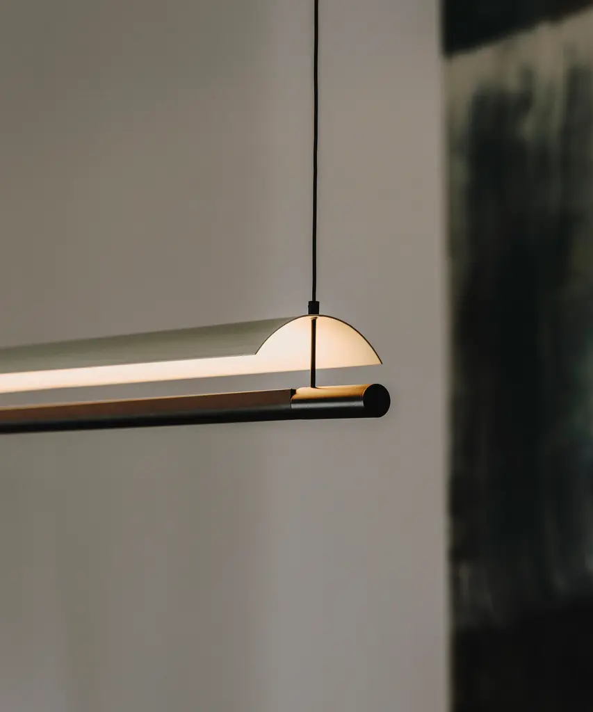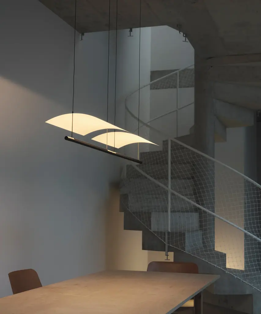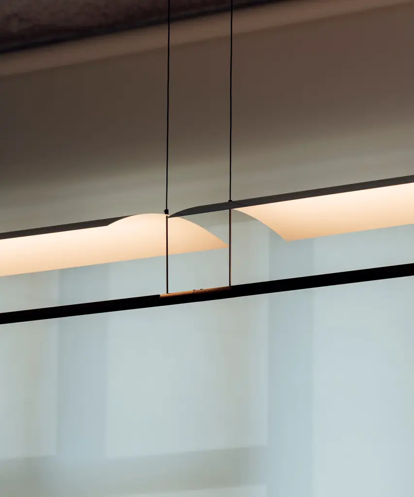 An underline of light under a thin white sheet, in a tenuous but effective lightness. The balance between poetry and reason, Lamina is a system that defends the benefits of reflected light through the use of obvious forms, in different formats and with different screens that hide nothing and show everything. Produced by the Barcelona-based lighting purveyor, Santa & Cole.
