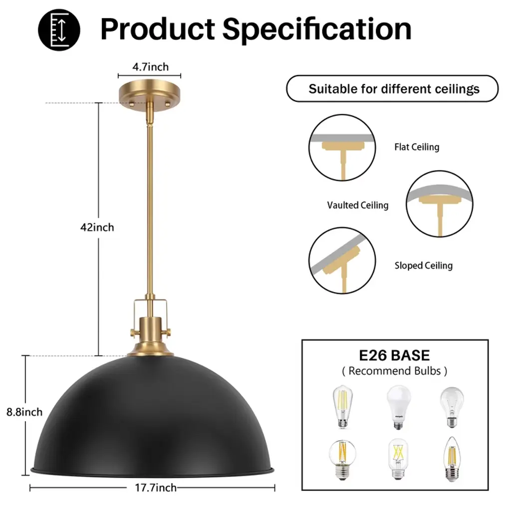This metal pendant light stands out with its classic dome shape, combined with fine textured gold metal, embodying both simplicity and luxury; its streamlined curved design is clean and elegant, making it suitable for a variety of home styles, including vintage, industrial, modern, luxurious, rustic, and farmhouse, all of which can be perfectly integrated, adding a unique charm to your home environment