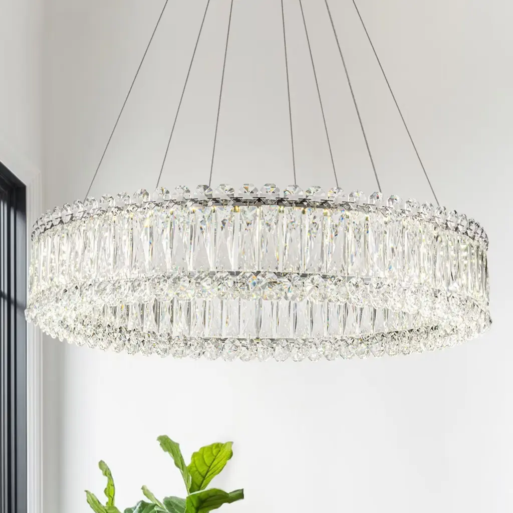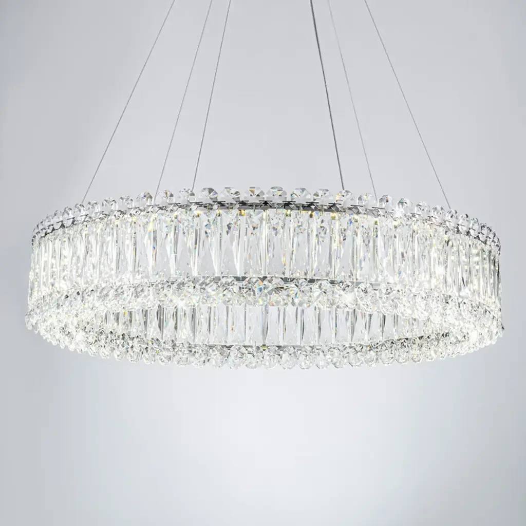 This crystal modern chandelier blends exquisite craftsmanship with elegant design, using excellent crystal materials that have been meticulously cut to showcase a attractive shine and dazzling refraction effects; its ring shape, whether in a traditional gorgeous style or a modern minimalist design, seamlessly integrates into various decorative environments, making it a striking visual focal point