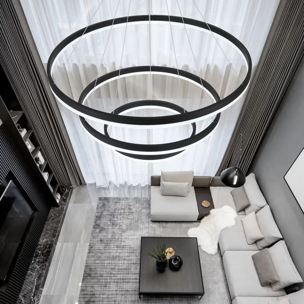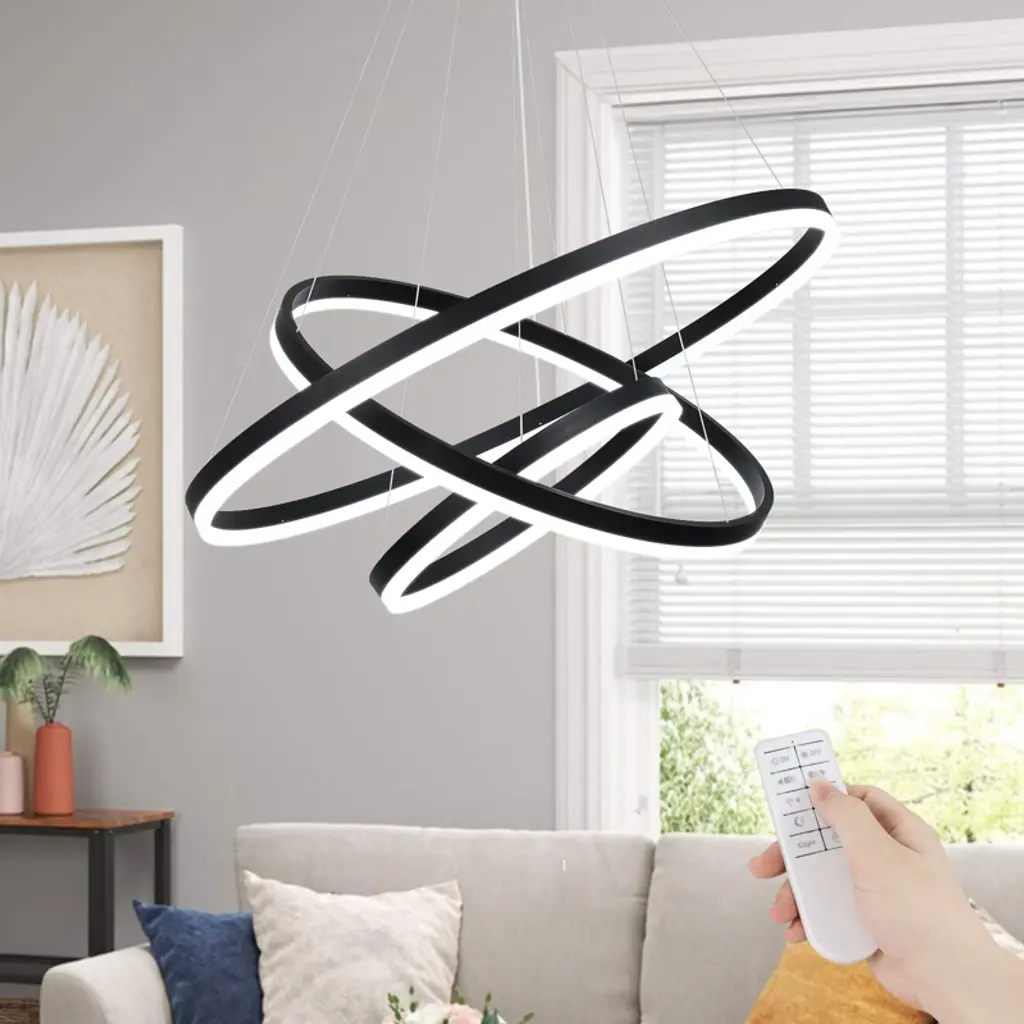 Light up your home with the modern LED tiered chandelier. Made of high-quality acrylic and durable aluminum alloy. The high-transparent LED strip provides uniform lighting, while the remote control allows you to adjust the brightness and temperature. Adjustable wire allow you to customize the height to fit any room. With its sleek and minimalistic design will complement any decor style,perfect for your living room, dining room, bedroom, study room, foyer. Upgrade your home decor with the stylish and versatile LED chandelier today