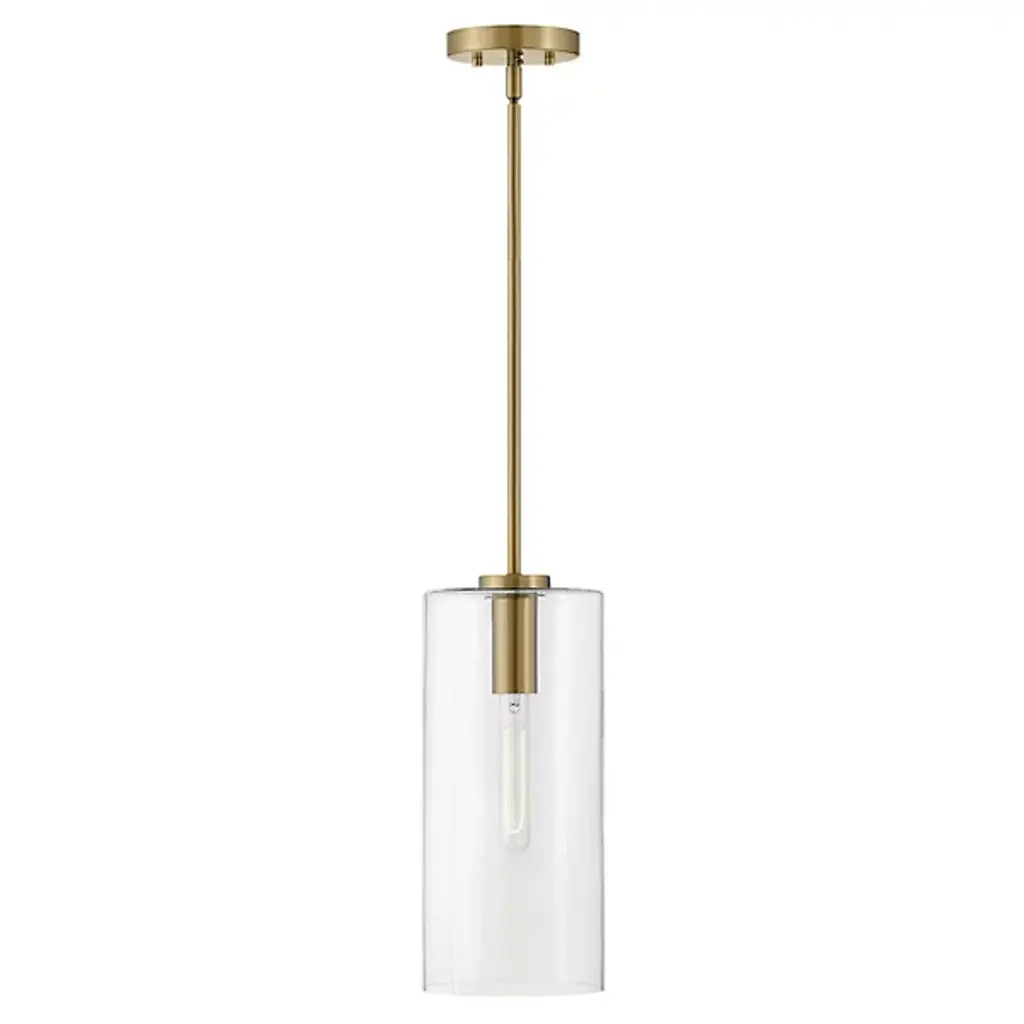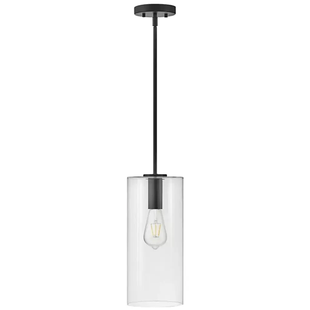 The Lane Pendant from Lark says sophistication quietly with a collection of trim shapes and a clean, directed light. This pendant meshes with a range of modern and contemporary home styles by doing away with superfluous details. Its design is to the point, mounting with a compact canopy and suspending with a slender down rod. This trim suspension fairs perfectly as a part of a series or slotted in a tight space. Held via a sleek lamp holder, a clear glass shade frames the bright bulb inside with a seductive cylindrical silhouette. The bulb’s light escapes outwards for ambiance and funnels down to glaze surfaces below.