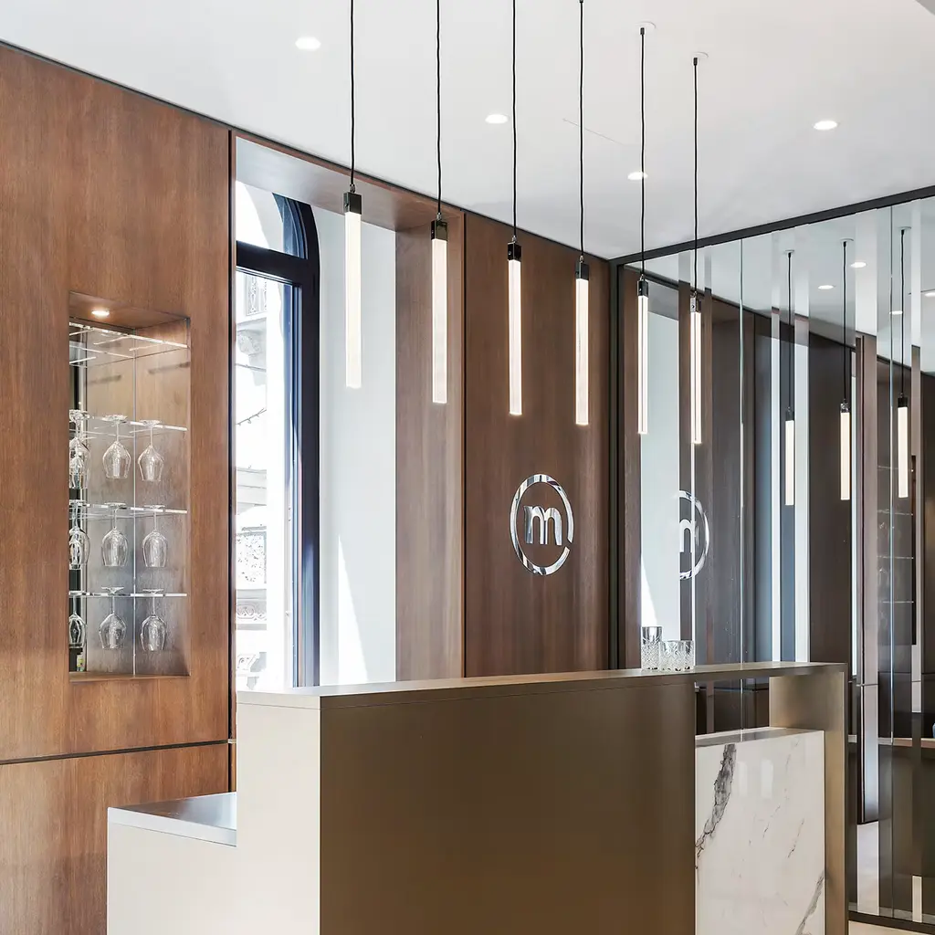 The name of this superb pendant lamp by Isacco Brioschi comes from the Milanese for pencil and ruler, hinting at the geometric silhouette of its shade, a pure jewel of light. Made of galvanized brass with a gunmetal gray finish, this lamp is powered by 230V 50Hz supply with 350 m/A included. The insulation class is CLI, with protection class IP40, glow wire 650°m and color temperature 3000k. The bulb is W 5 LED with 480 lm flow and 1B chromatic performance. Please ask Concierge for other available finishes.
