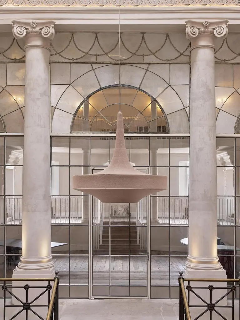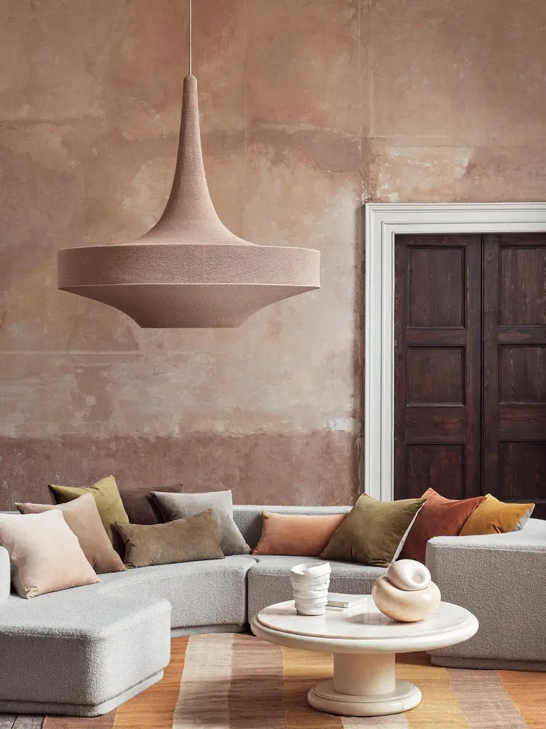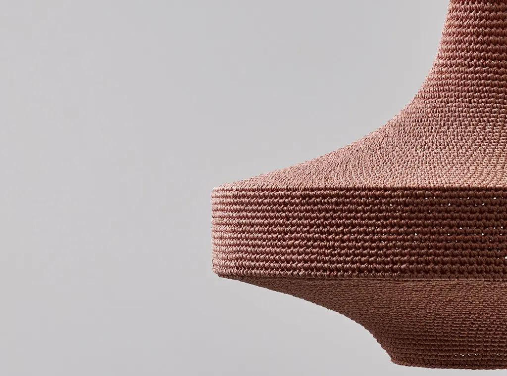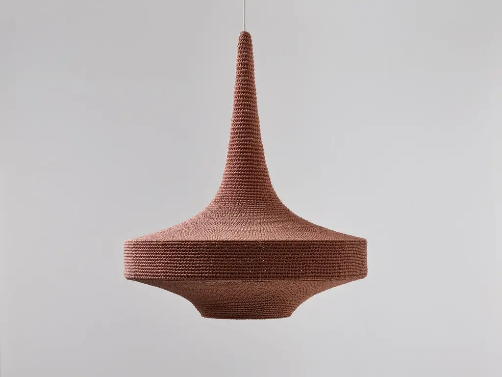 Large Glück pendant lamp by Naomi PaulDimensions: D 80 x H 90 cmMaterials: Metal frame, Egyptian cotton cord.Color: Dusky Pink.Available in other colors and in 4 sizes: D 50, D 60, D 80, D 100 cm.Available in plain or two tone color finish.OMI collection are statement pendants, GLÜCK, SONNE and MONIKA.This is the original Naomi Paul lighting collection, launched in 2011.Designed to elevate the technique of precision hand work, and transform crochet to art. Elegant silhouettes give our signature collection a timeless presence in any space.A versatile diffused atmospheric light. In its smallest size, GLÜCK is a pendant perfect for intimate environments. In its largest size GLÜCK is a statement pendant. Single or clustered, GLÜCK is equally at home in a kitchen or cascading down a stairwell.Naomi Paul is a London design studio where hand crochet is elevated from craft to art.Naomi Paul’s lighting designs are unique. Iconic silhouettes combine with functional integrity. Together with her highly skilled team, the studio is dedicated to perfection.The crocheted lighting collections include simple and statement pendants. Luminescence and acoustics are enhanced by uniform stitching and quality of the fabric. Each piece glows with a warm ambience, a result of the time, care and attention to detail invested by hand-making.Collaborating with internationally renowned architects and interior designers, Naomi Paul’s designs transform spaces into exceptional places.All our lamps can be wired according to each country. If sold to the USA it will be wired for the USA for instance.