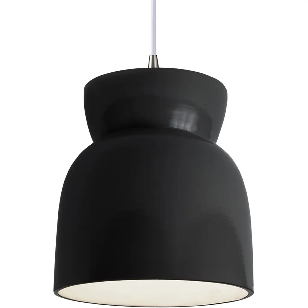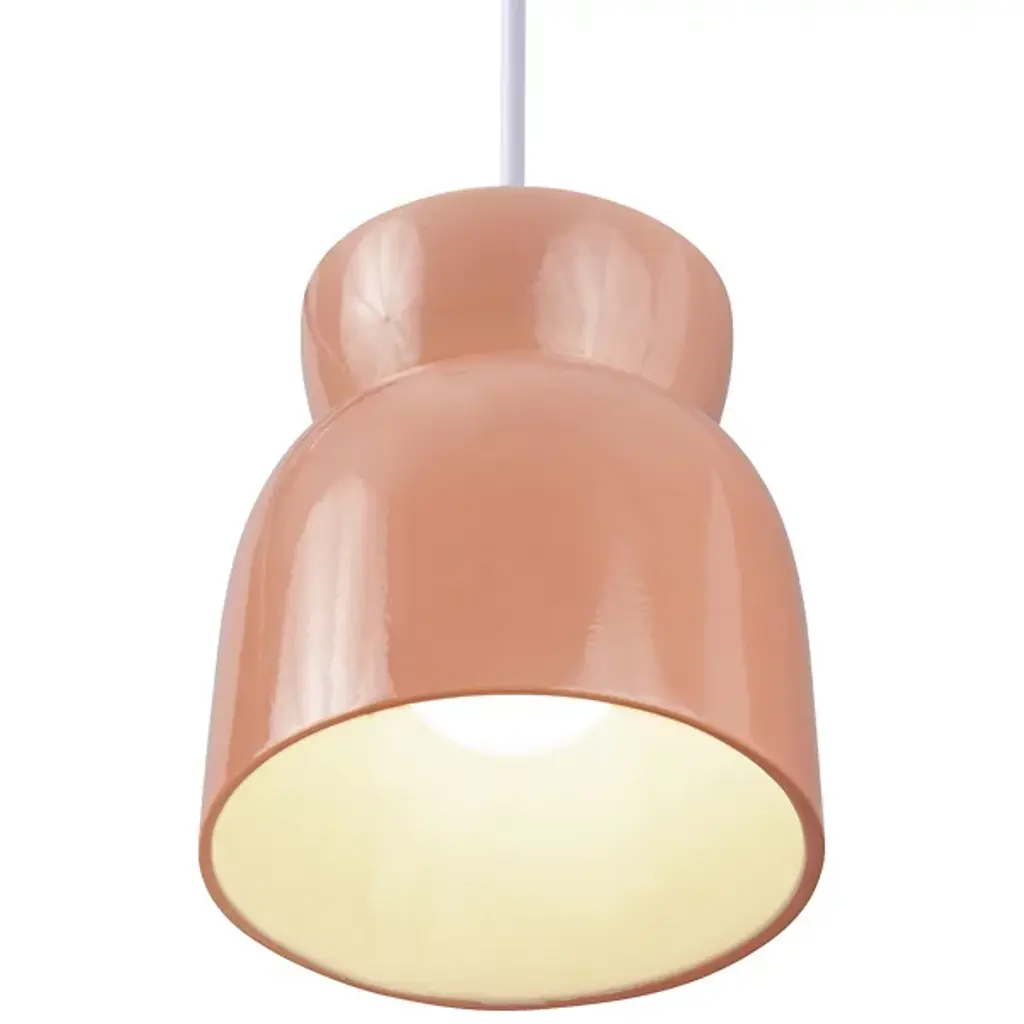 Perfect proportions for stylish settings. The Large Hourglass Mini Pendant by Justice Design Group has a clean yet curvy profile, handcrafted out of 100% Ceramic. The wide bottom opening of this modern pendant light enables a broad wash of downlight on the surface below. That makes this pendant both an uber-functional and uber-decorative addition over a kitchen island or dining table, or on either side of a bed for reading and general ambience.