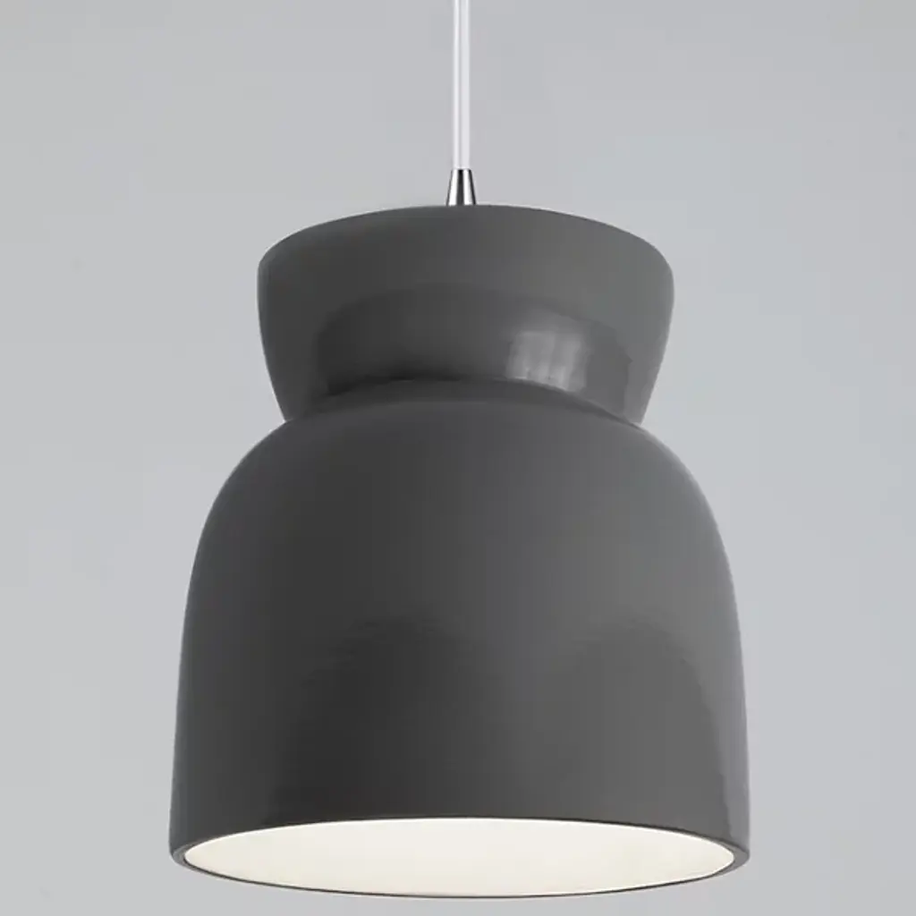 Perfect proportions for stylish settings. The Large Hourglass Mini Pendant by Justice Design Group has a clean yet curvy profile, handcrafted out of 100% Ceramic. The wide bottom opening of this modern pendant light enables a broad wash of downlight on the surface below. That makes this pendant both an uber-functional and uber-decorative addition over a kitchen island or dining table, or on either side of a bed for reading and general ambience.
