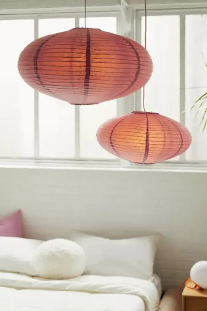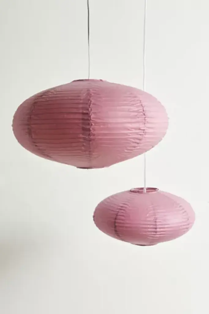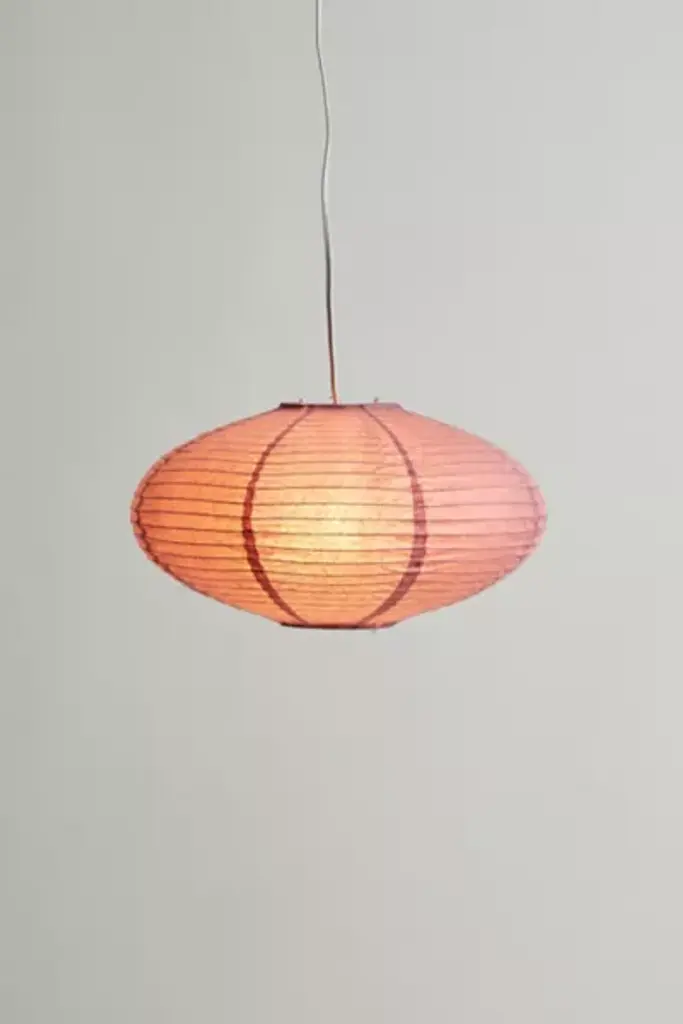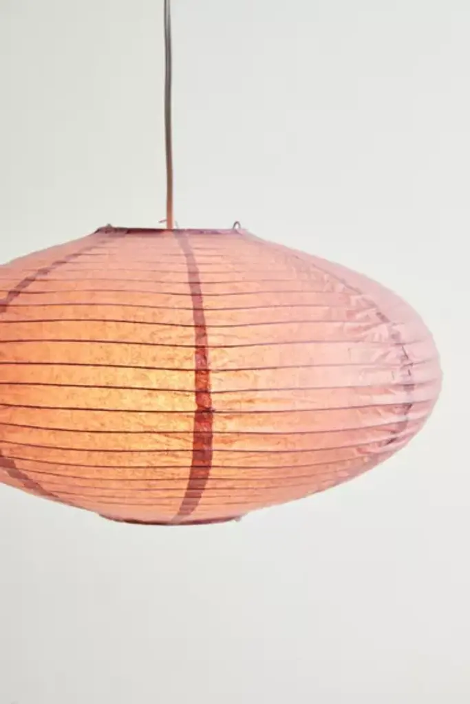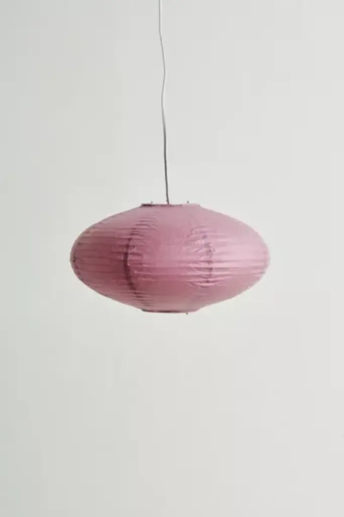 Paper lantern pendant light that casts a luminous glow all through your space. Saucer design features a caged metal structure wrapped in paper that gently diffuses light. Plugs in to power on. Available exclusively at Urban Outfitters. **Features** \- Paper lantern pendant light \- Saucer silhouette with metal framing \- Requires one E26 bulb - not included \- UO exclusive **Content + Care** \- Cord kit included \- Paper, metal \- Wipe clean \- Imported \- Made in compliance with US electrical standards. To use this item outside of the US, pair with an outlet adapter and voltage converter made specifically for use in your location. **Size** \- Wattage/Voltage: LED 9W/120V \- Overall dimensions: 24"dia x 13.3"h \- Cord length: 122.8", switch is 24" from base \- Weight: 0.8 lbs \- Shipping package dimensions: 23.6"l x 2.4"w x 23.6"h \- Shipping package weight: 2.9 lbs