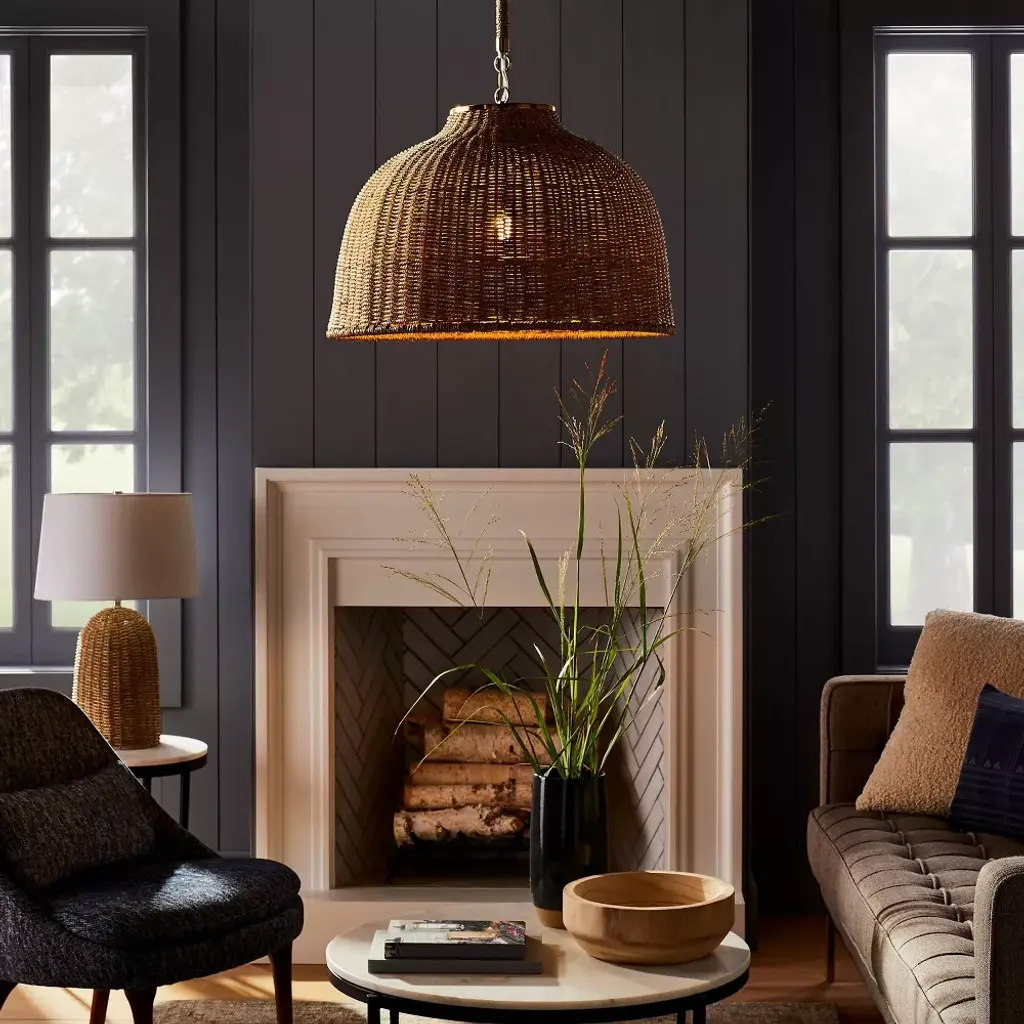 Bring some coastal-inspired flair to your space when you light up the room with the Large Seagrass Pendant Ceiling Lamp from Threshold™ designed with Studio McGee. This domed ceiling light is made from natural-hued woven seagrass for an earthy and airy piece you'll love. The dome style of the lighting fixture directs light in one direction for a more focused glow, but the width of the light — over two feet — ensures light hits plenty of the room. The dome ceiling light hangs from a gold-tone chain for a touch of shine to balance out the natural feel of the fixture. Meet Shea McGee, the designer and stylist behind the brand Studio McGee. Founded alongside her husband, Syd, the studio is known for Shea’s design of beautifully elevated spaces that encourage clients to surround themselves with the things and people they love. Now she’s partnering with Threshold to offer Studio McGee’s classic design in a new collection for inspired homes, everywhere.Mount plate diameter: 6 inchesMount plate height: 1.25 inchesChain Length: 57.0 inchesChain to Shade connector neck Height: 13.25 inchesChain to shade Connector Neck diameter: 0.875 inchesLamp Shade Height: 17.5 inchesLamp Shade Diameter: 27.0 inches
