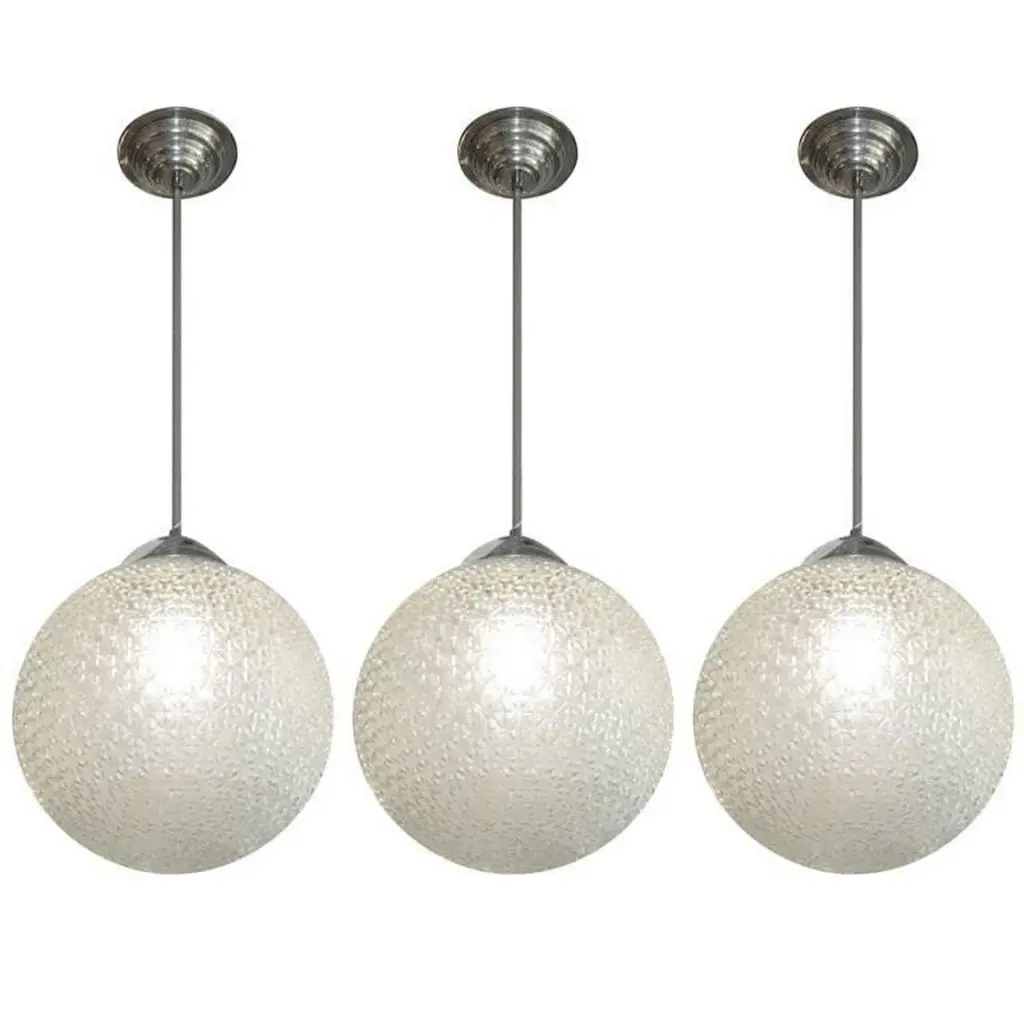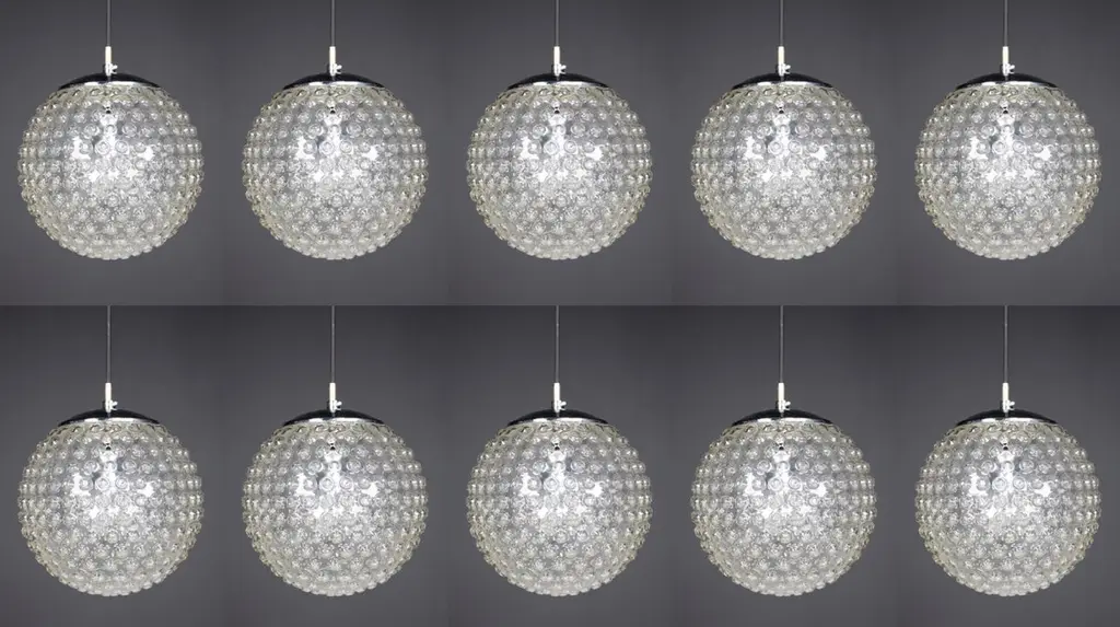 Large Set Rolf Krüger Chrome And Bubble Glass Pendant For Staff, Germany 1970s